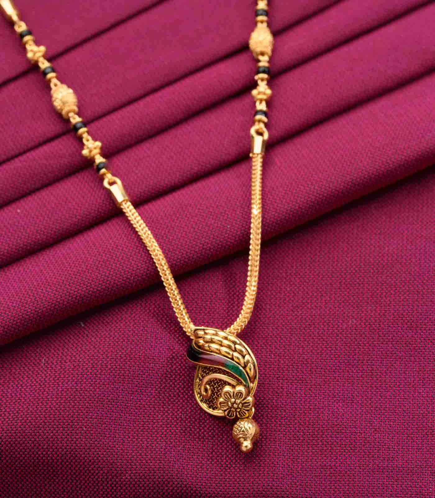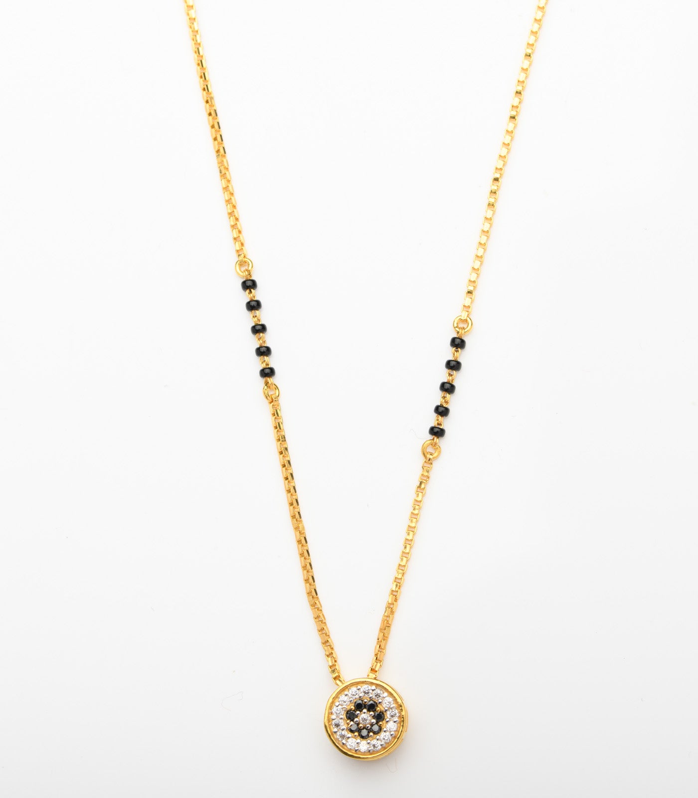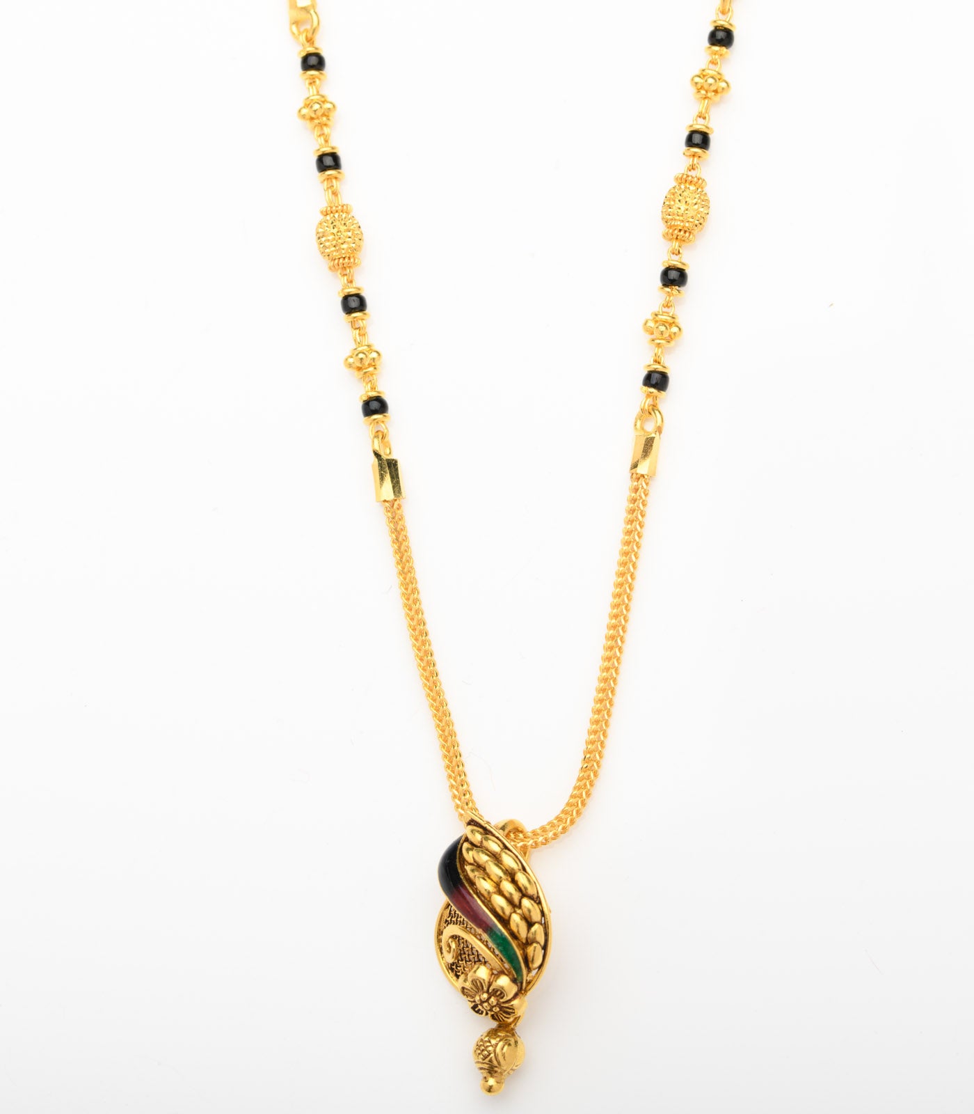 - Chain: Traditional mangalsutra black-bead chain with golden links