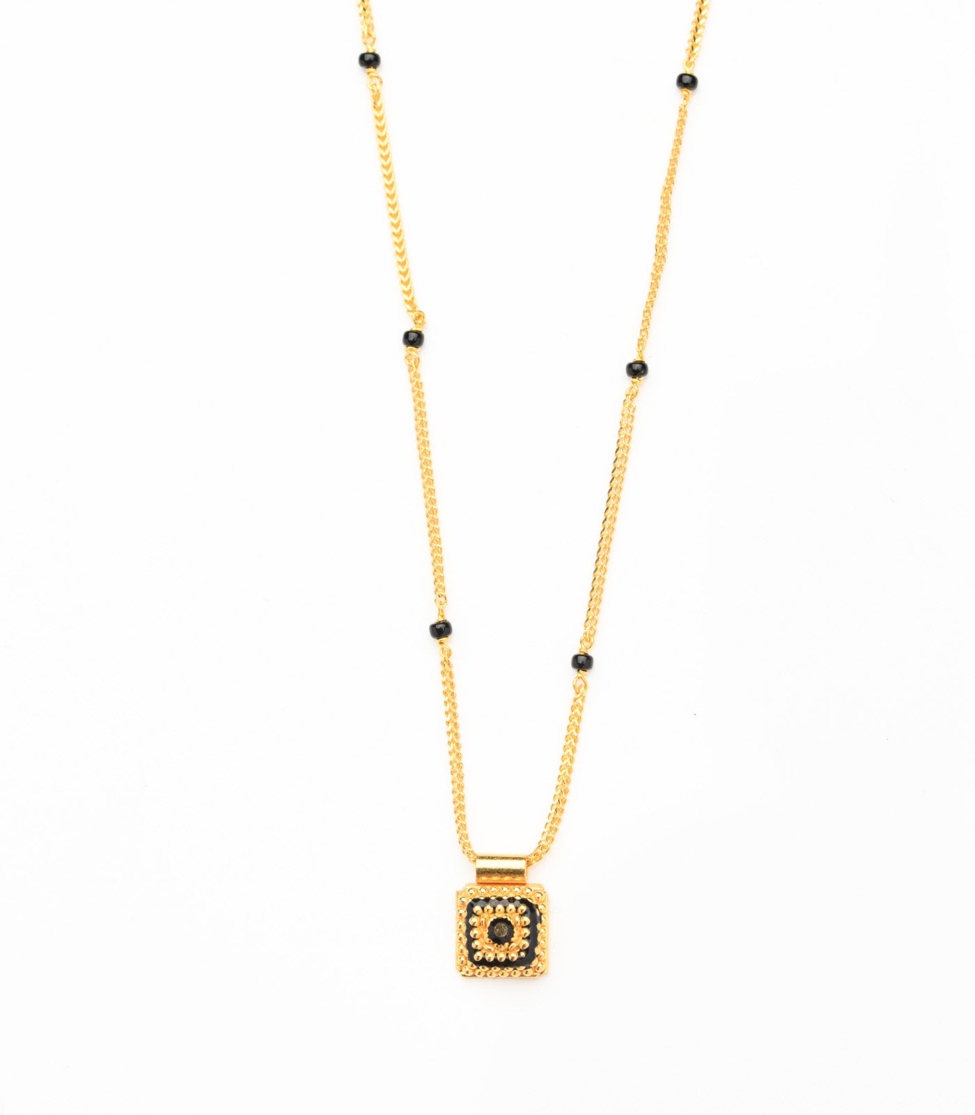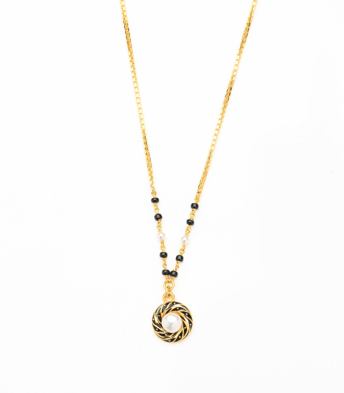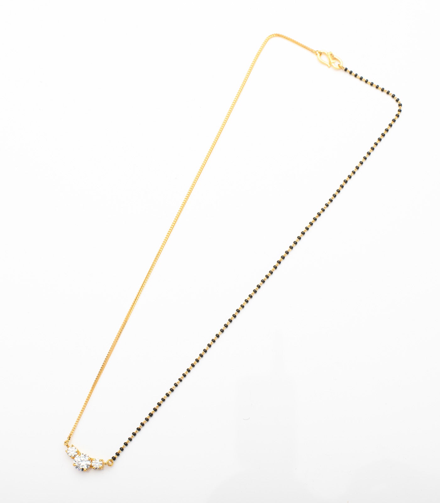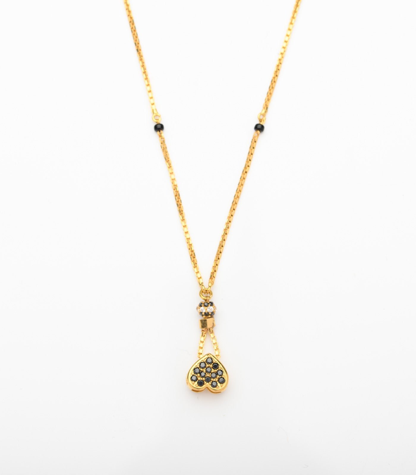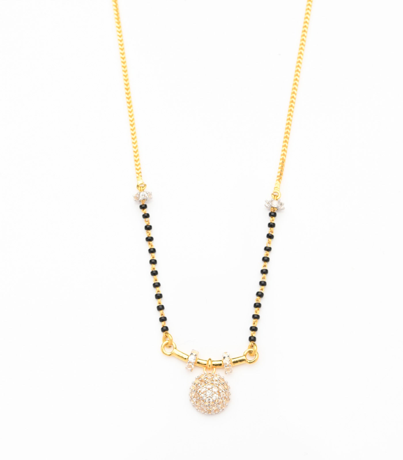 - Chain: Classic mangalsutra black-bead chain with golden links