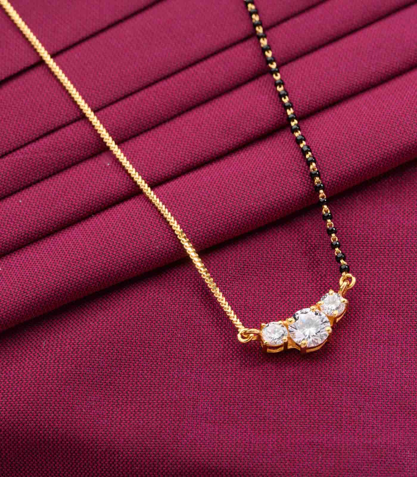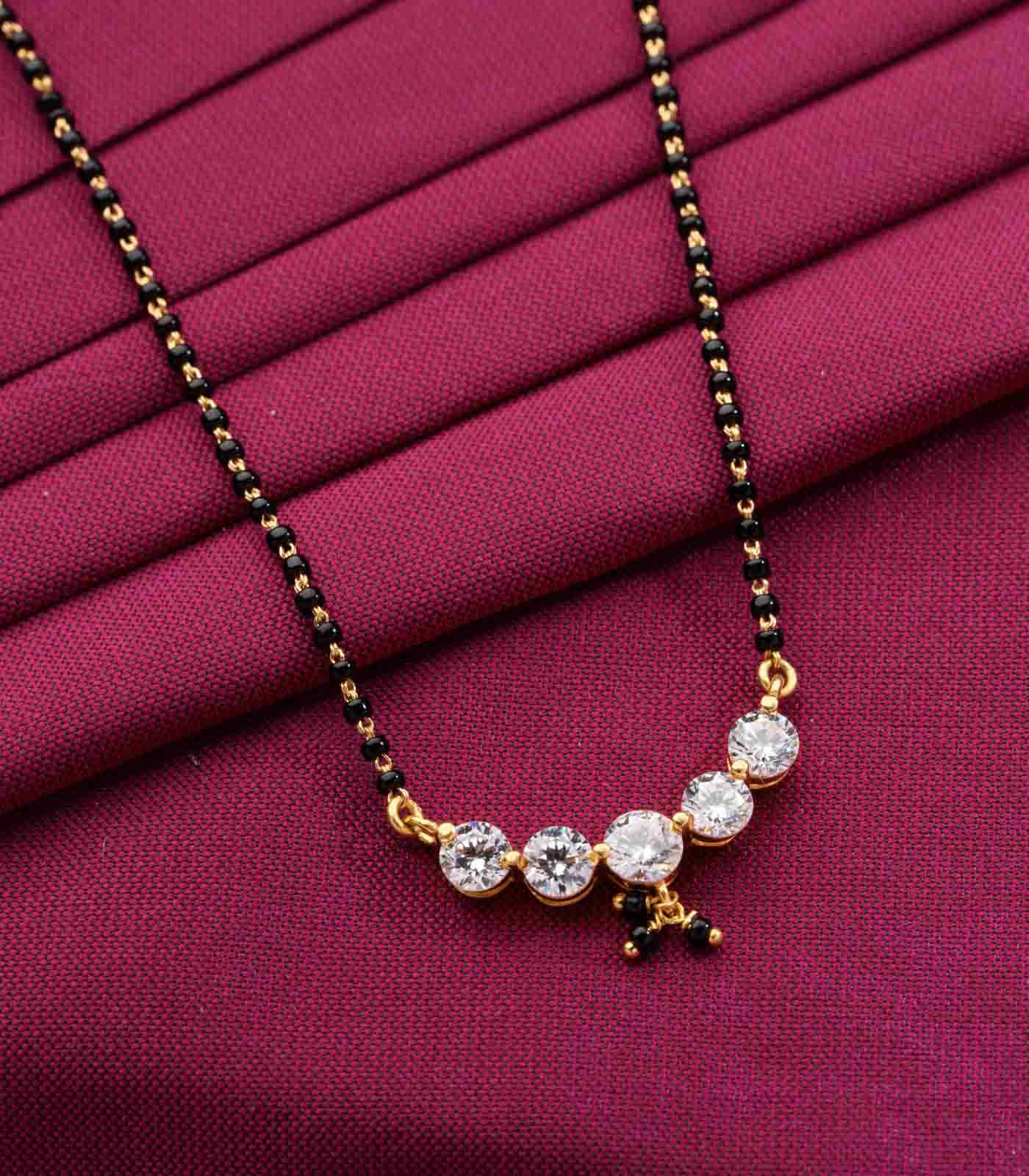 - Chain: Traditional black-bead mangalsutra with sleek gold links