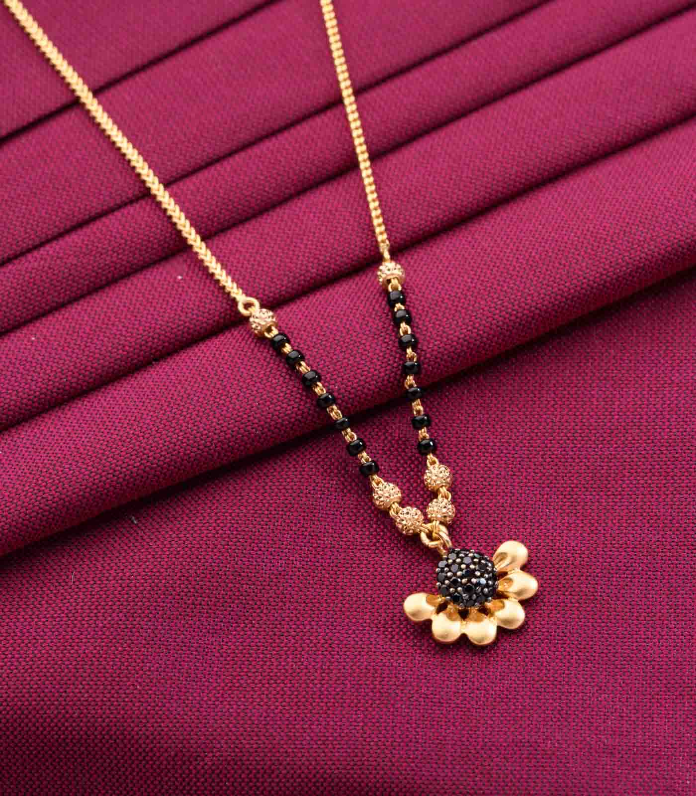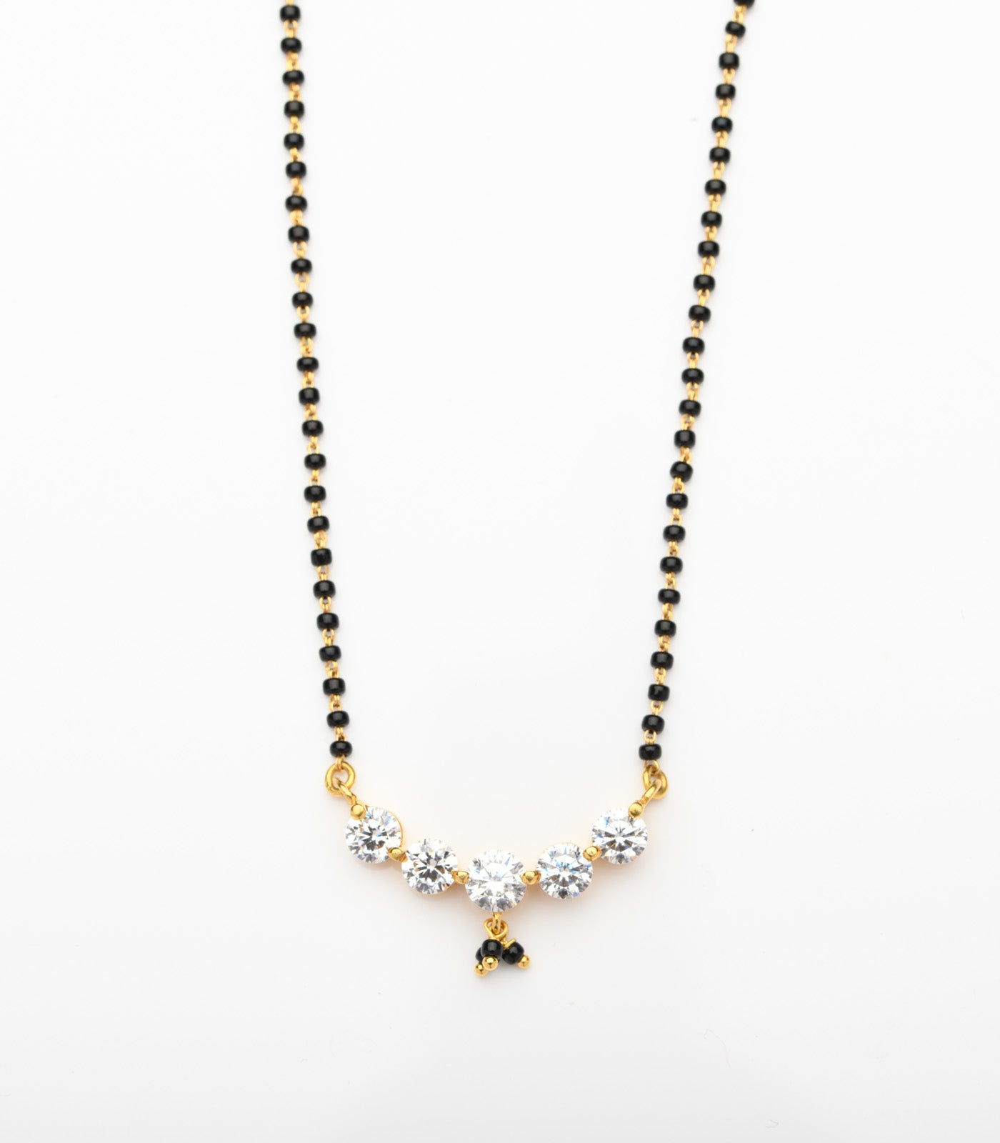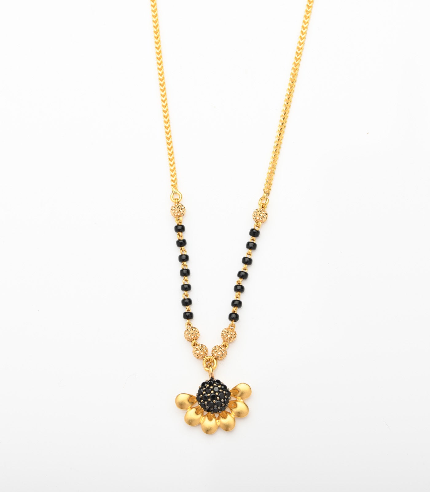 - Chain: Classic black-bead mangalsutra design with delicate gold links