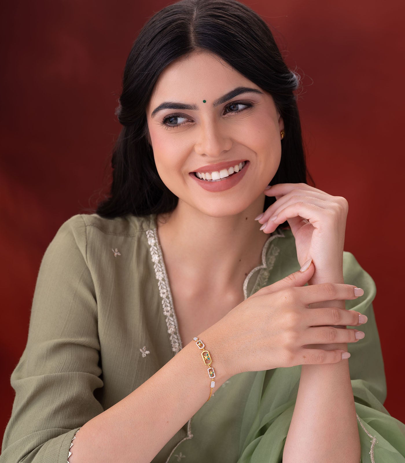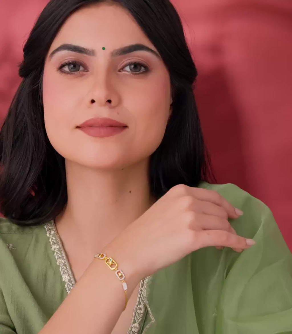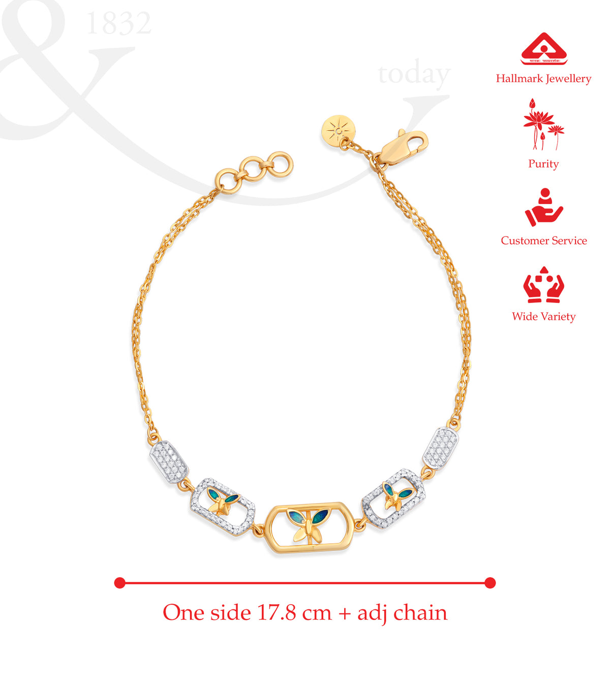 Add a graceful charm to your jewellery collection with the Butterfly Bliss Bracelet by P.N. Gadgil & Sons. Designed with delicate butterfly motifs and radiant gold-toned frames, this bracelet beautifully blends sophistication with modern elegance. The sparkling accents and intricate detailing make it a perfect choice for both daily wear and special occasions.