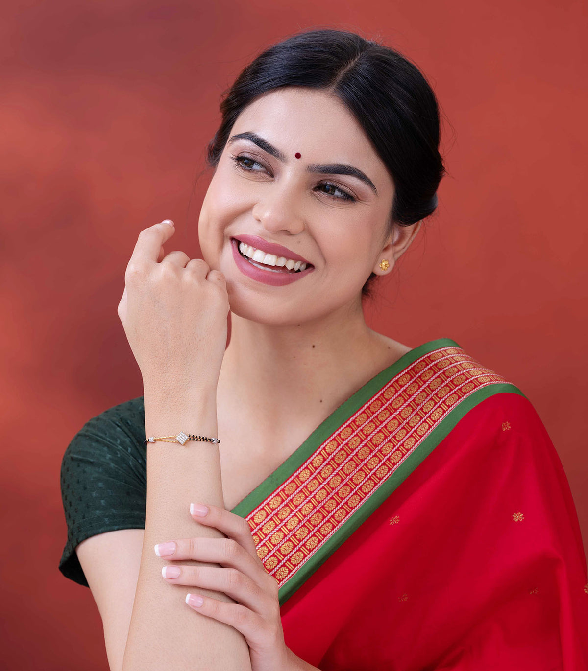 Let tradition meet modernity with this elegant Gold Mangalsutra Bracelet, a perfect blend of cultural richness and contemporary style.