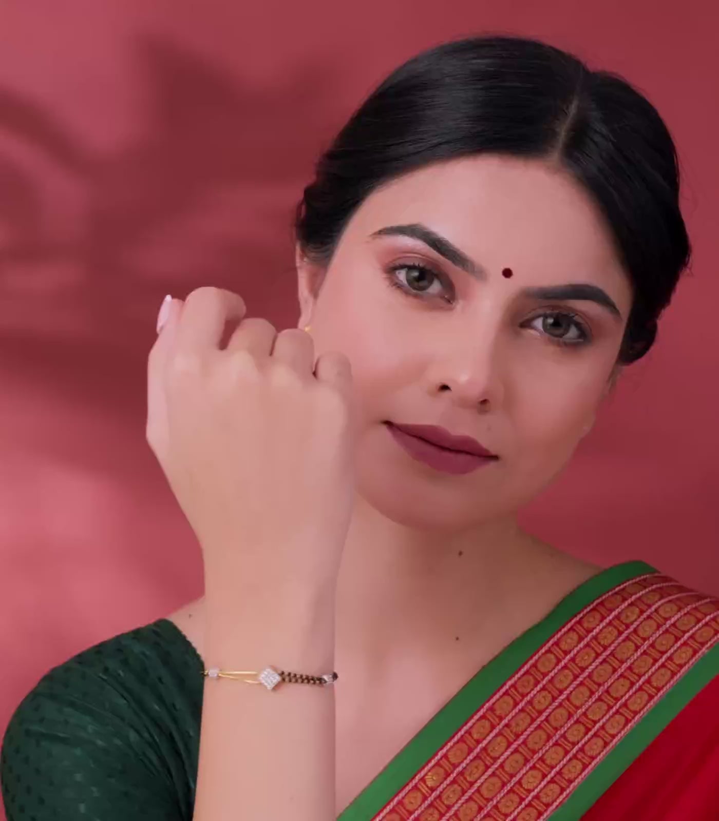 A stunning fusion of tradition and modern elegance, this 22K gold Mangalsutra bracelet by P.N. Gadgil & Sons is designed to celebrate the eternal bond of love. Featuring dual rows of delicate black beads symbolizing protection and prosperity, the bracelet is centered around intricately crafted gold motifs that exude grace and fine craftsmanship.