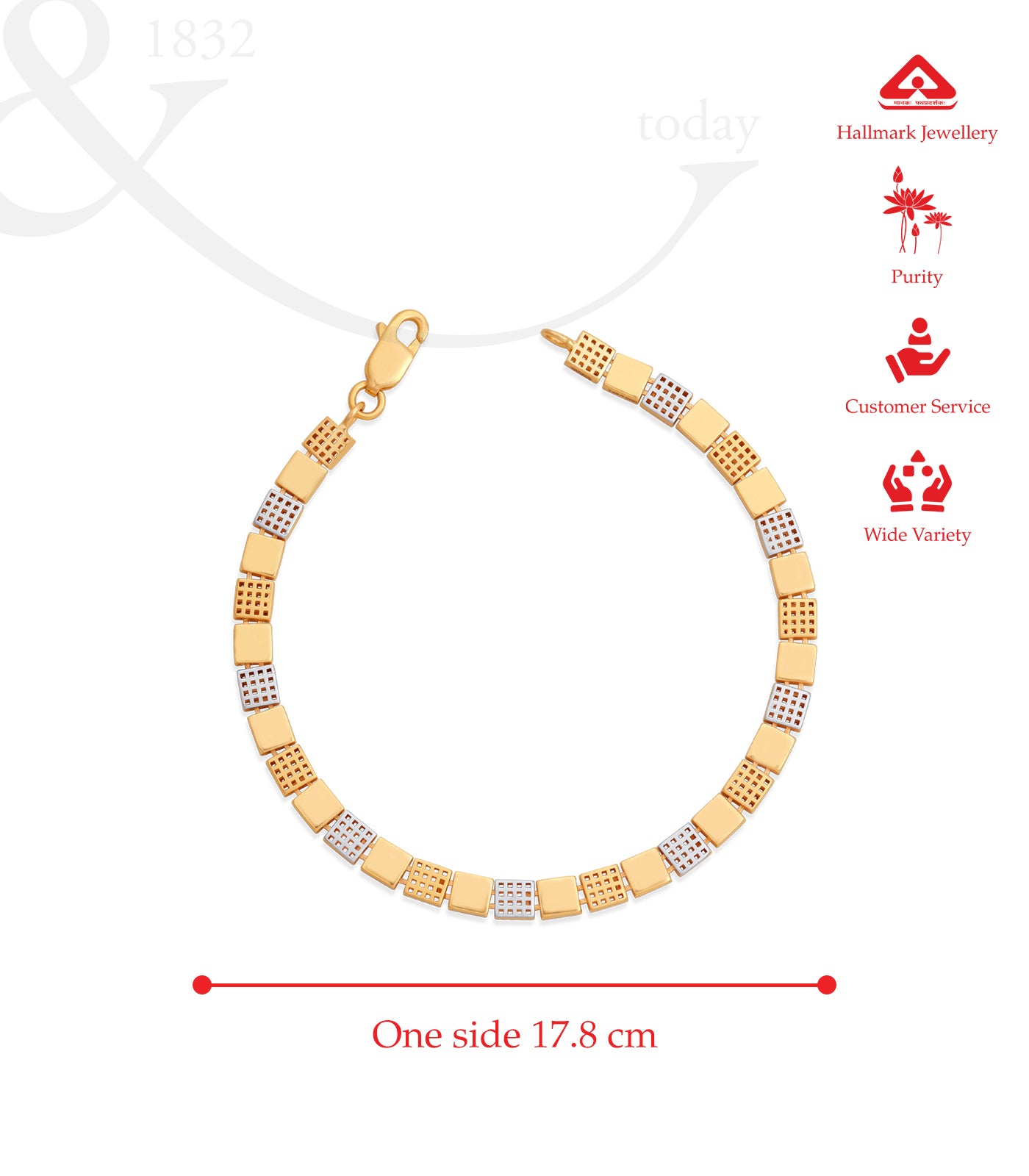 Celebrate elegance inspired by nature with the Geometric Dual-Tone Gold Bracelet with Square Link Pattern from P.N. Gadgil & Sons.