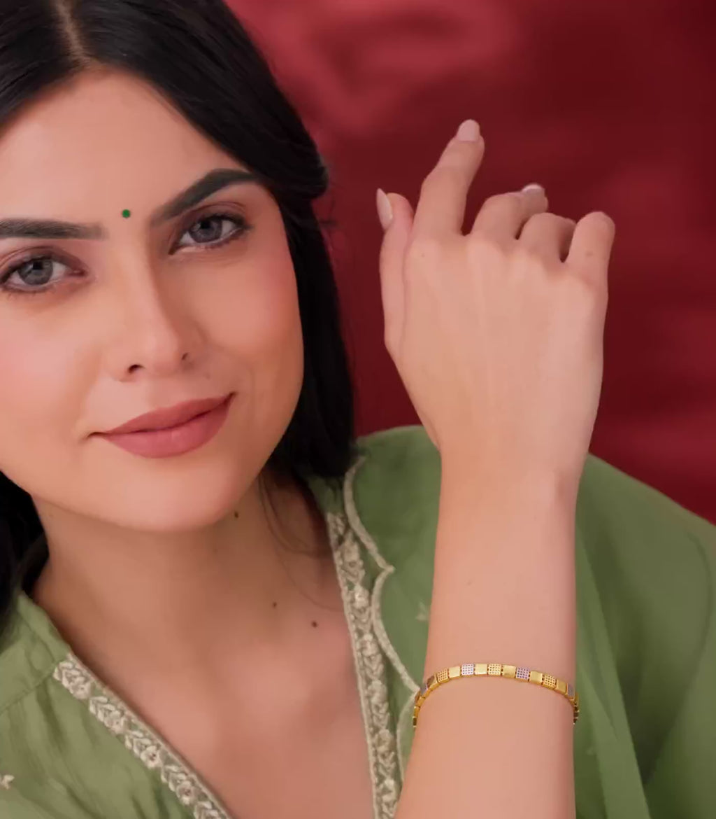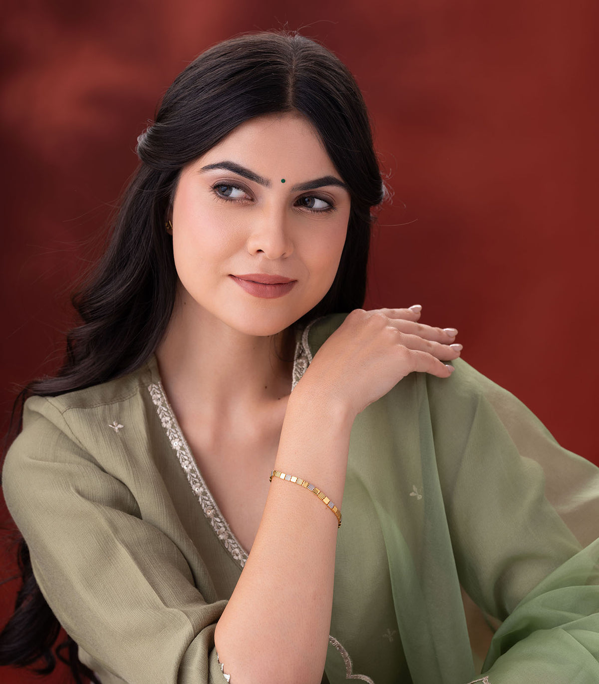 Its symmetrical, cube-inspired layout is perfect for adding a structured, contemporary flair to traditional gold jewelry. Whether paired with ethnic wear or a formal outfit, this bracelet promises versatility and class.