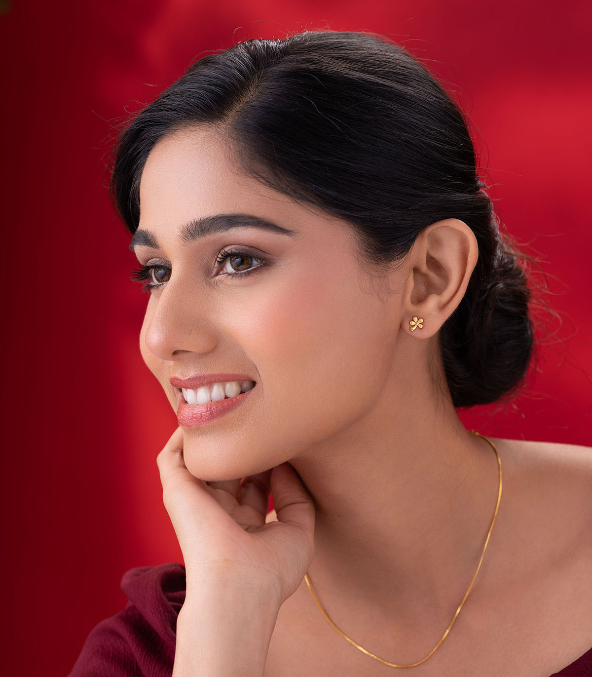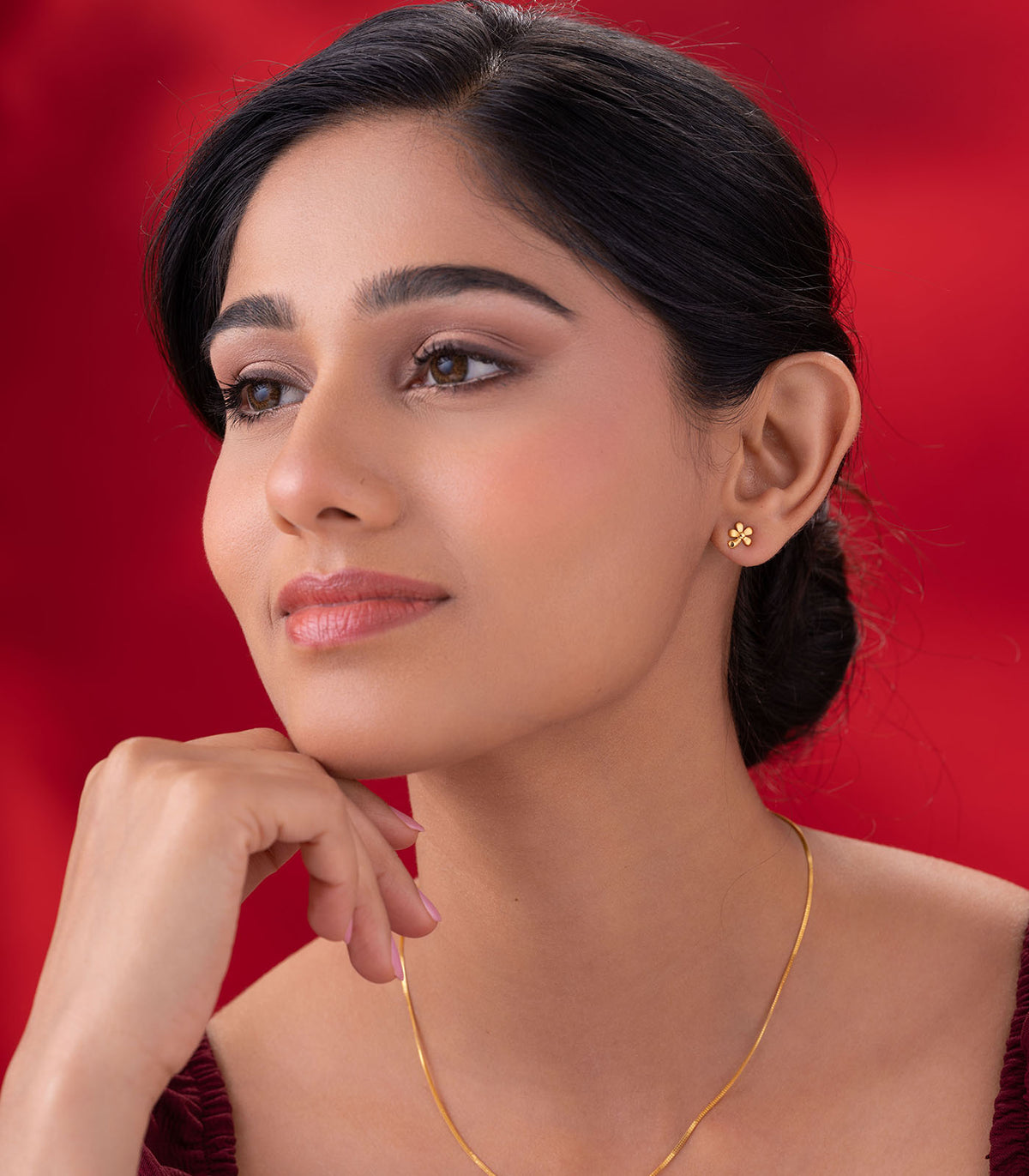 The Daisy Glow Gold Tops embody the charm of blooming simplicity. Crafted in the shape of a five-petal flower, each petal’s soft matte and polished finish adds depth and radiance — a joyful expression of femininity and grace.