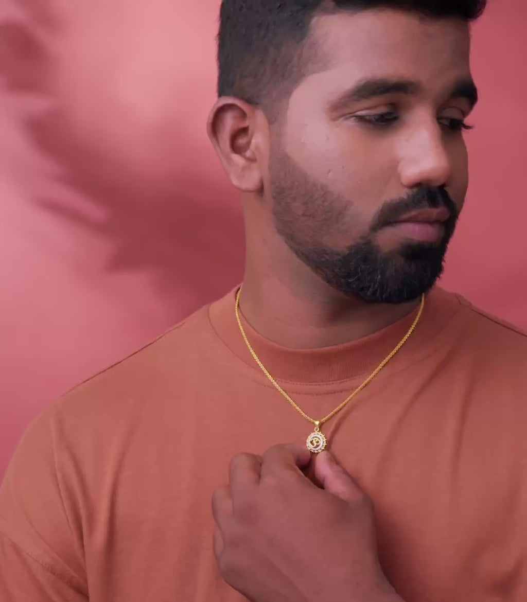 Divine Om Studded Gold Pendant