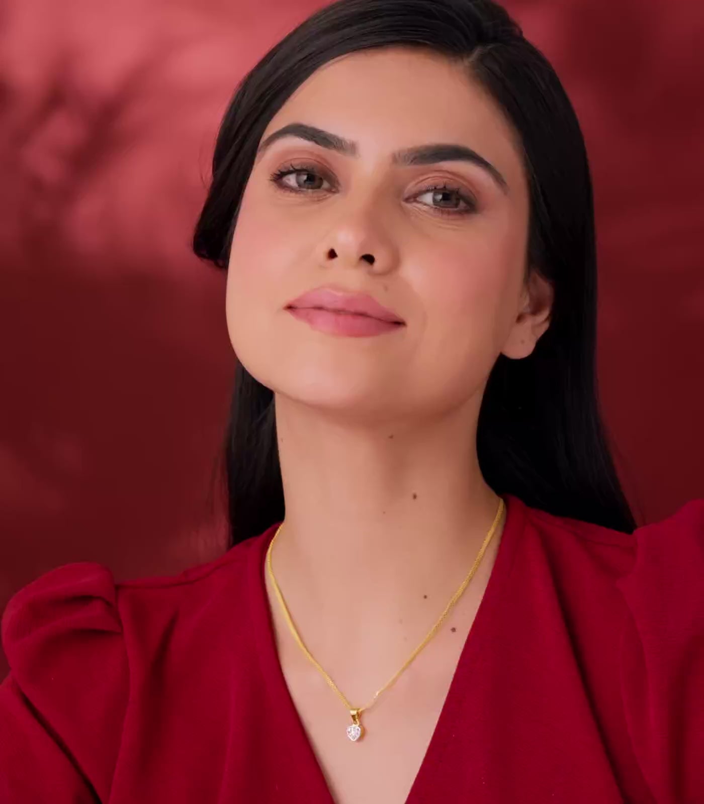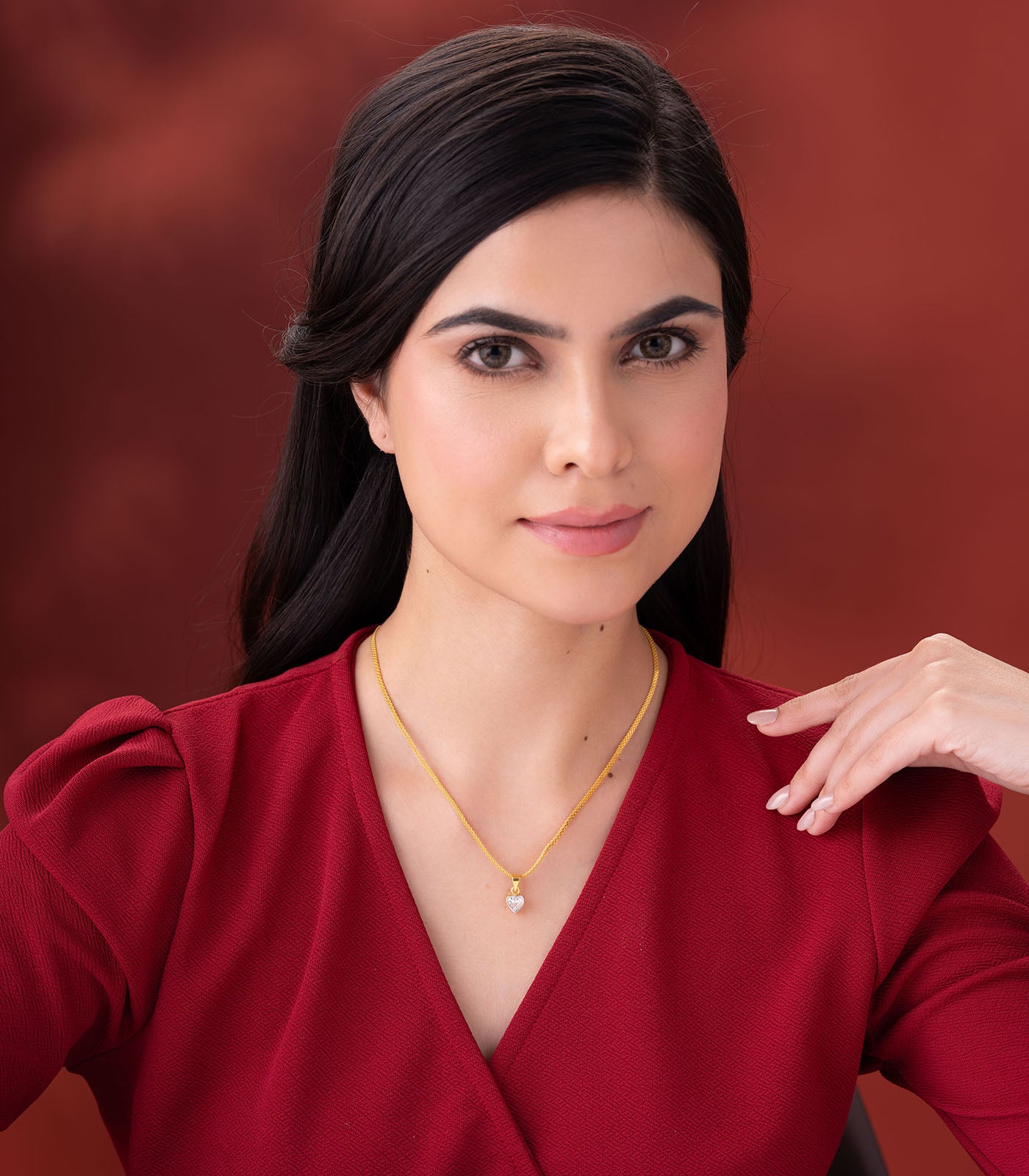 The Heart Shaped Studded Gold Pendant is a radiant symbol of love and elegance. Crafted in luminous 22KT gold, this pendant features a classic heart motif, beautifully embellished with sparkling stones that exude charm and brilliance. Its timeless design makes it a perfect keepsake, whether as a self-expression of style or a heartfelt gift for someone special.