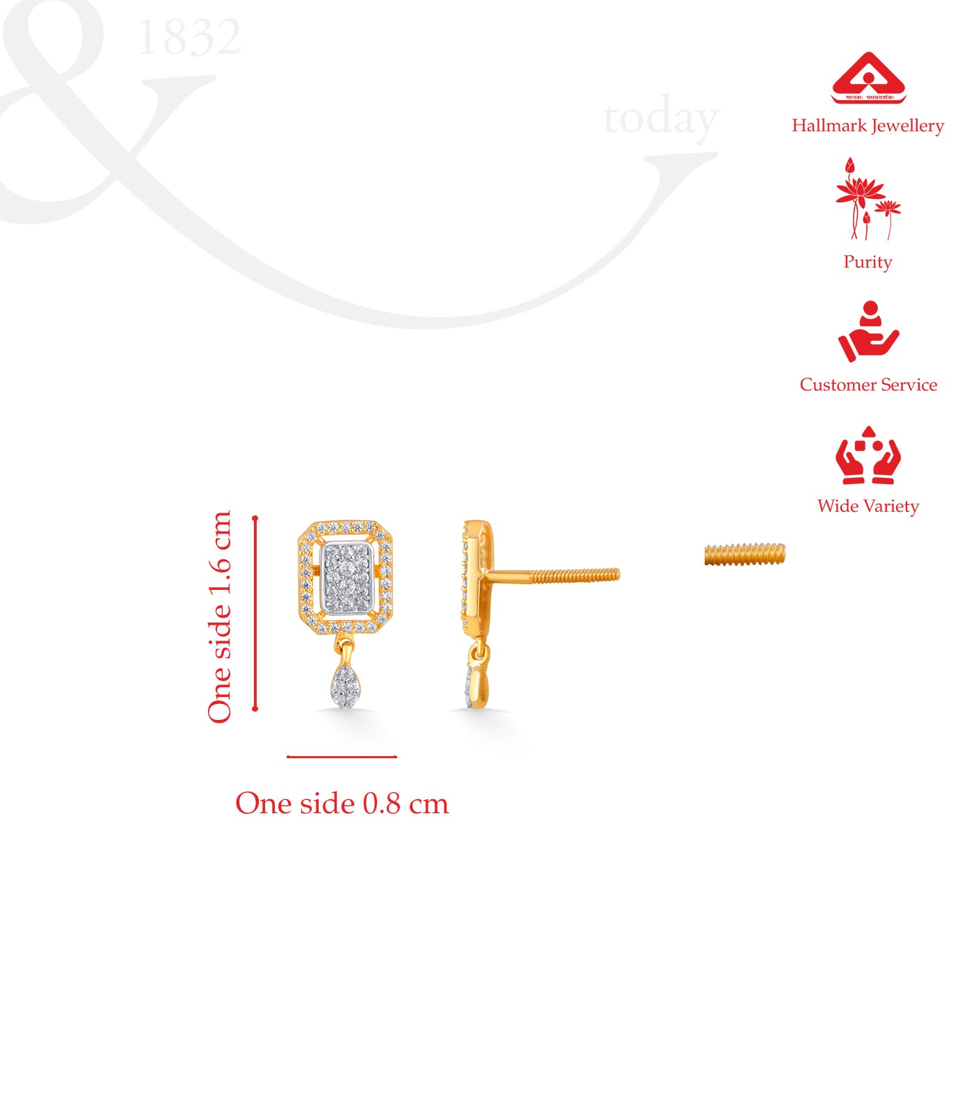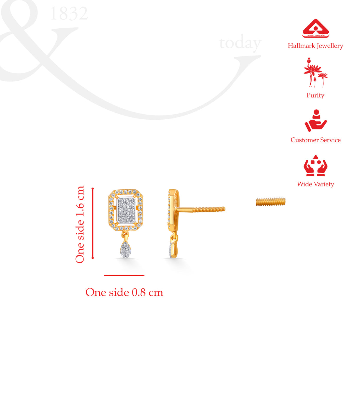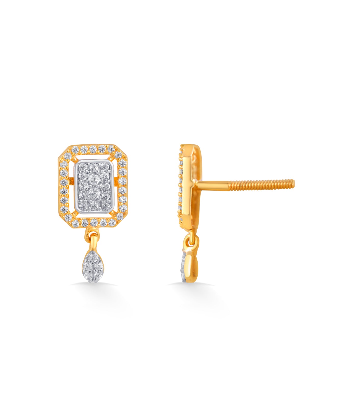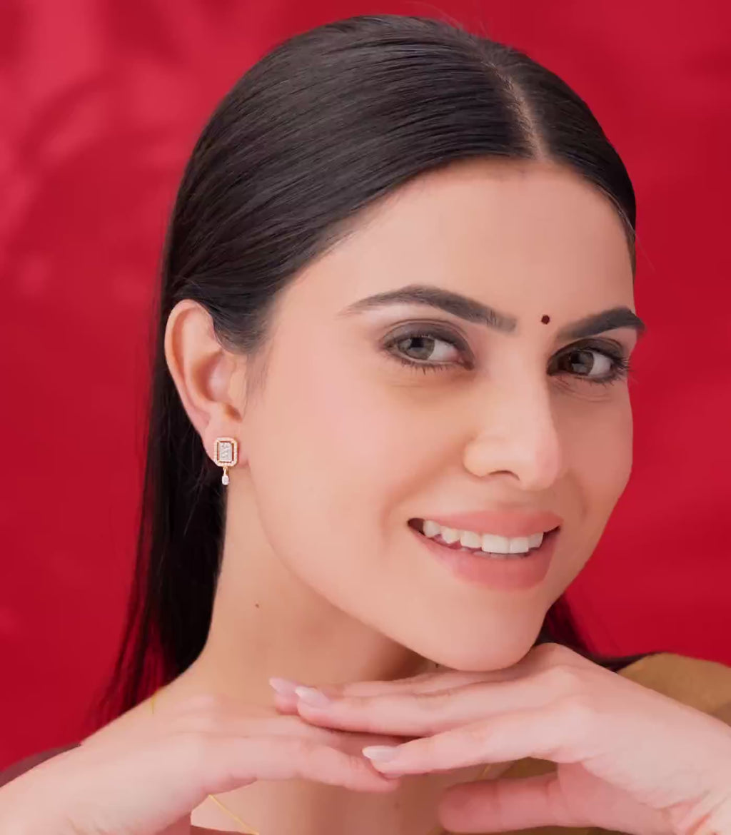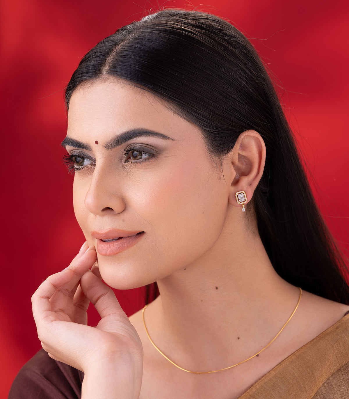 - Design: Rectangular stone-studded frame with a delicate teardrop accent