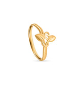 - Design: Delicate bypass-style band showcasing two polished gold leaves joined by a graceful, central scroll motif