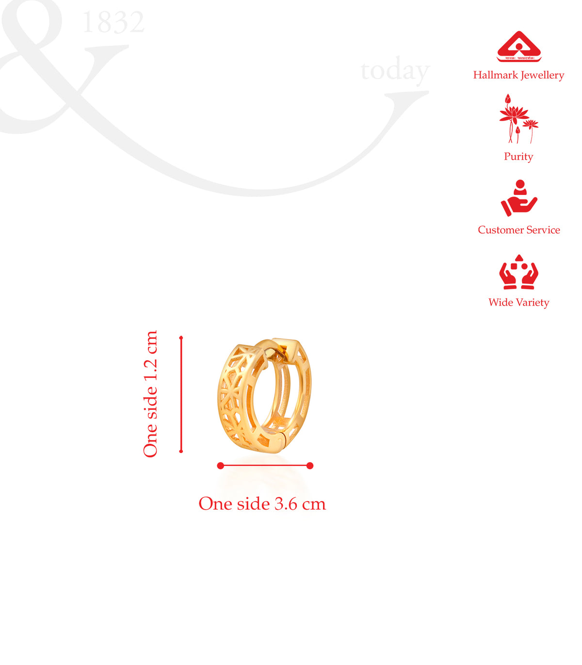 - Design: Hoop earring with intricate geometric cutwork detailing