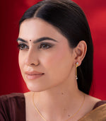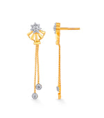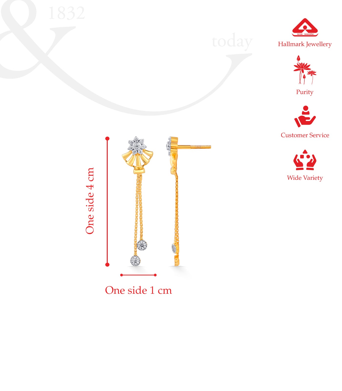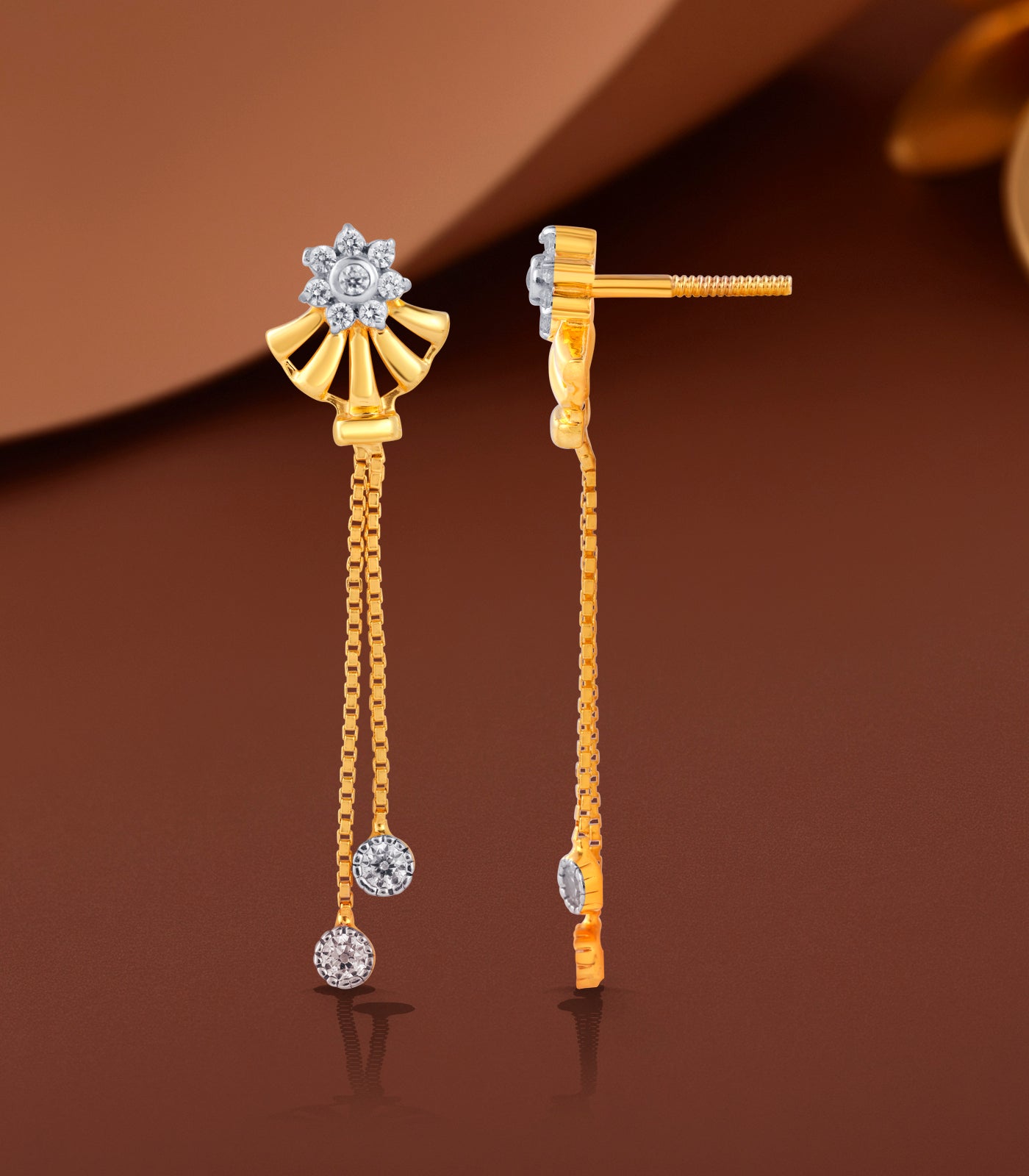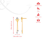 - Design: Floral stud top with dual drop chains and bezel-set stones