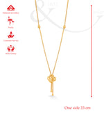 An intricate goph-style necklace featuring a central floral motif with elegant hanging drops, crafted to move with you. The design blends soft geometry and fluid lines, giving a delicate twist to classic gold craftsmanship.