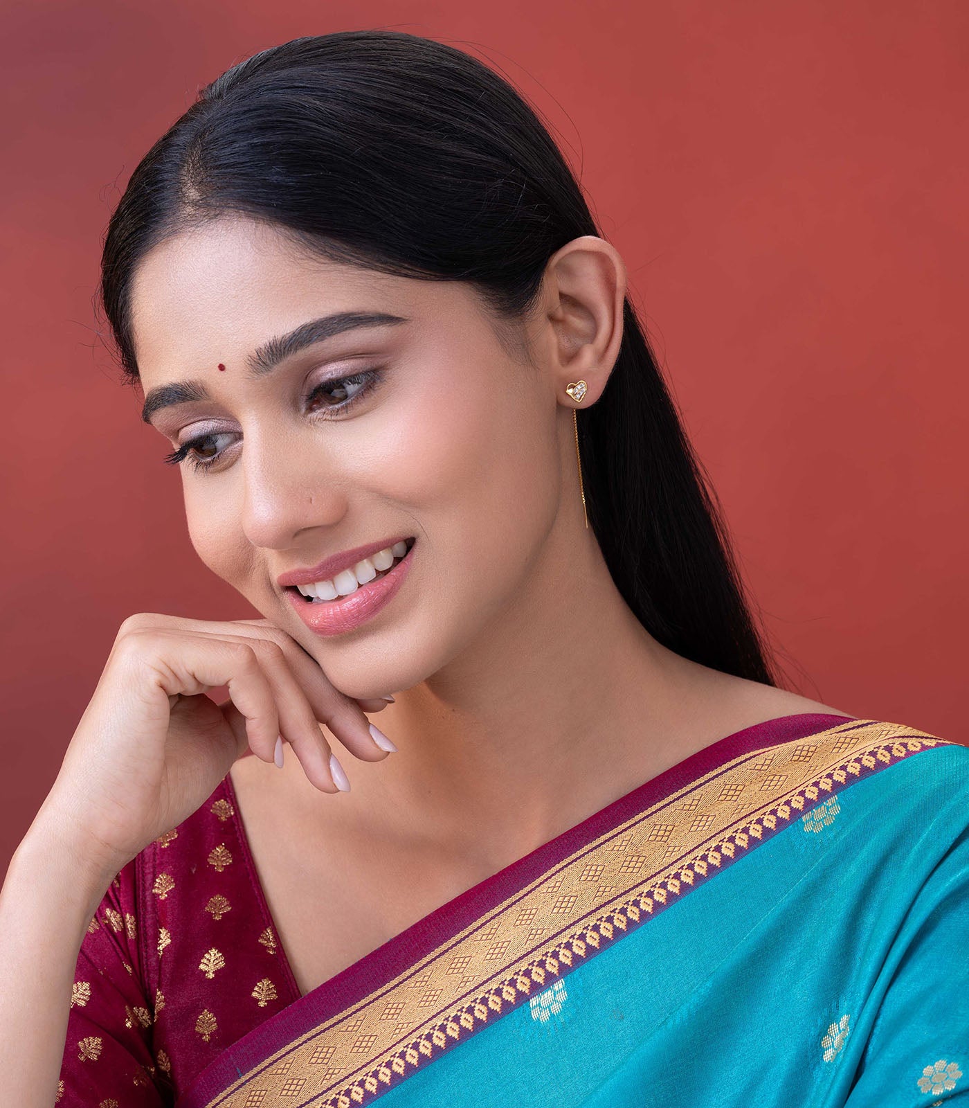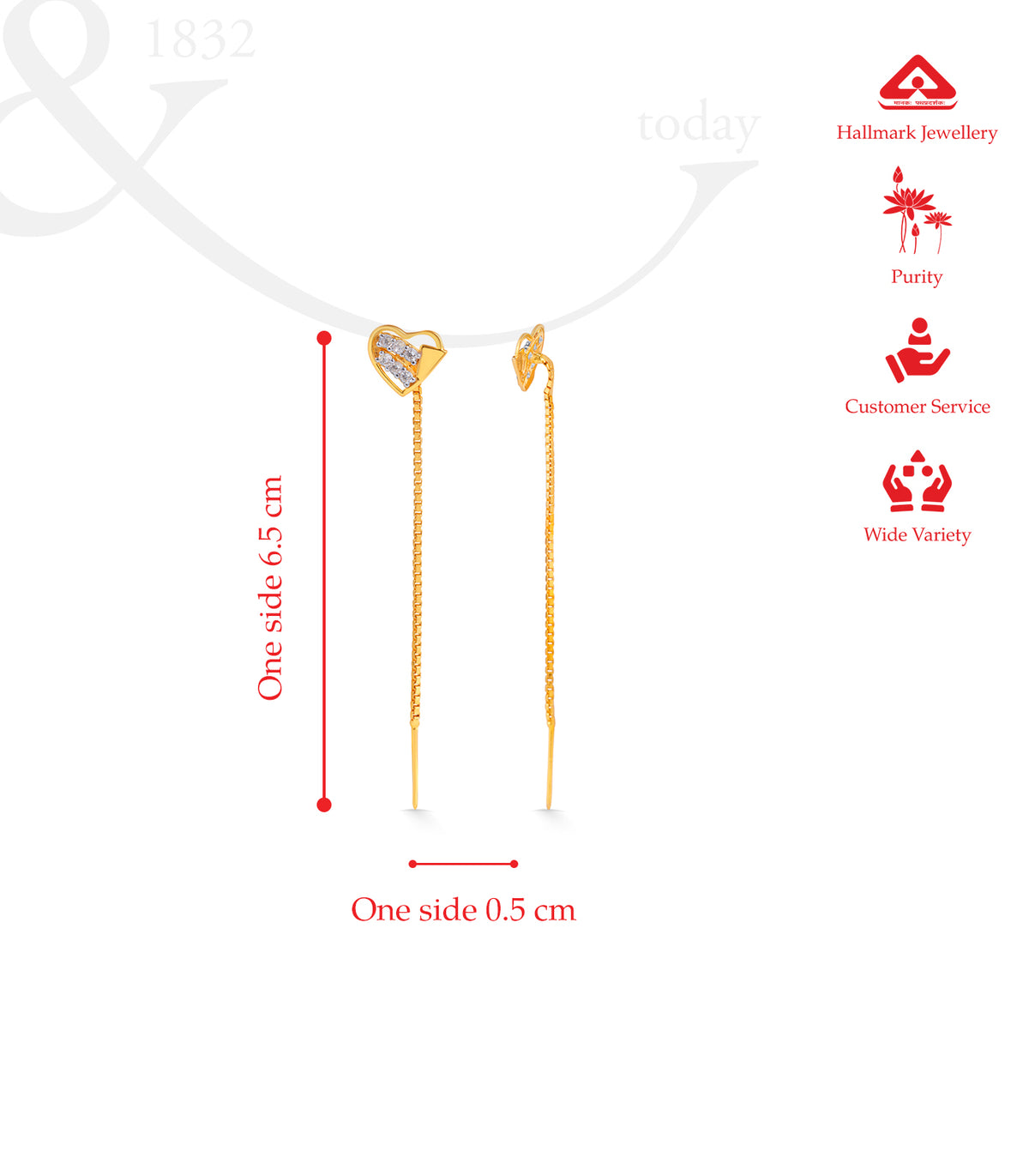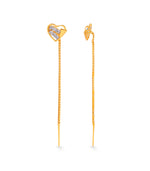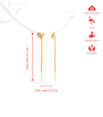 The Gleaming Heart Cascade Gold Tops blend modern romance with fluid elegance — where a dainty heart motif meets a sleek, elongated drop chain. The sparkling stone-studded heart adds a touch of brilliance, while the delicate linear silhouette creates a graceful, stylish fall. A design crafted for those who love understated charm with a contemporary twist.
