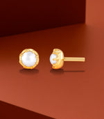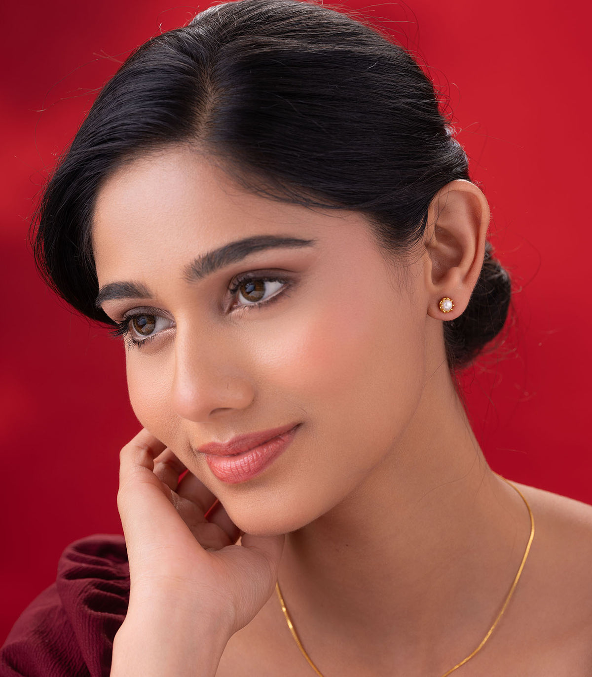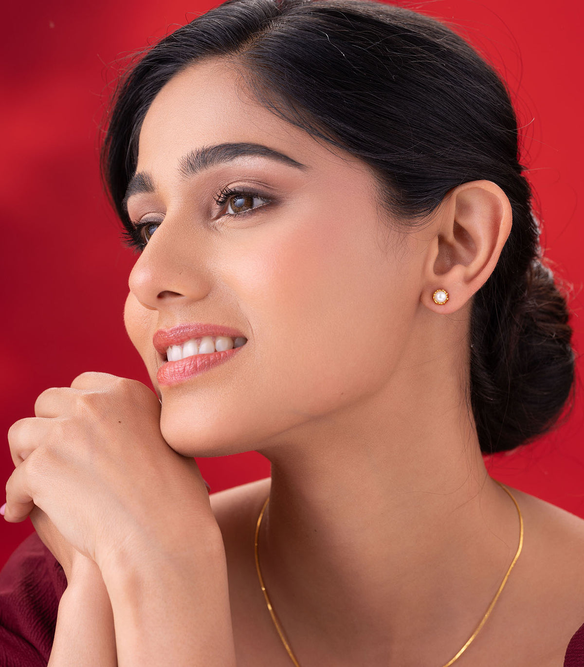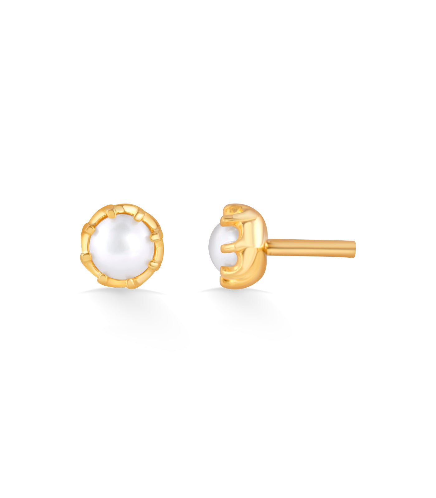 The Halo Pearl Studs capture the quiet grace of timeless beauty. A radiant pearl, gently embraced by a gleaming gold halo, creates a perfect balance of simplicity and elegance.