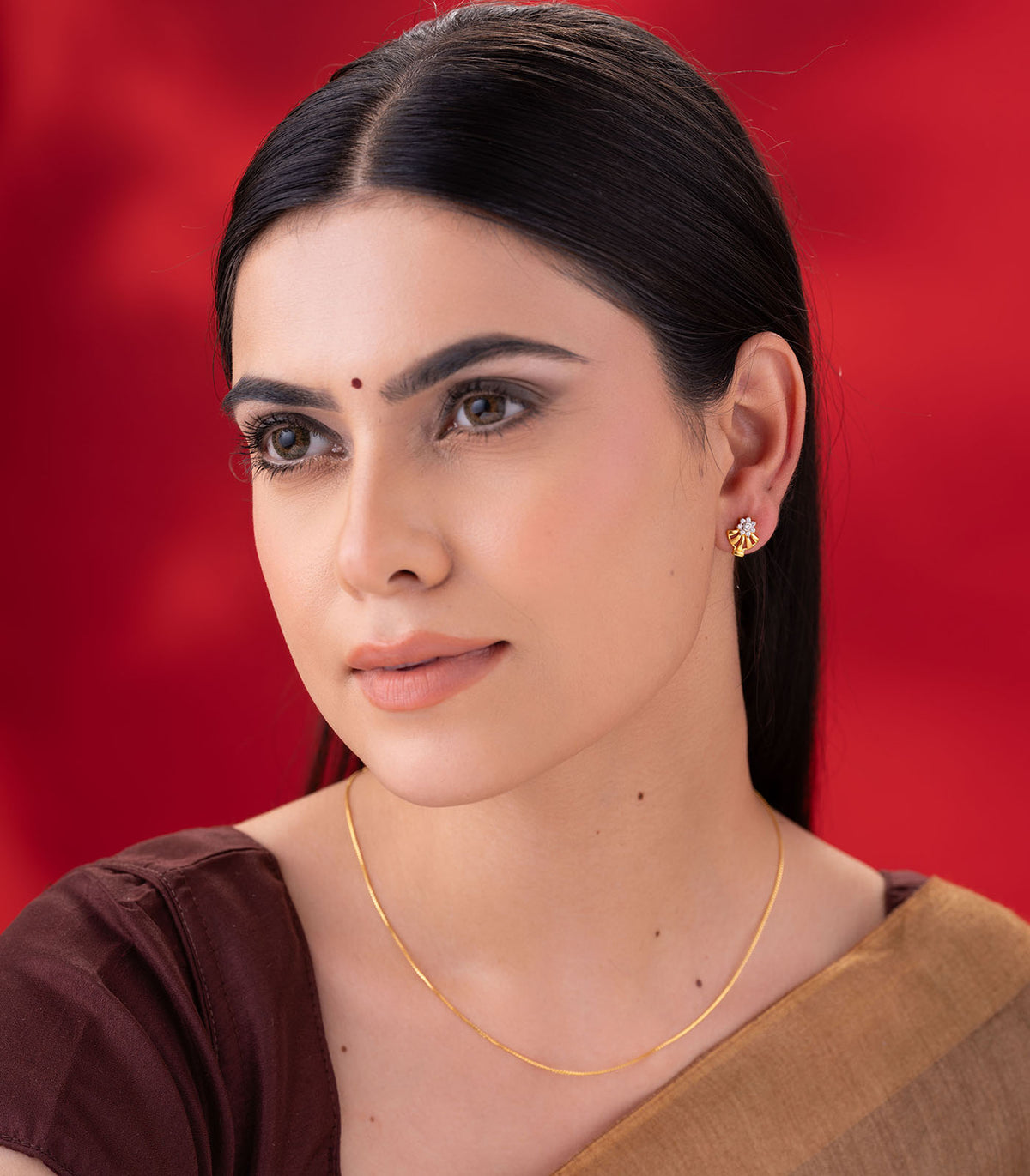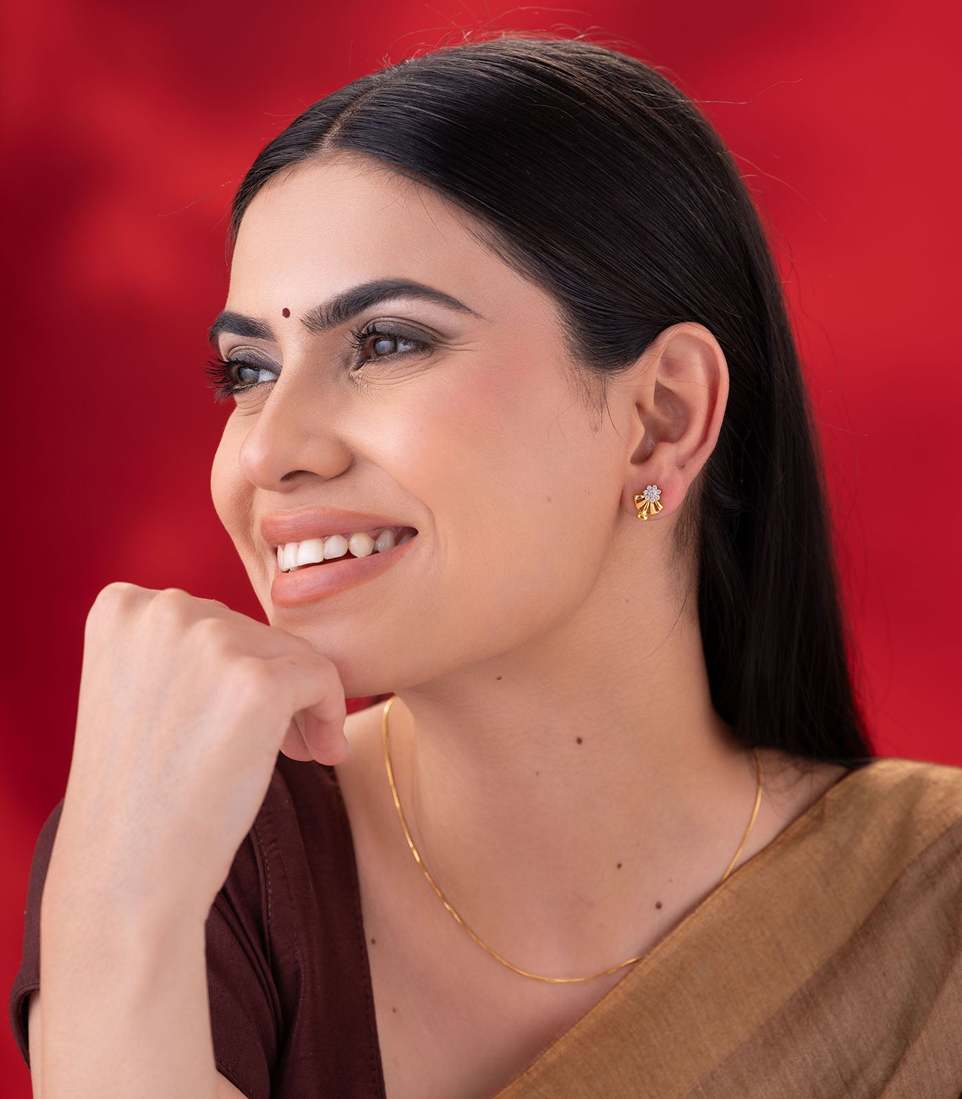 - Design: Floral cluster top with a flared petal-inspired gold base