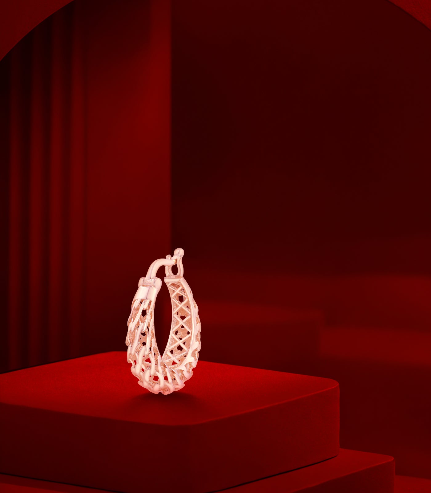 The Regal Weave Men’s Bali blends strength with artistry — a bold expression of heritage craftsmanship reimagined for the modern man. With its intricately braided outer form and a meticulously carved lattice interior, this 18KT gold bali embodies sophistication, power, and timeless masculine elegance.