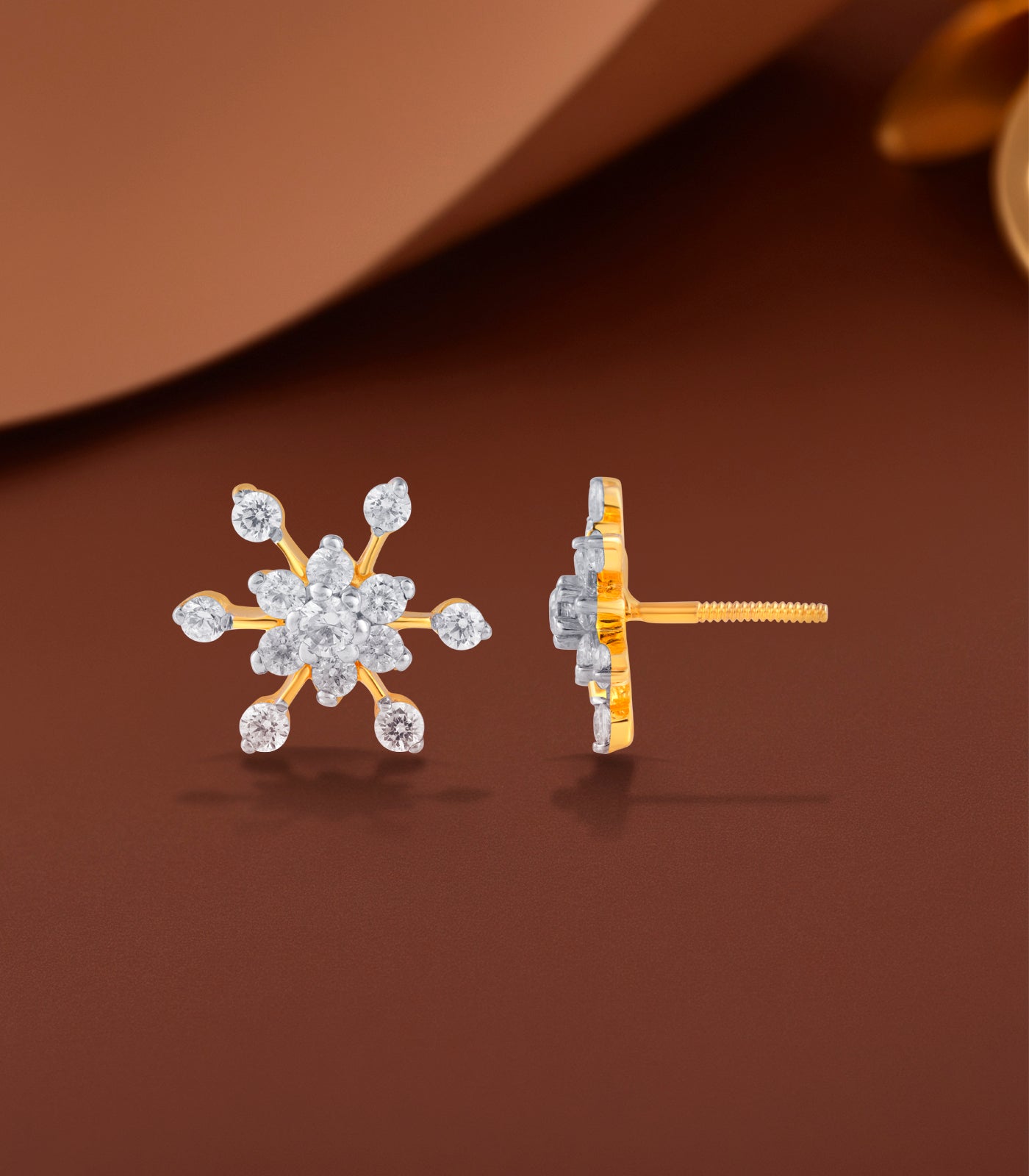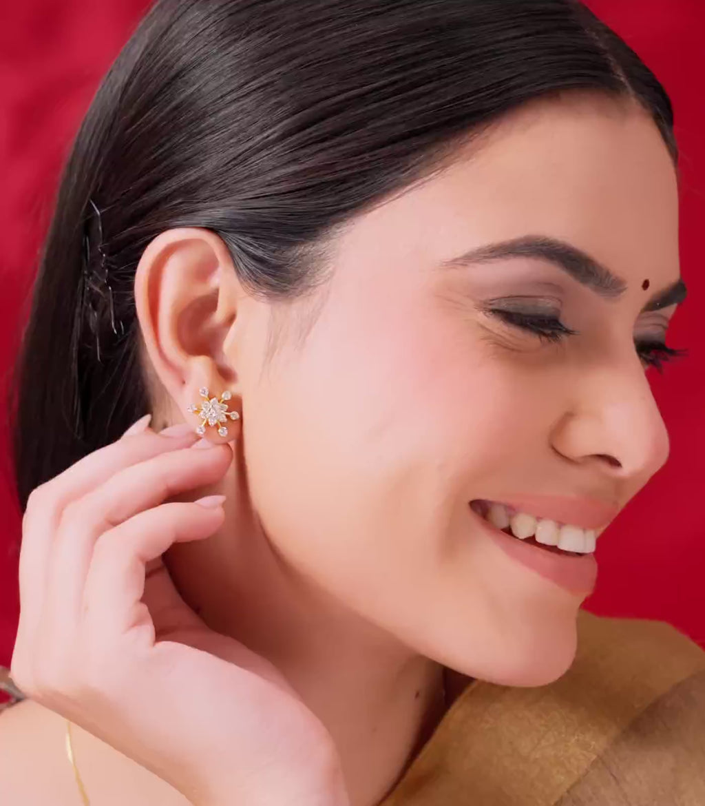 The Snow Radiance Tops sparkle with celestial beauty, capturing the elegance of a snowflake frozen in gold and light. Each prong-set stone forms a delicate symmetry that radiates brilliance from every angle.