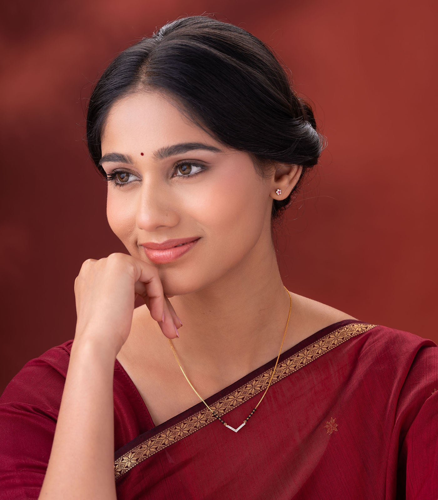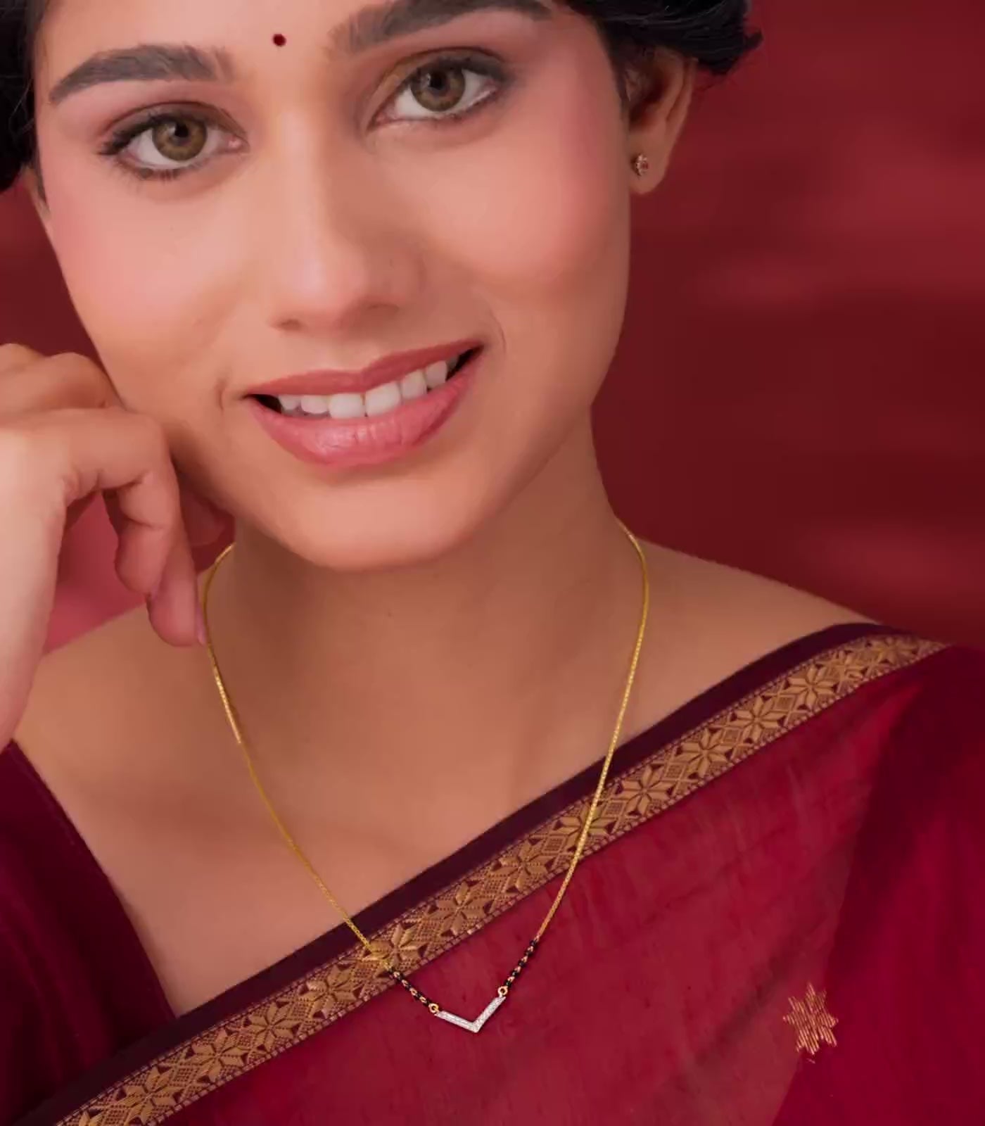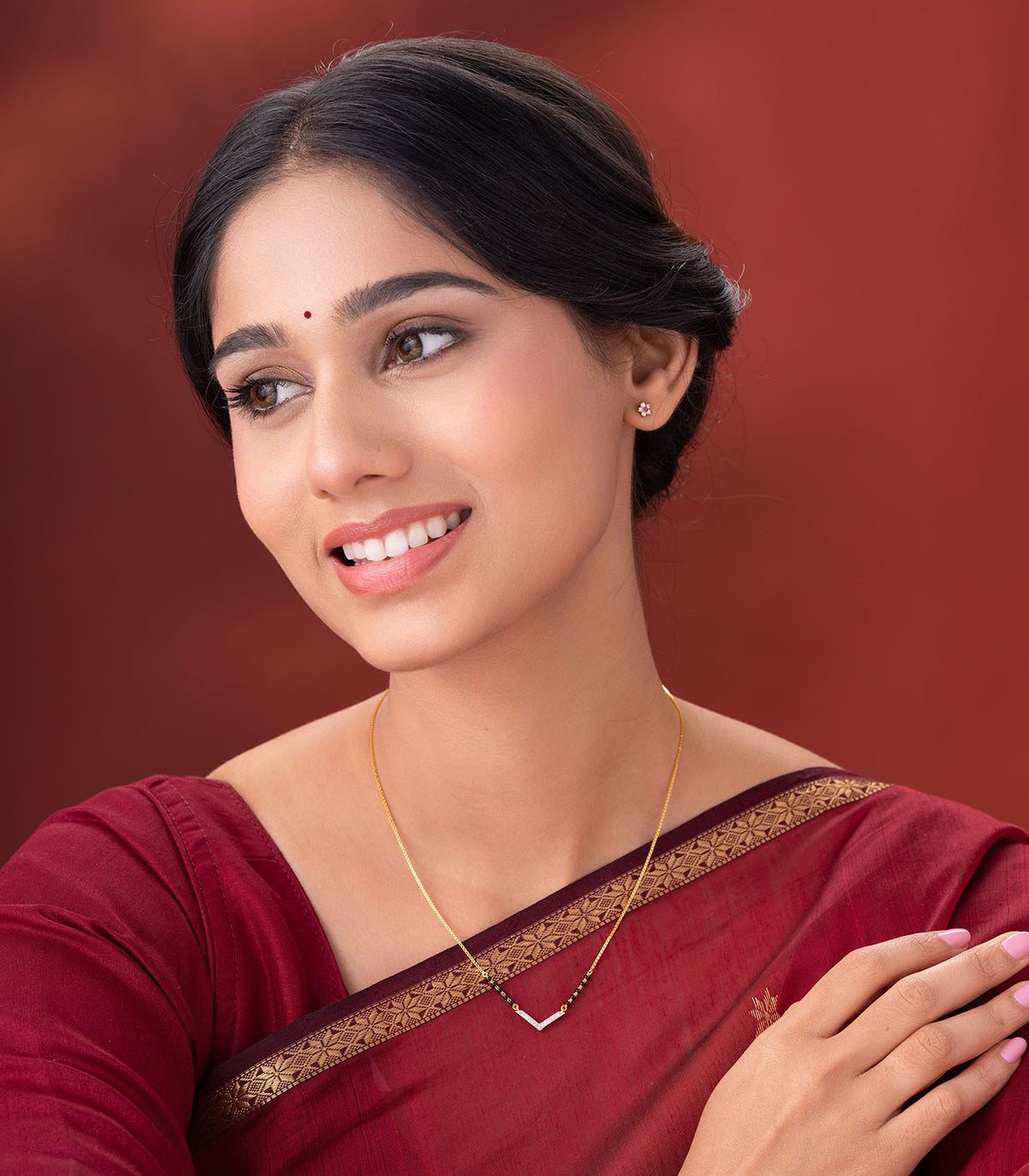 - Chain: Classic black-bead mangalsutra with fine gold links