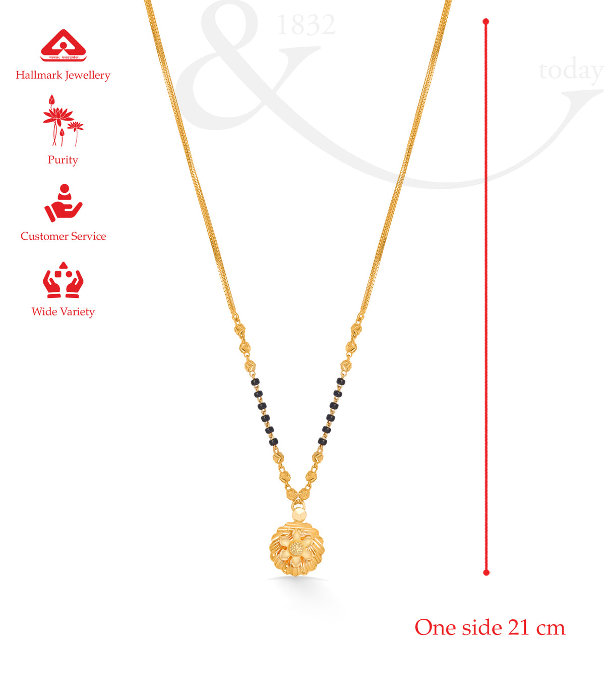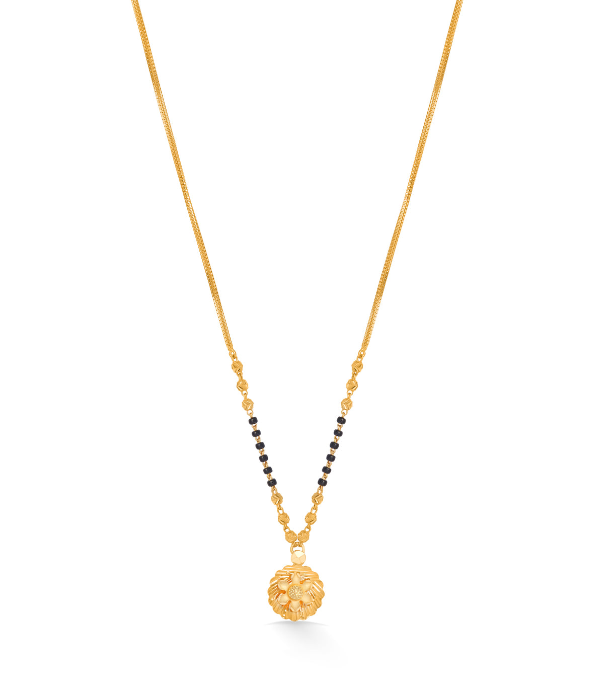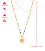 Celebrate timeless beauty with the Golden Blossom Mangalsutra, a radiant expression of love and tradition. Designed with a floral-inspired gold pendant, this mangalsutra brings together the charm of intricate artistry and the symbolism of eternal togetherness.