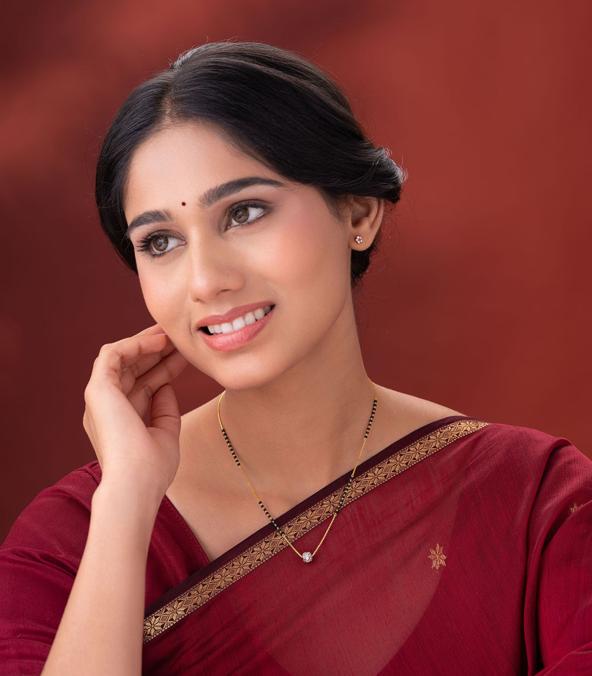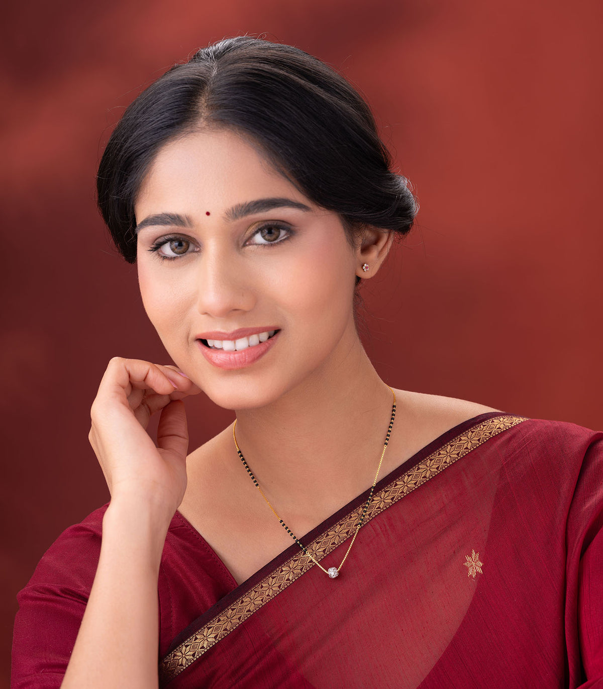 - Chain: Traditional black-bead mangalsutra chain, symbolizing eternal bond