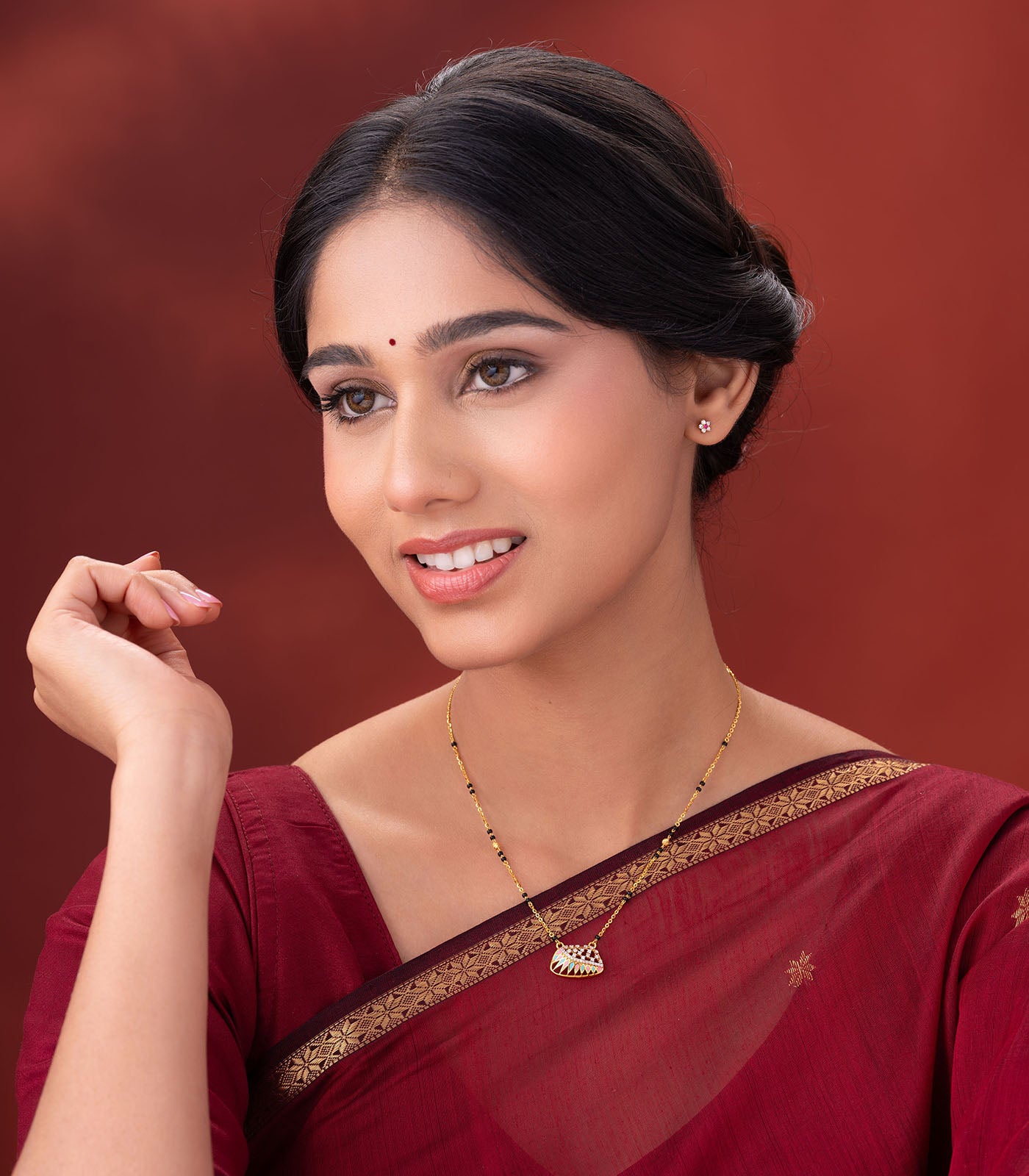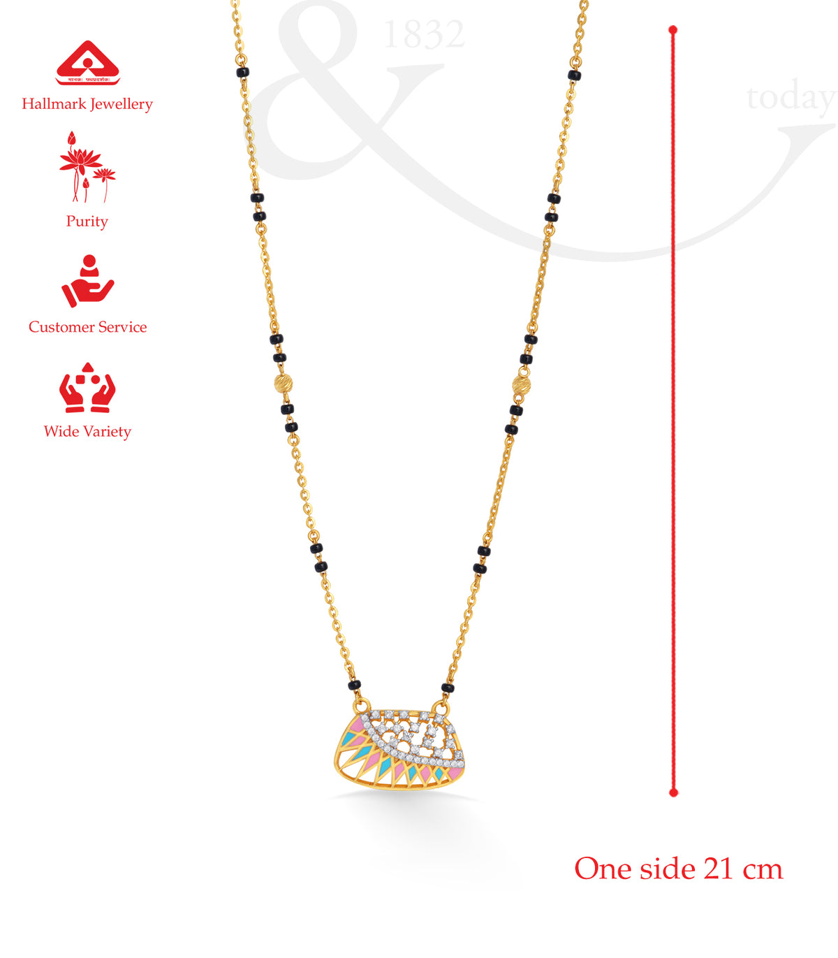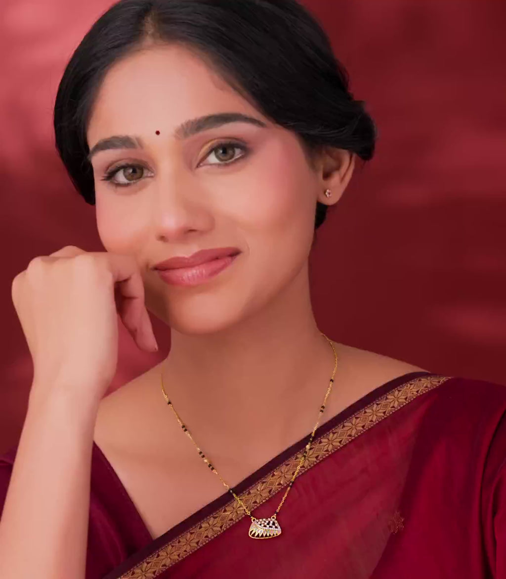 - Chain: Traditional mangalsutra black-bead chain with golden links