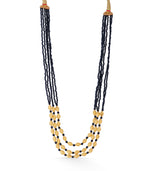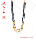 Design: A conical layered haar where glossy black beads are beautifully aligned with gold elements, symbolizing protection, elegance, and prosperity.