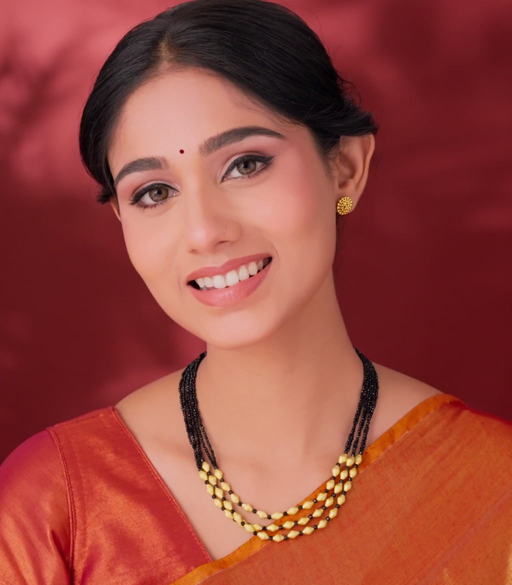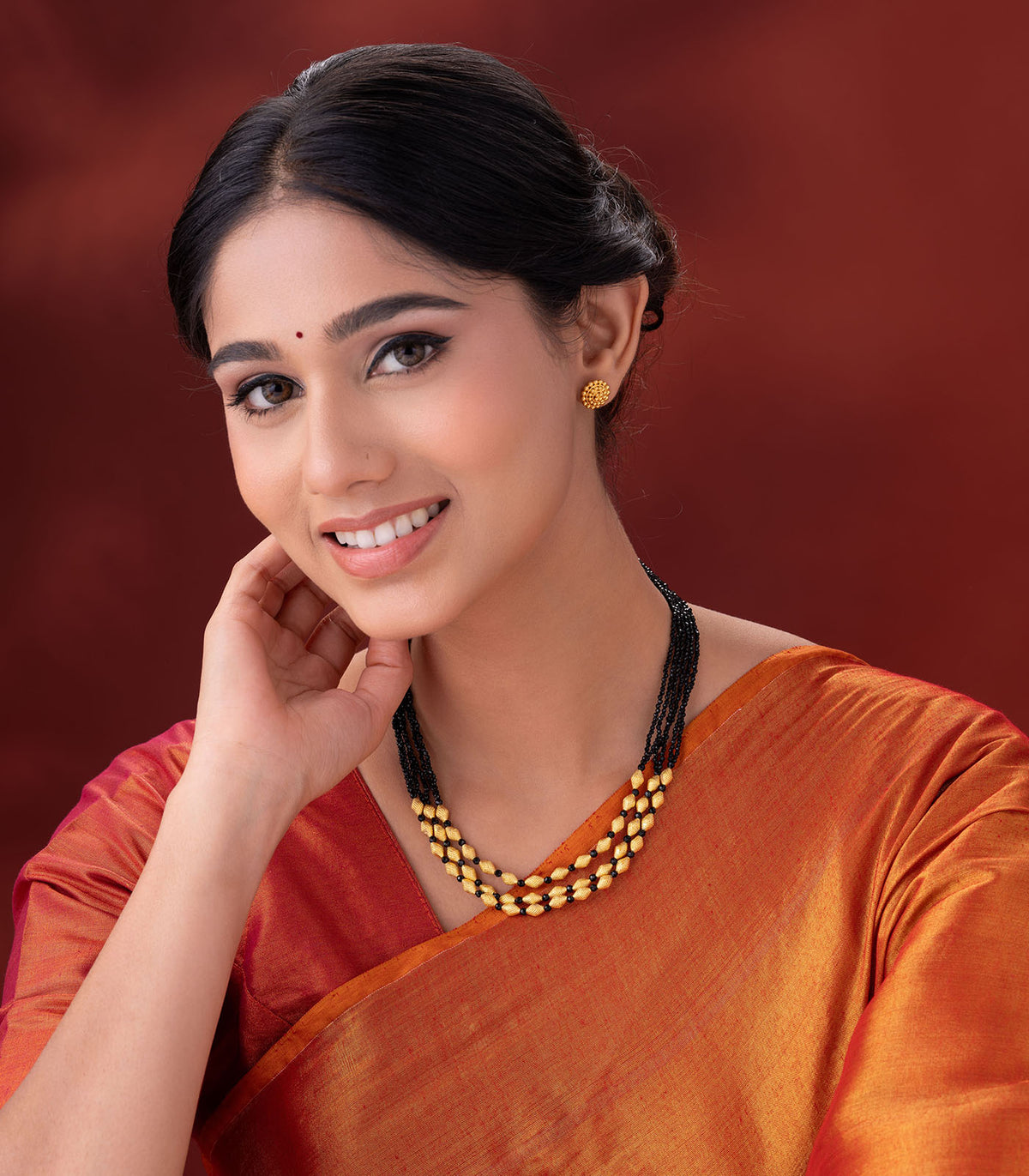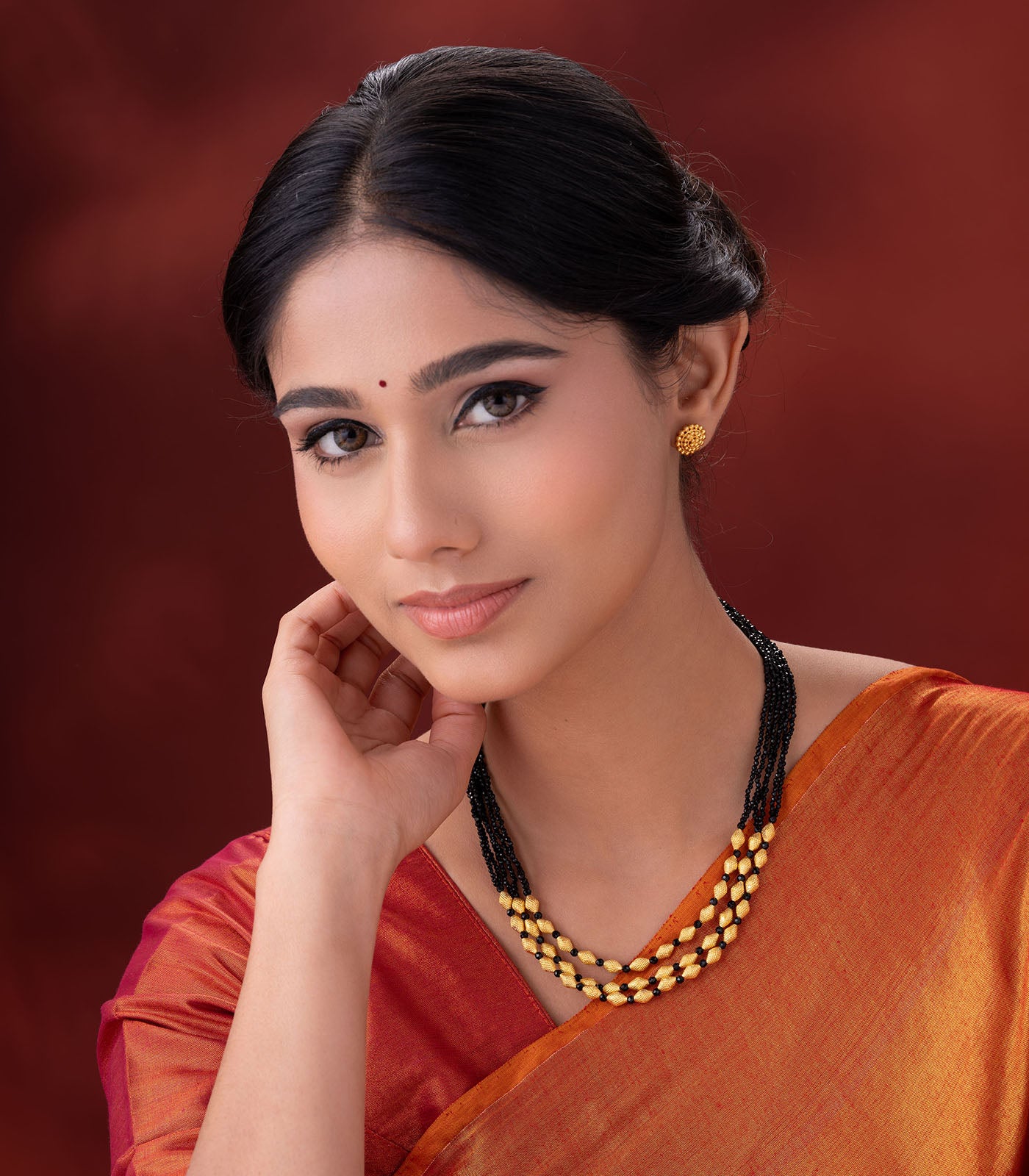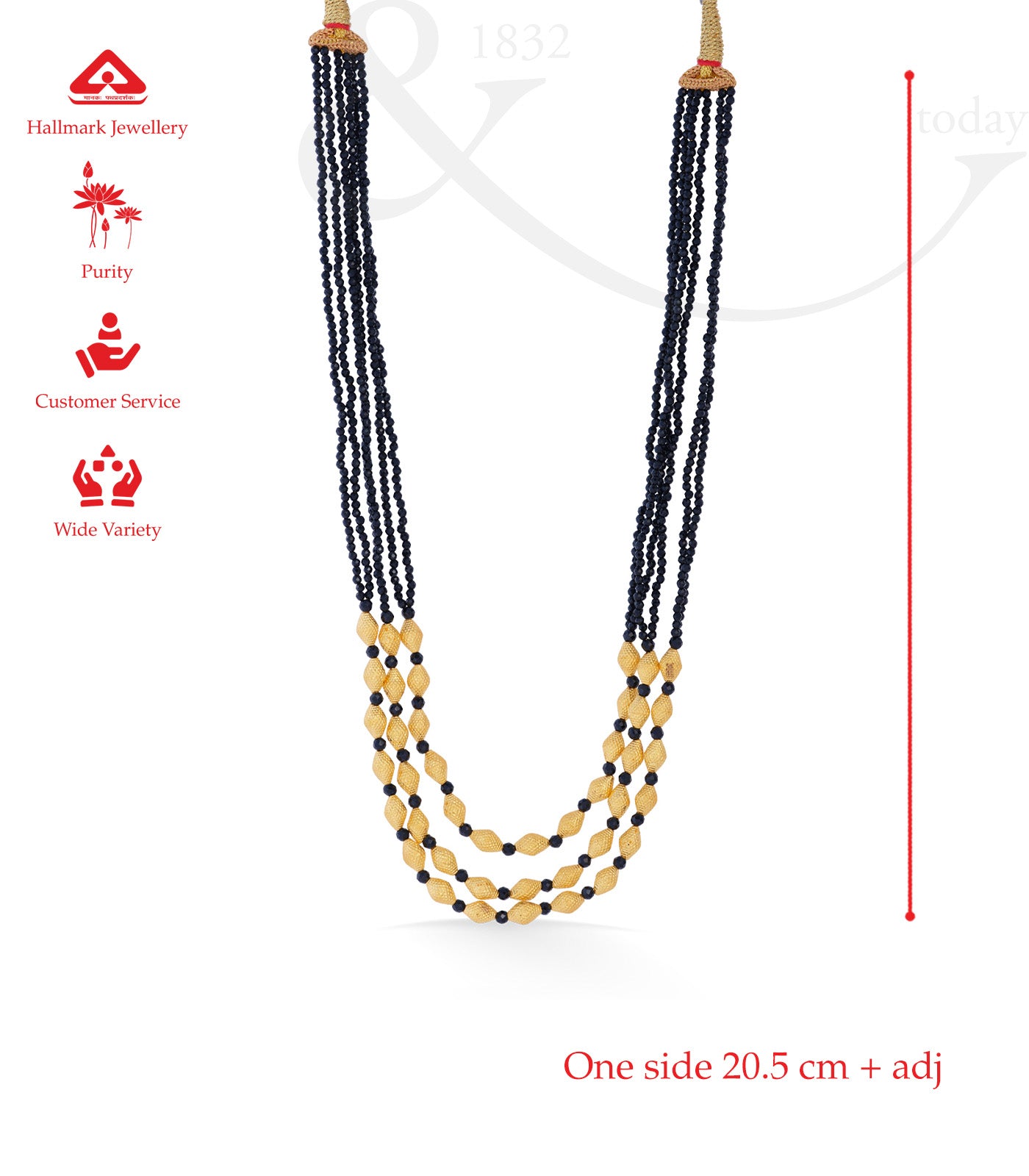 Material: Crafted in pure 22KT hallmarked gold, intricately strung with triple layers of traditional black beads.