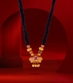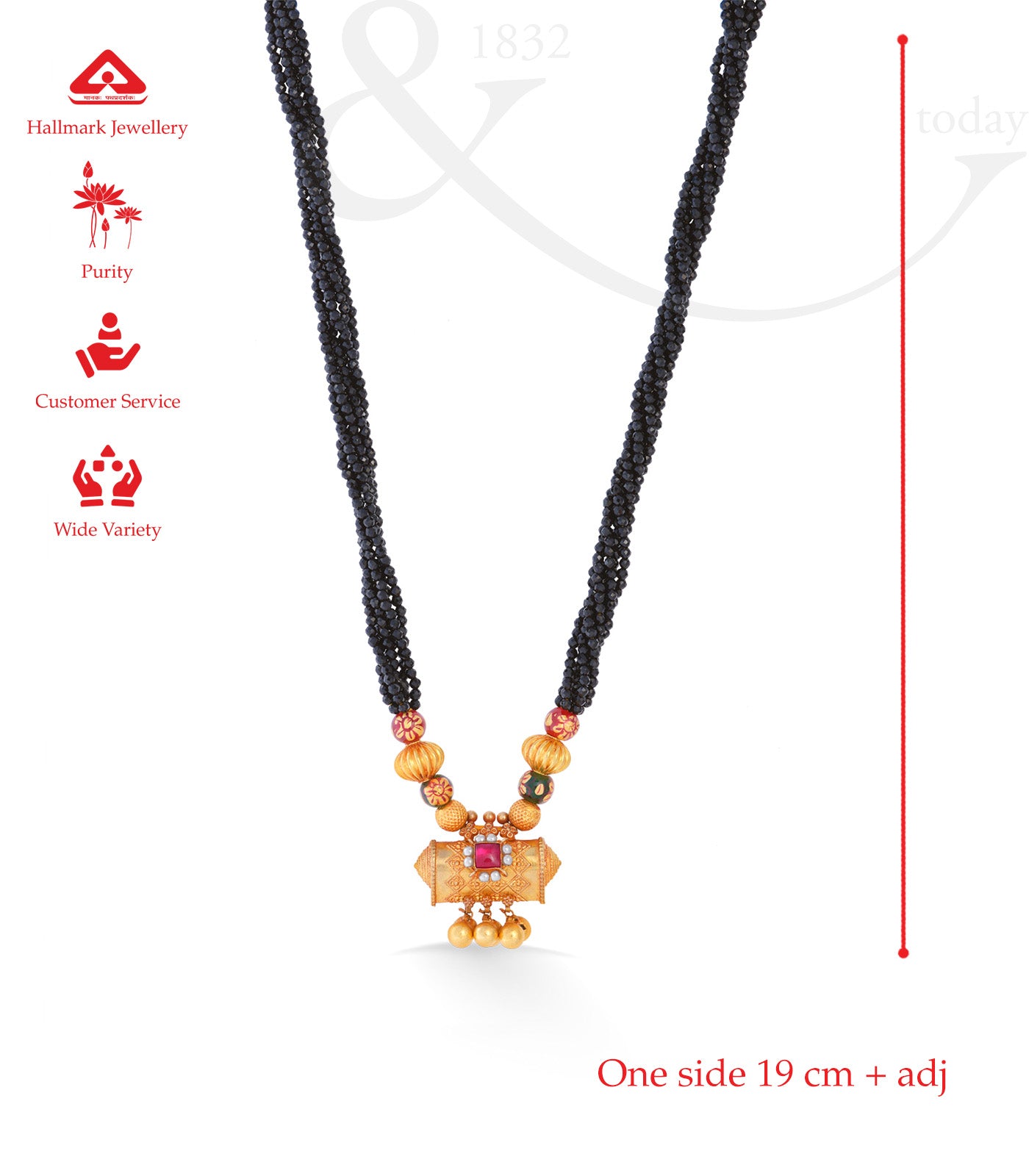 Material: Crafted in pure 22K hallmarked gold, featuring striking black beads paired with a bold, intricately designed gold pendant.
