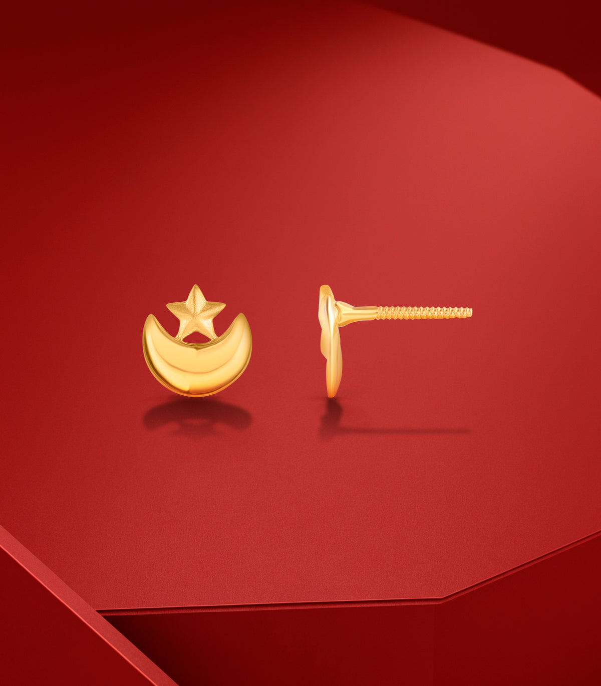 he Celestial Charm Tops capture the dreamy allure of the night sky. Crafted in radiant gold, the delicate crescent moon cradling a tiny star evokes a sense of wonder and serenity — a design that’s both playful and poetic.
