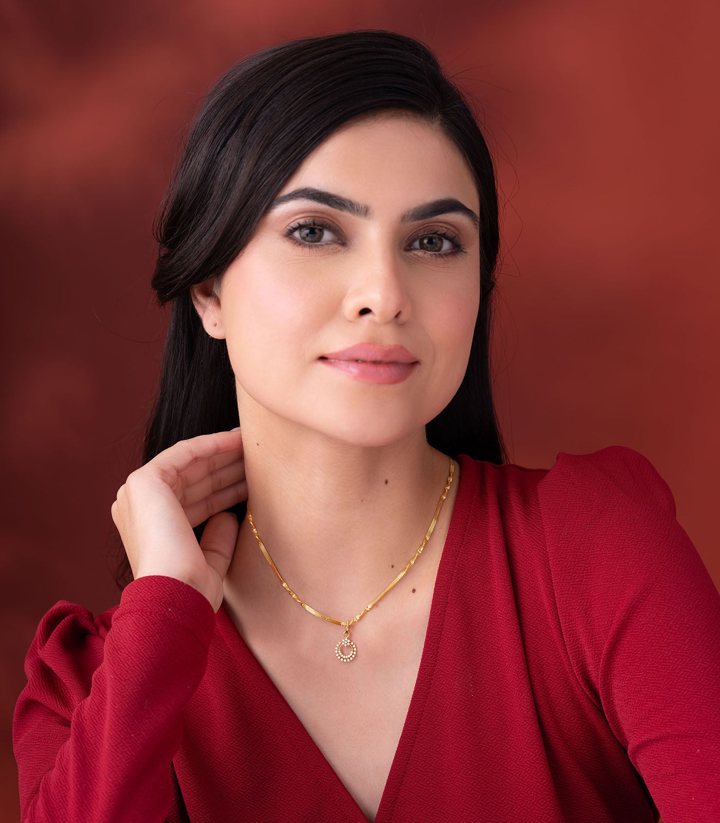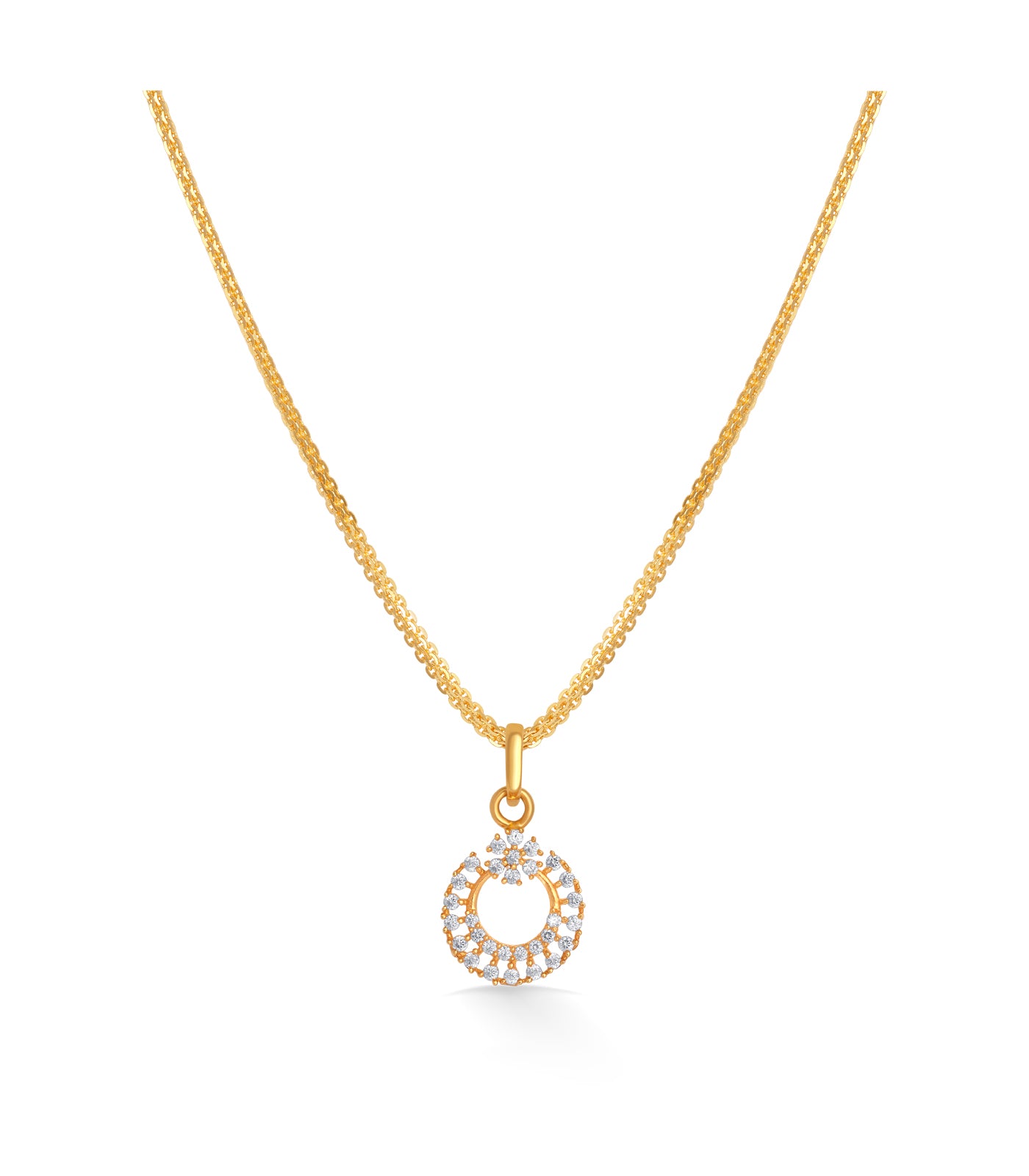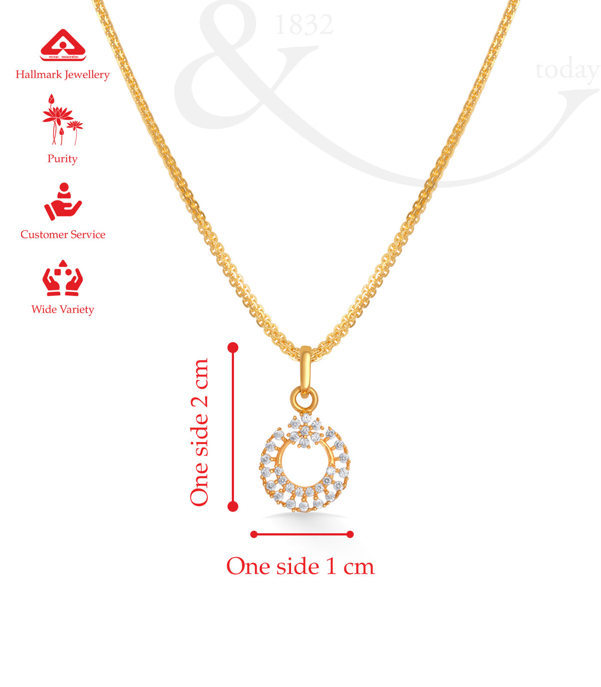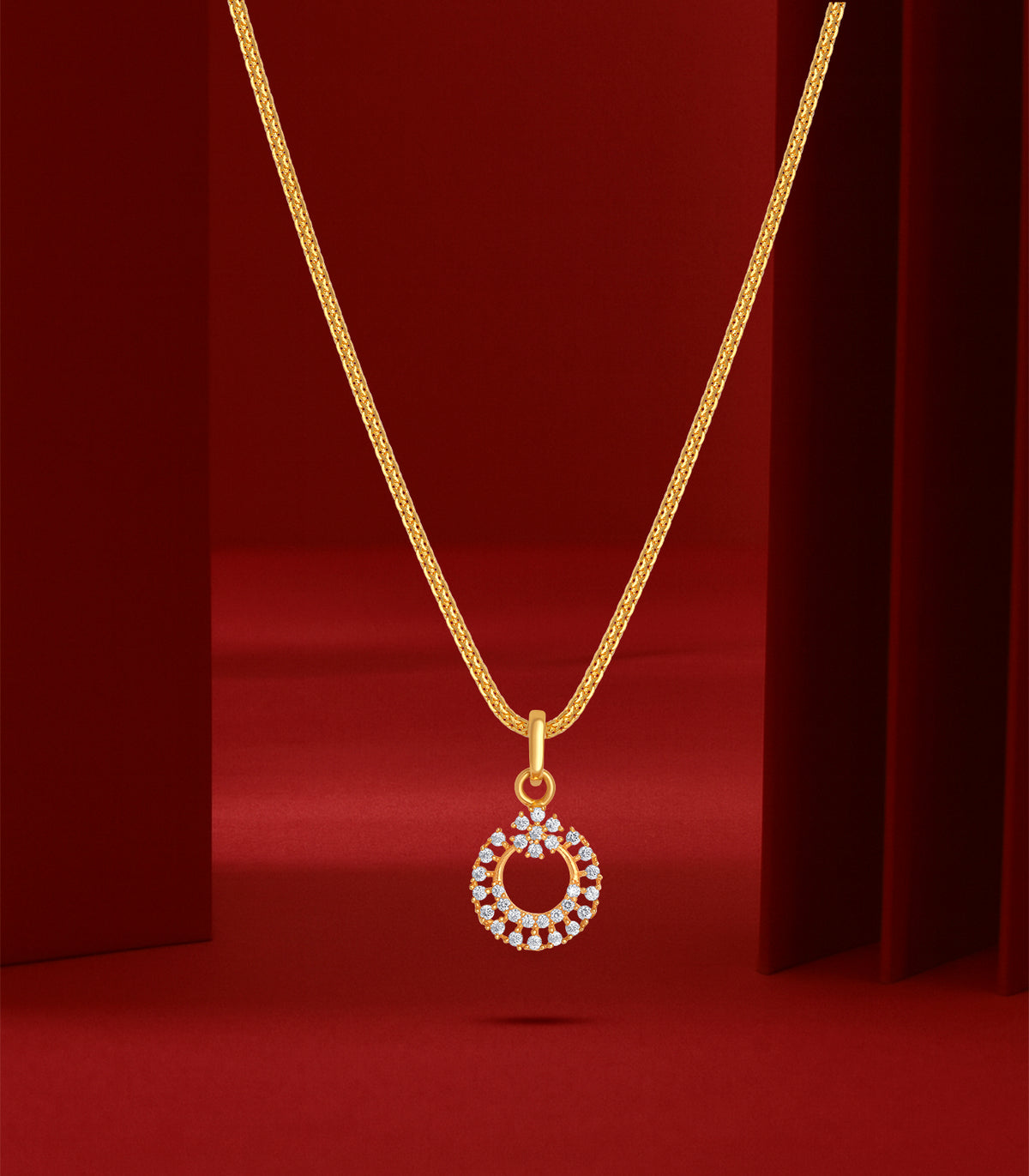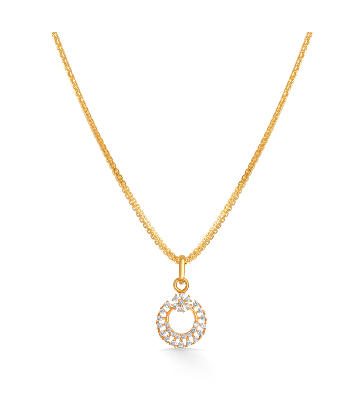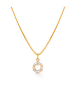 The Aarohi Gold Pendant by P.N. Gadgil & Sons is a graceful expression of rising elegance. Crafted in 22KT yellow gold, this pendant features a delicately designed circular motif, adorned with sparkling accents that shine like stars in harmony. Inspired by the word Aarohi, meaning ascent or rise, this design symbolizes growth, beauty, and timeless charm