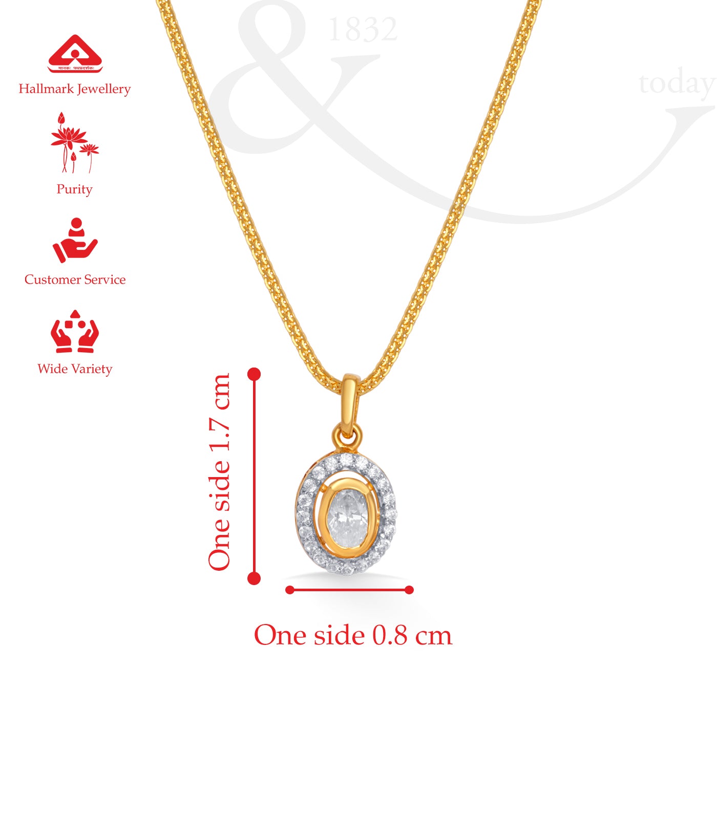 - Design: Oval-shaped pendant with central gemstone and halo setting