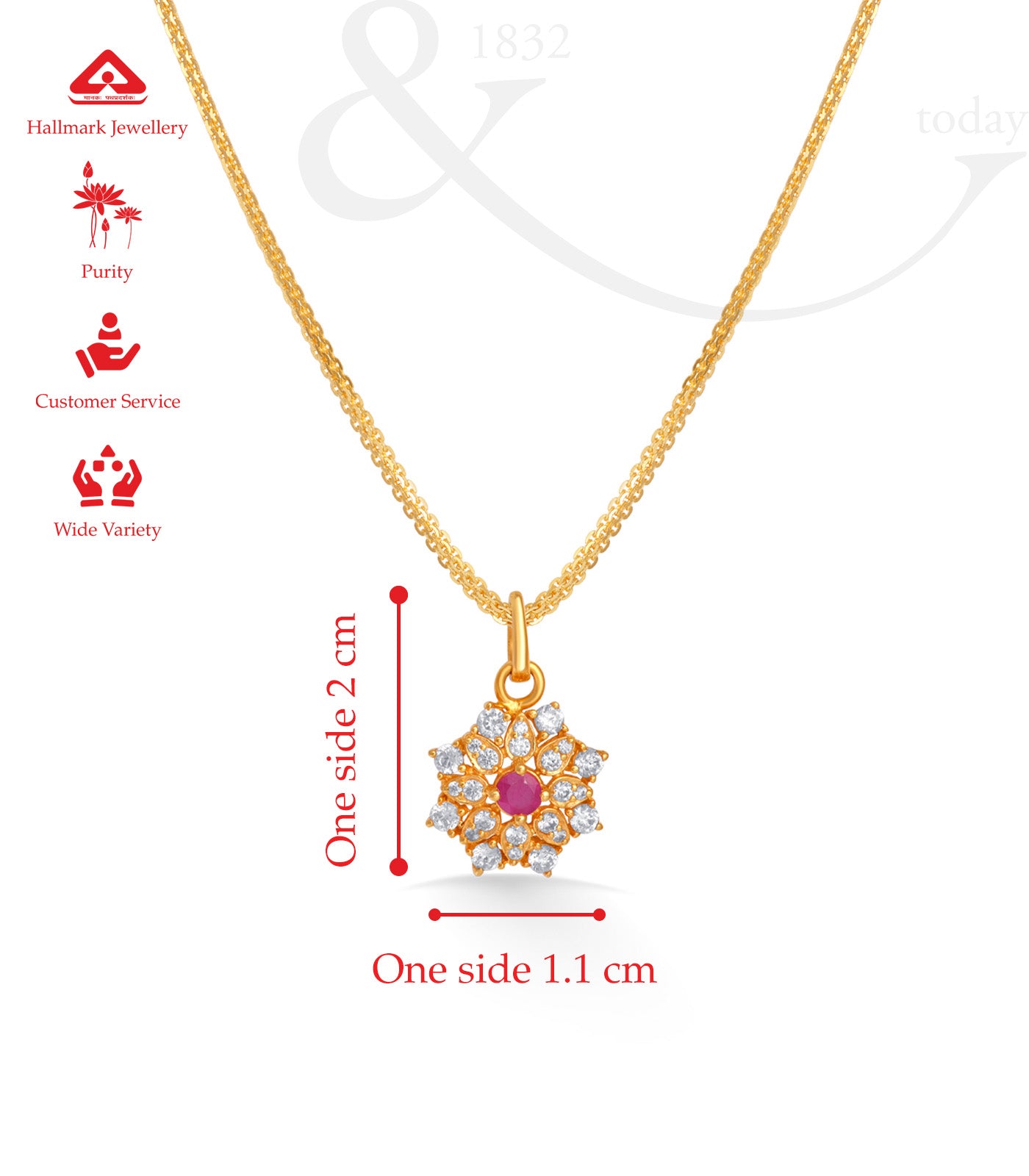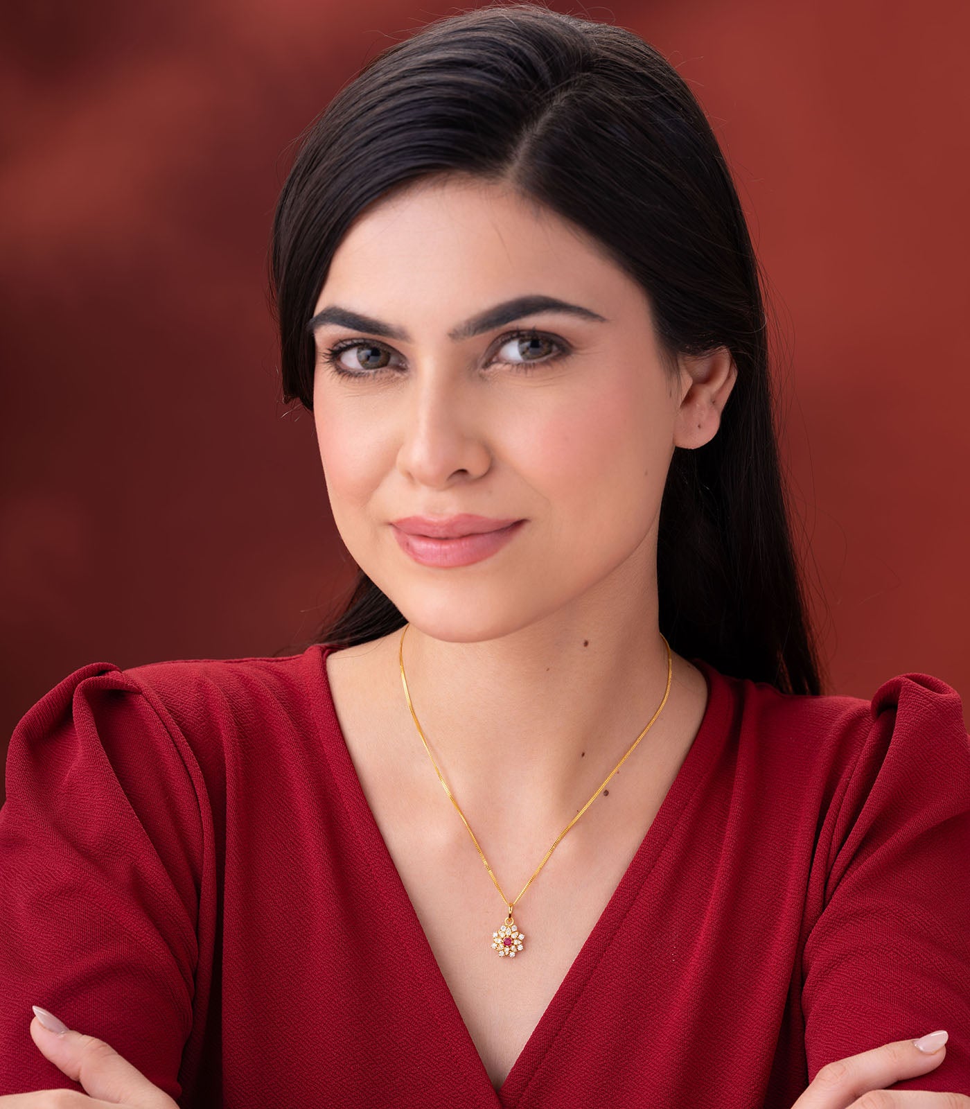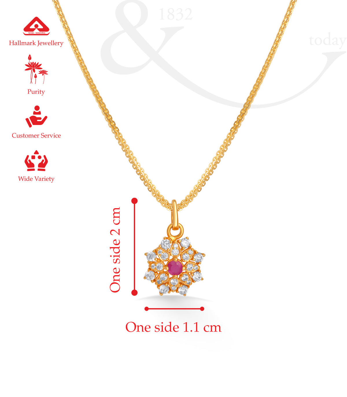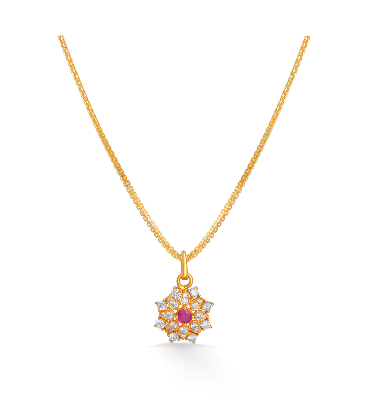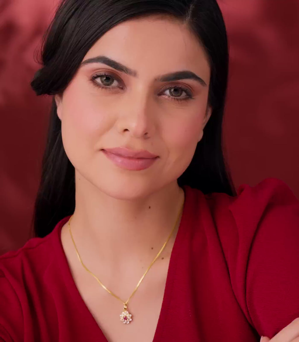 - Design: Floral-inspired pendant with central ruby and surrounding sparkling accents