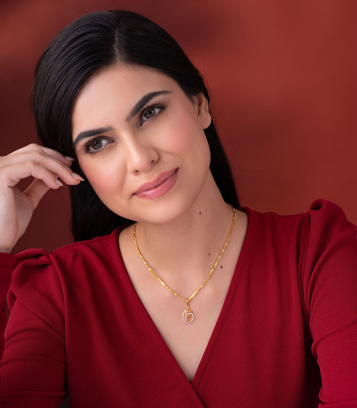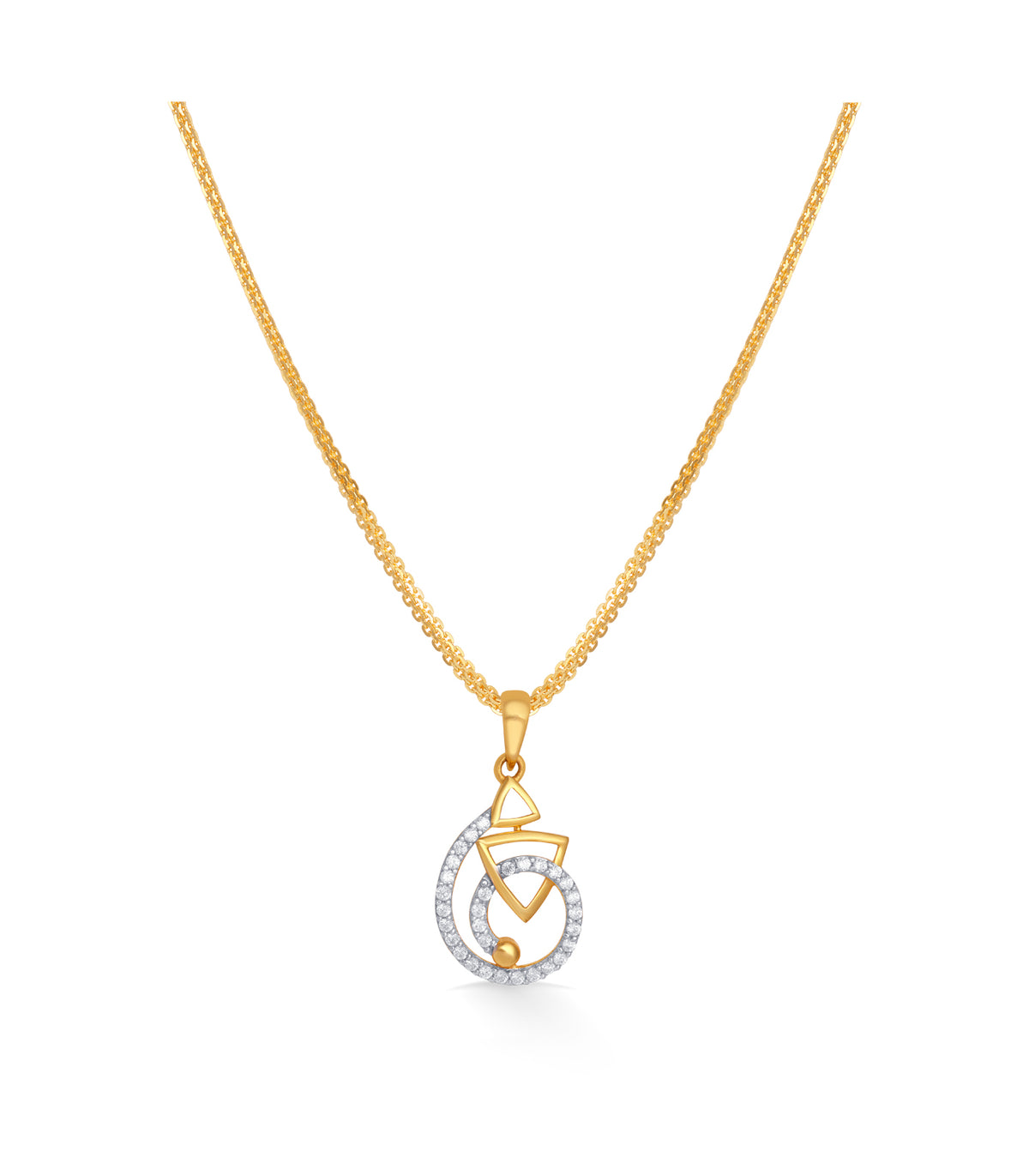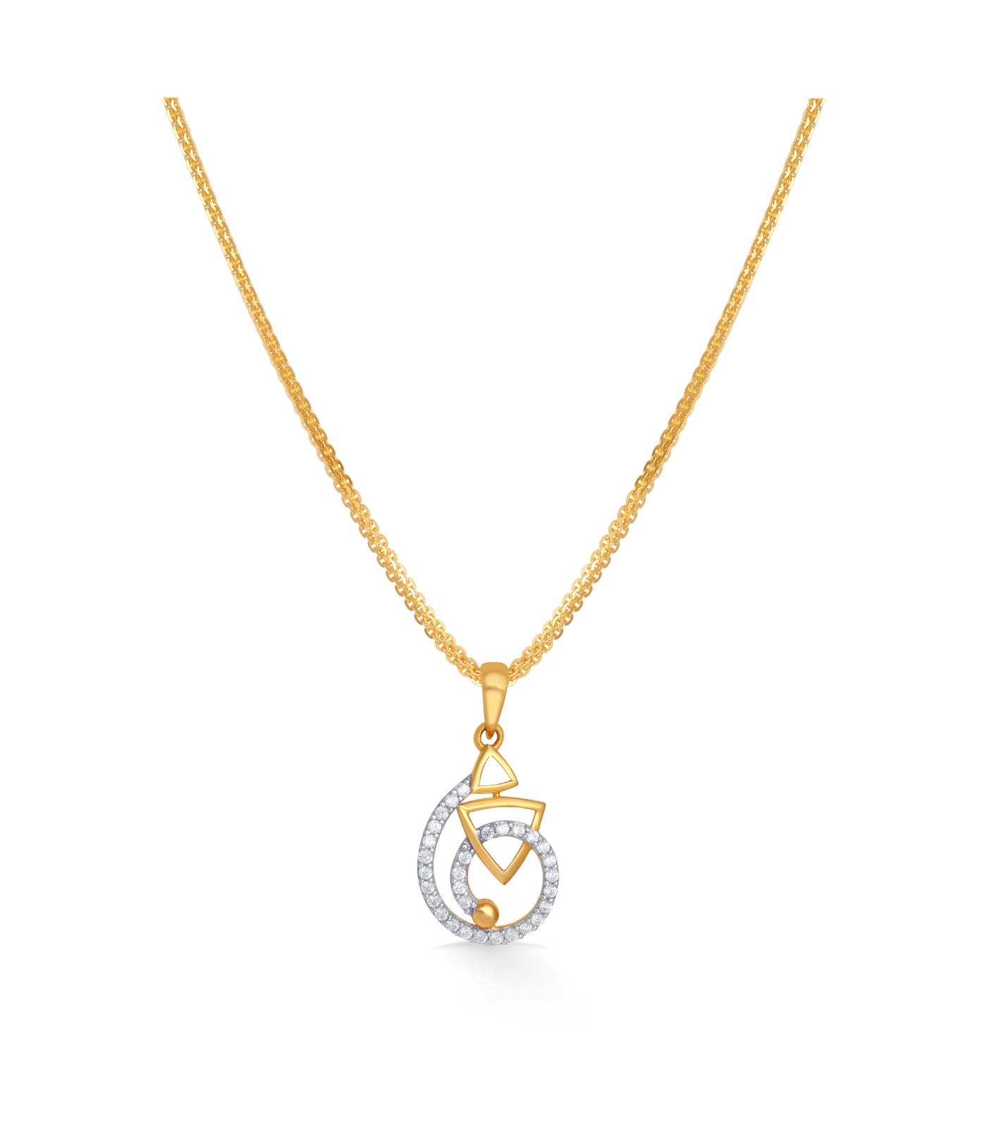 Celebrate modern artistry with the Trinity Symbol Gold Pendant, a striking design that fuses geometry with elegance. Crafted in 22KT yellow gold, the pendant features an interplay of circles and triangles, beautifully accentuated with sparkling stones.