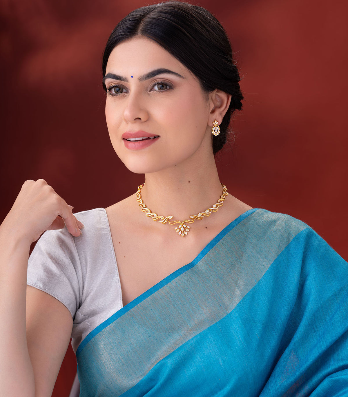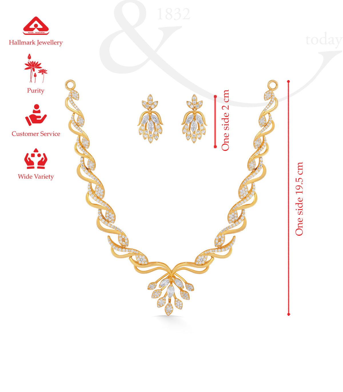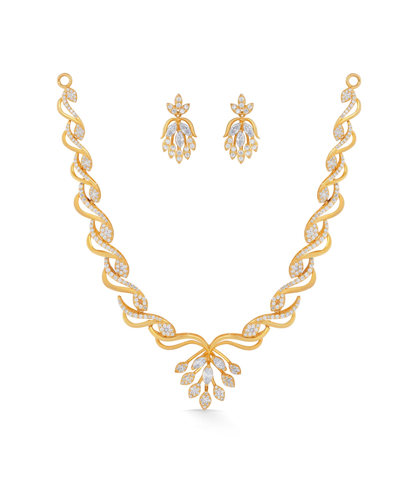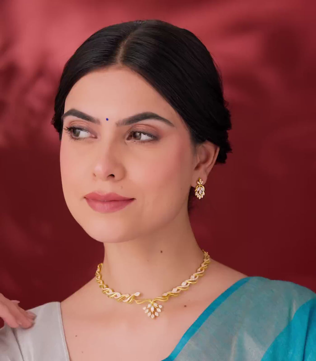 - Design: Floral-inspired necklace set with a graceful twist motif and matching earrings