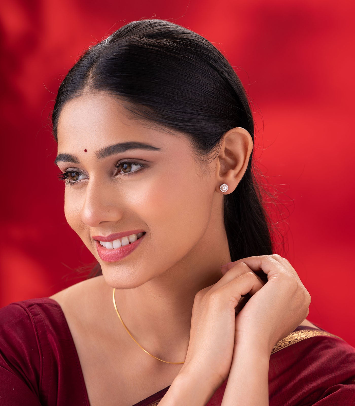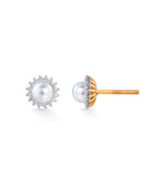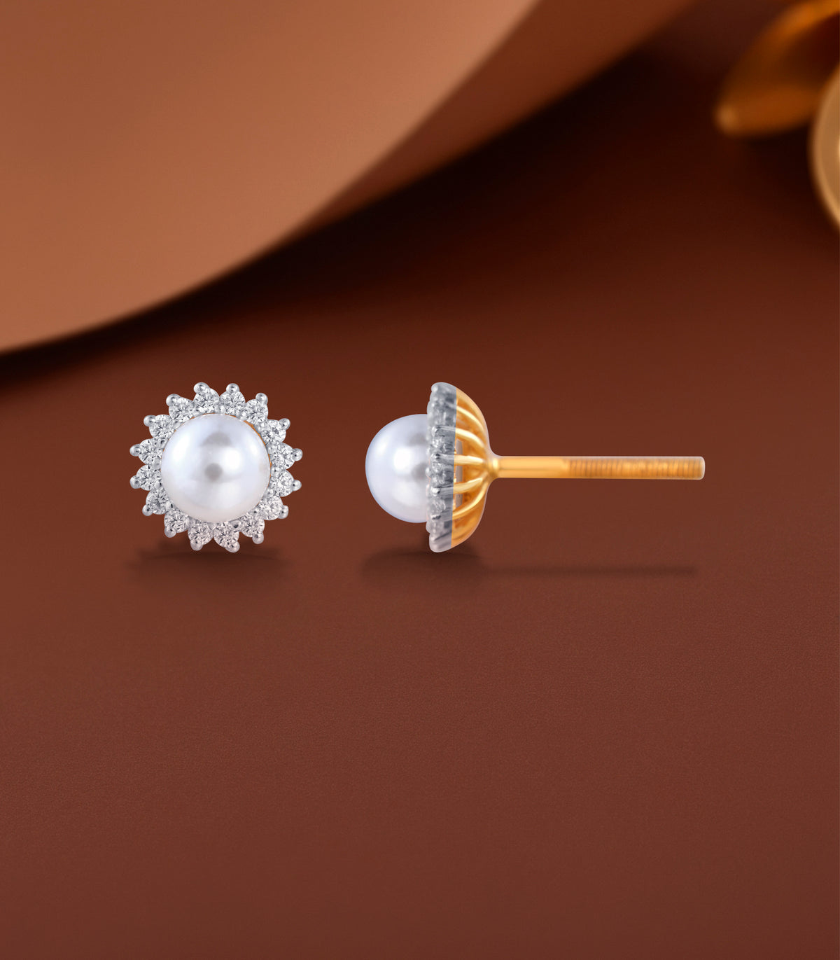 The Celestial Pearl Gold Earrings embody the timeless grace of classic beauty. At the heart of each earring lies a luminous pearl, surrounded by a delicate halo of sparkling stones that mimic the radiance of starlight.