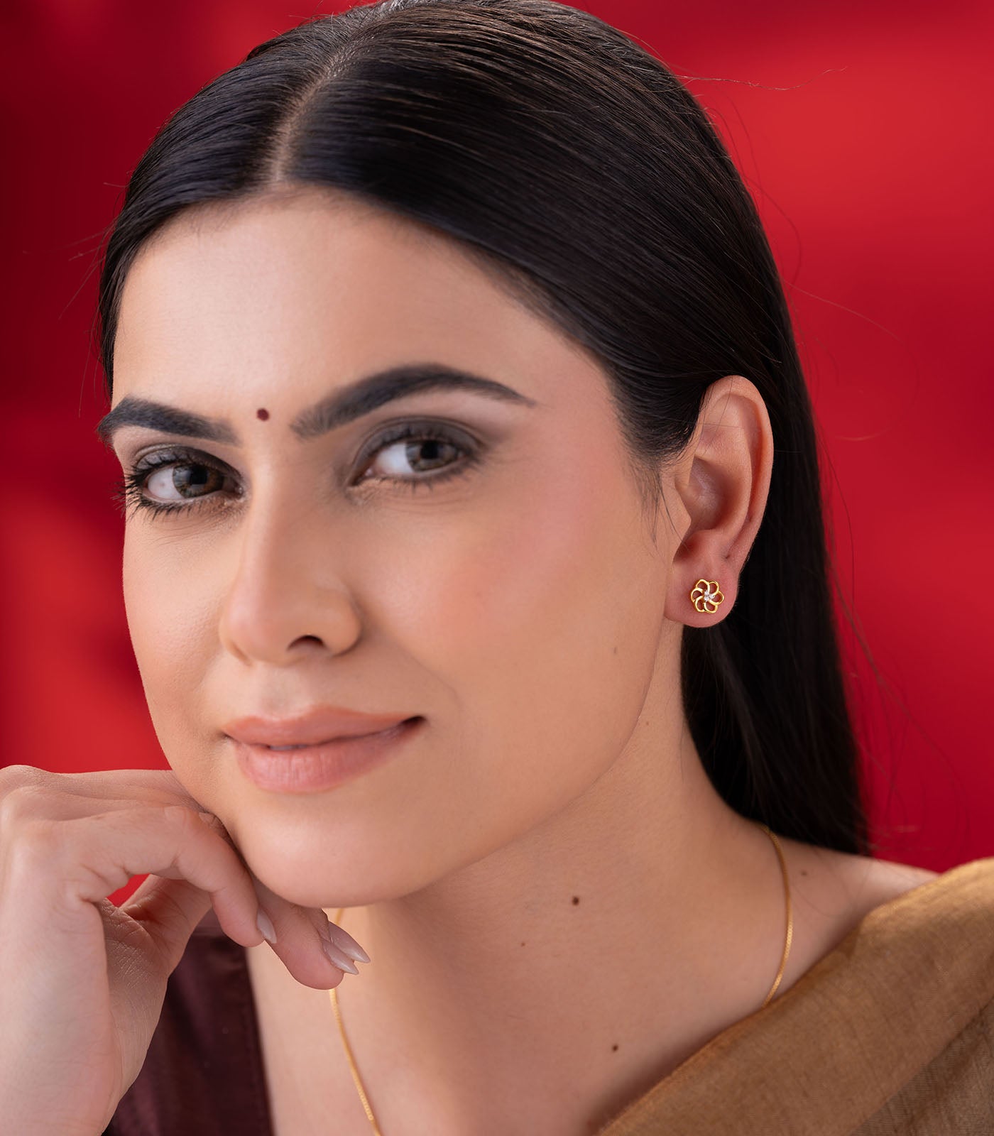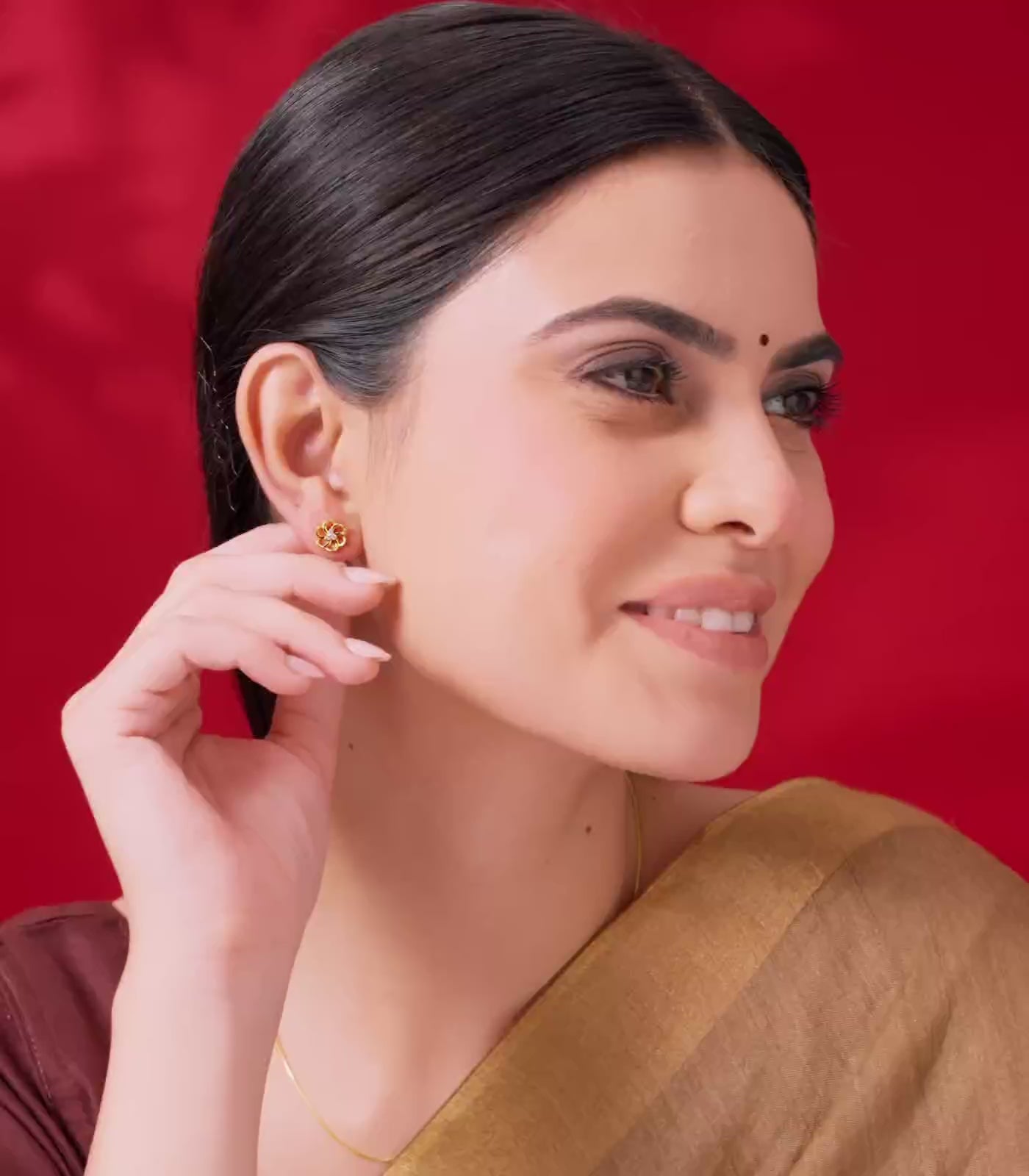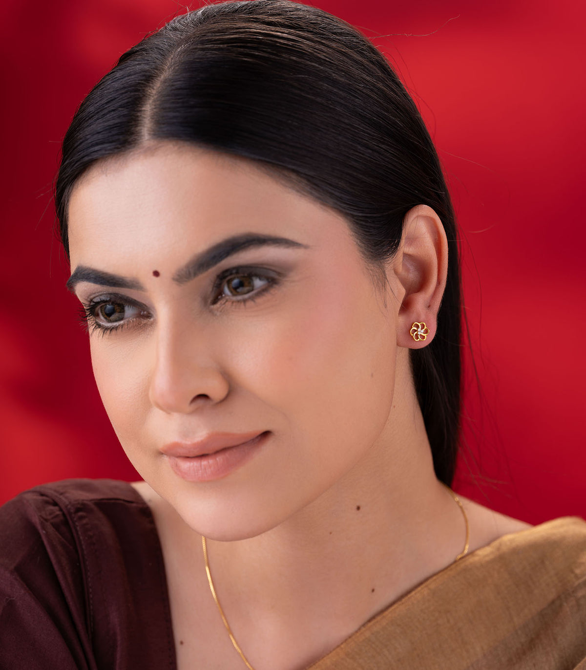 The Petal Loop Gold Earrings bloom with the elegance of simplicity. Crafted in graceful looping petals and adorned with a cluster of shimmering stones at the center, this design embodies feminine charm and timeless beauty.