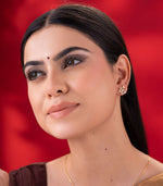 The Petal Radiance Gold Earrings bloom with a charm that’s both timeless and elegant. Inspired by the delicate geometry of a flower, each earring features petal-like shapes adorned with sparkling stones, radiating from a shimmering triangular core.