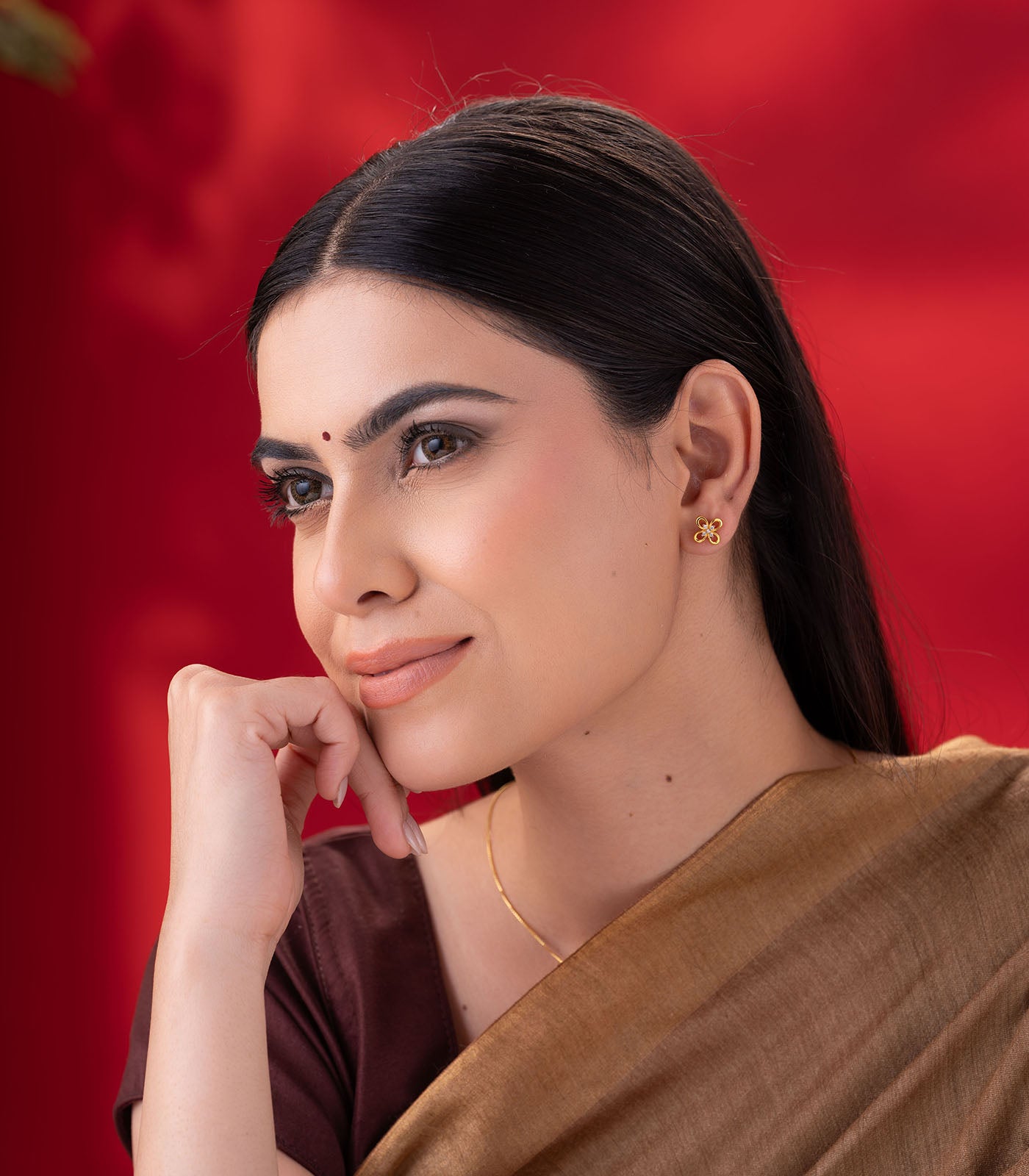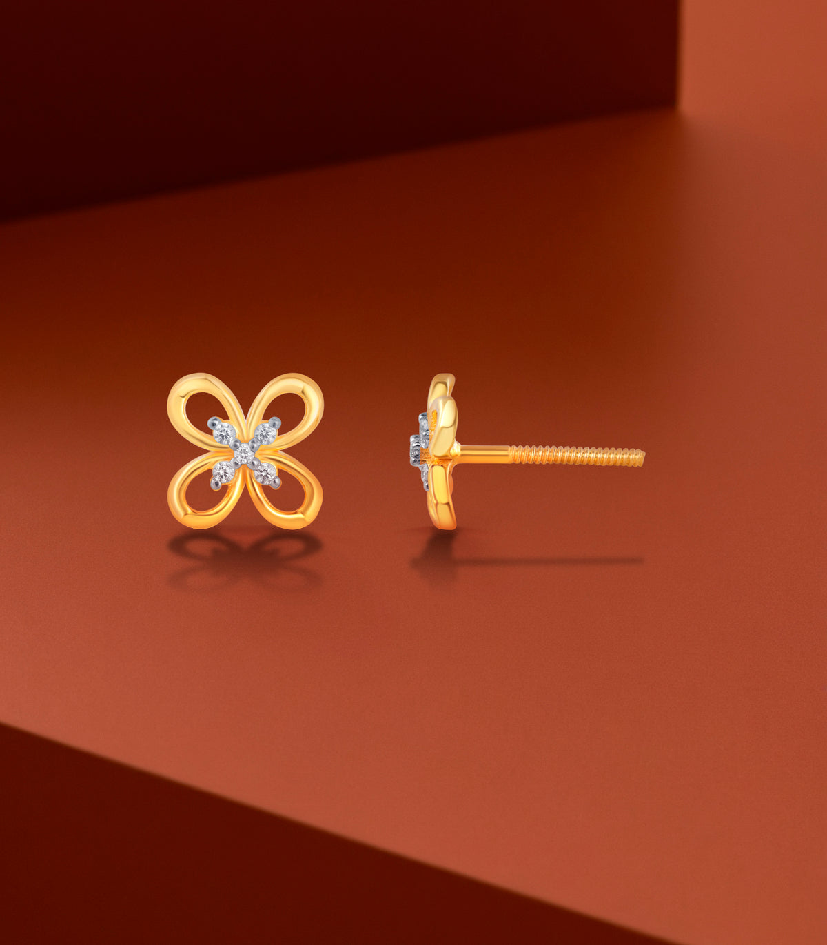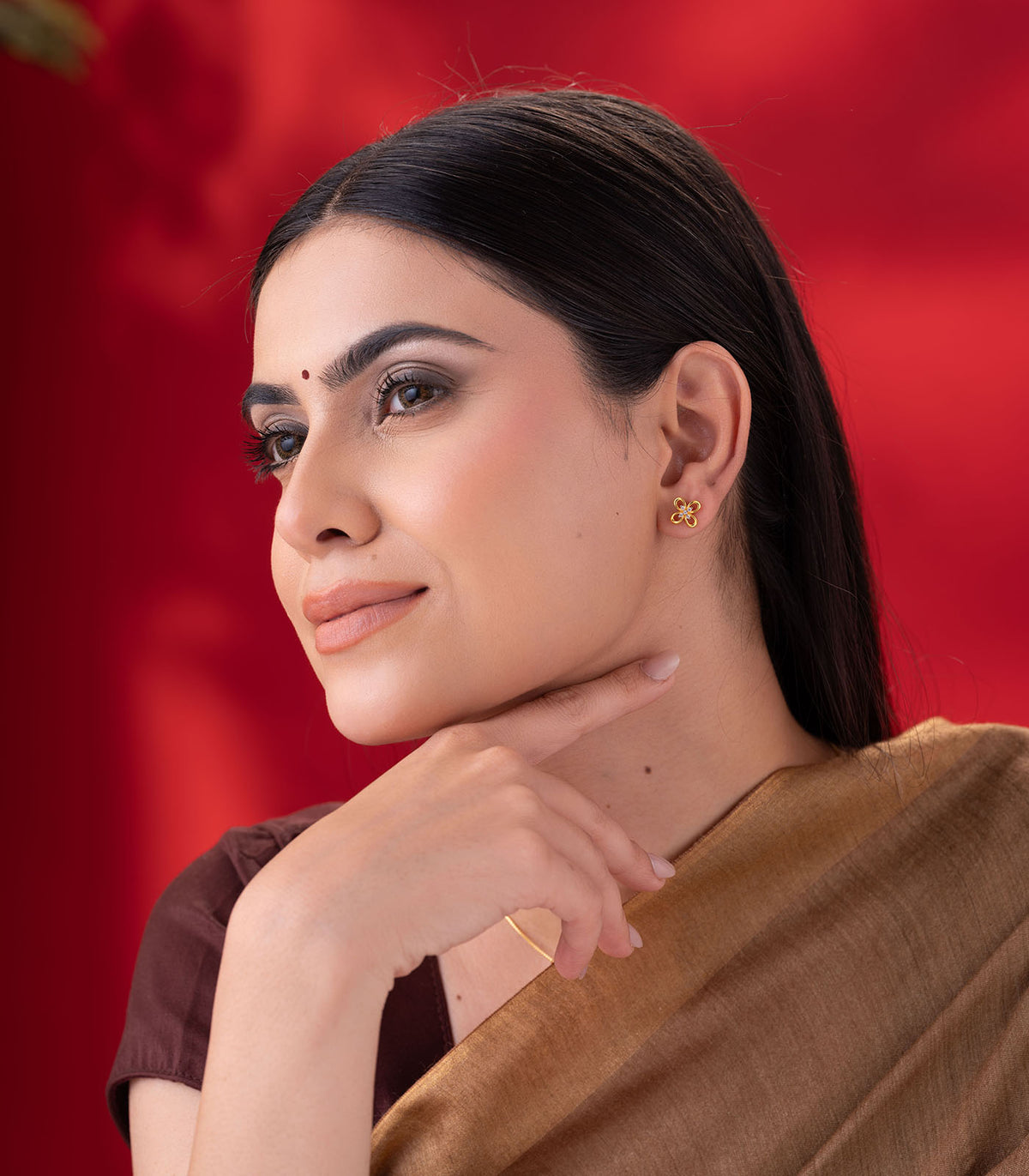 The Flutter Bloom Gold Earrings capture the lightness of a petal in motion. Designed with soft, looping petals and a cluster of fine precious stones at the center, this piece embodies grace in its purest form.