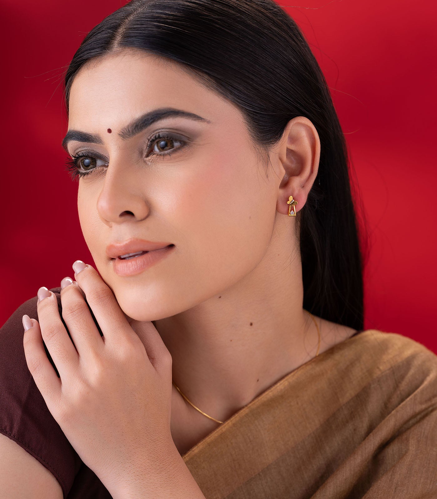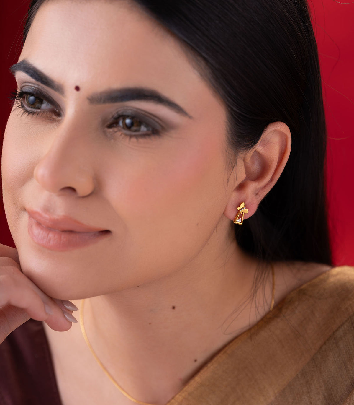 The Flutterbeam Gold Earrings celebrate the charm of carefree elegance. With a dainty butterfly motif poised above a glimmering precious stone drop, this pair captures the joy of lightness and grace in every moment.