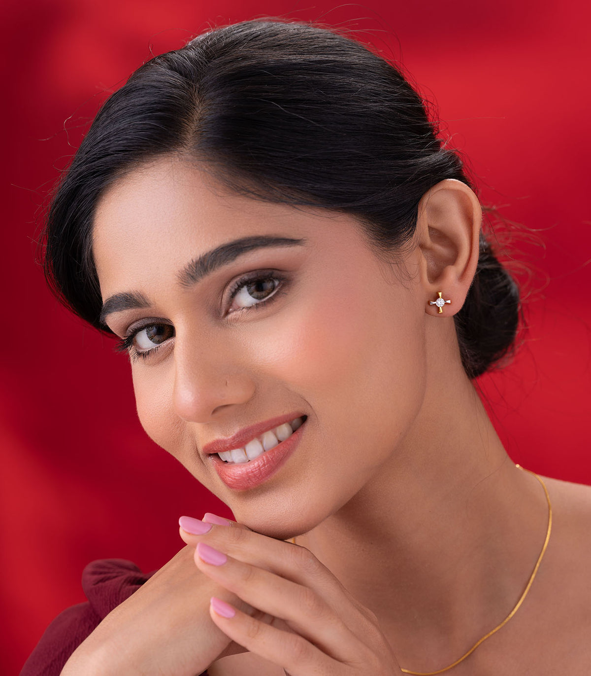The Radiant Cross Gold Earrings redefine minimal elegance with a touch of brilliance. Featuring a sleek cross-frame that holds a luminous precious stone at its heart, this design symbolizes balance, clarity, and modern grace.