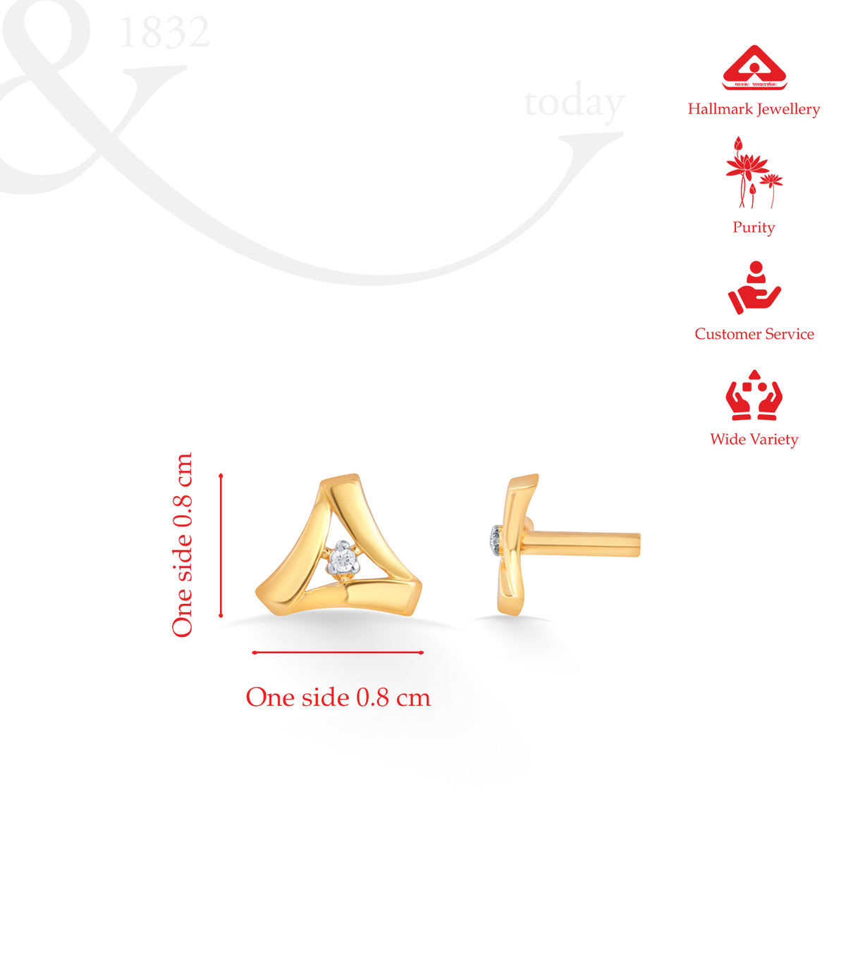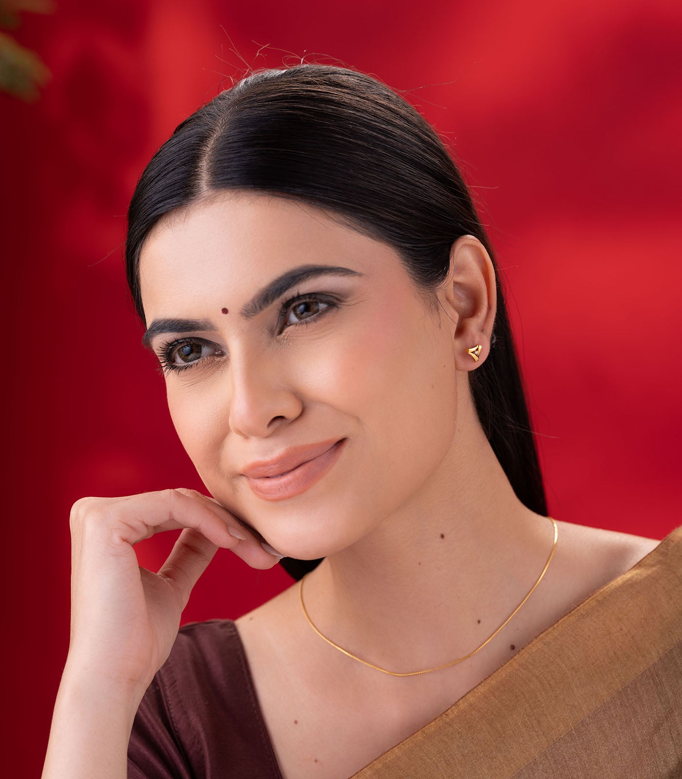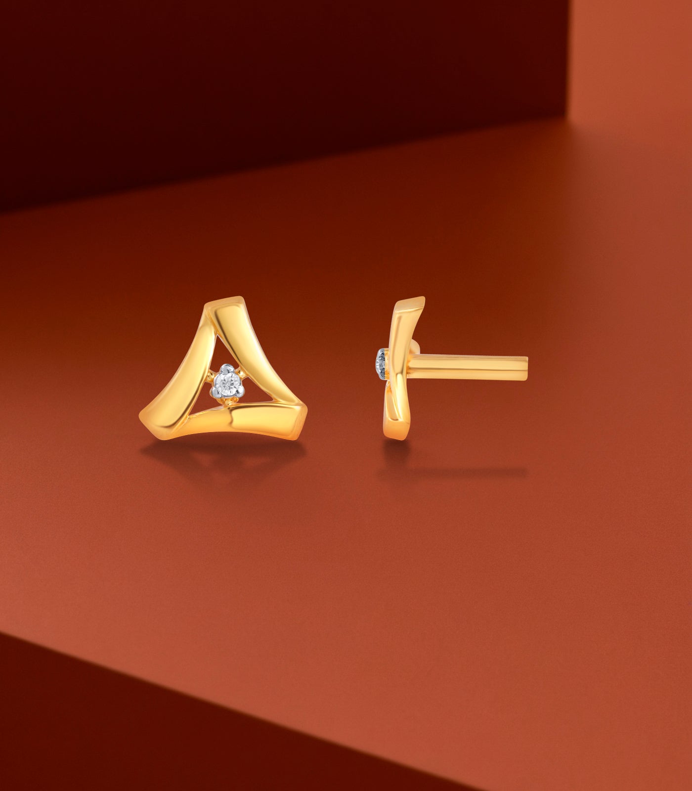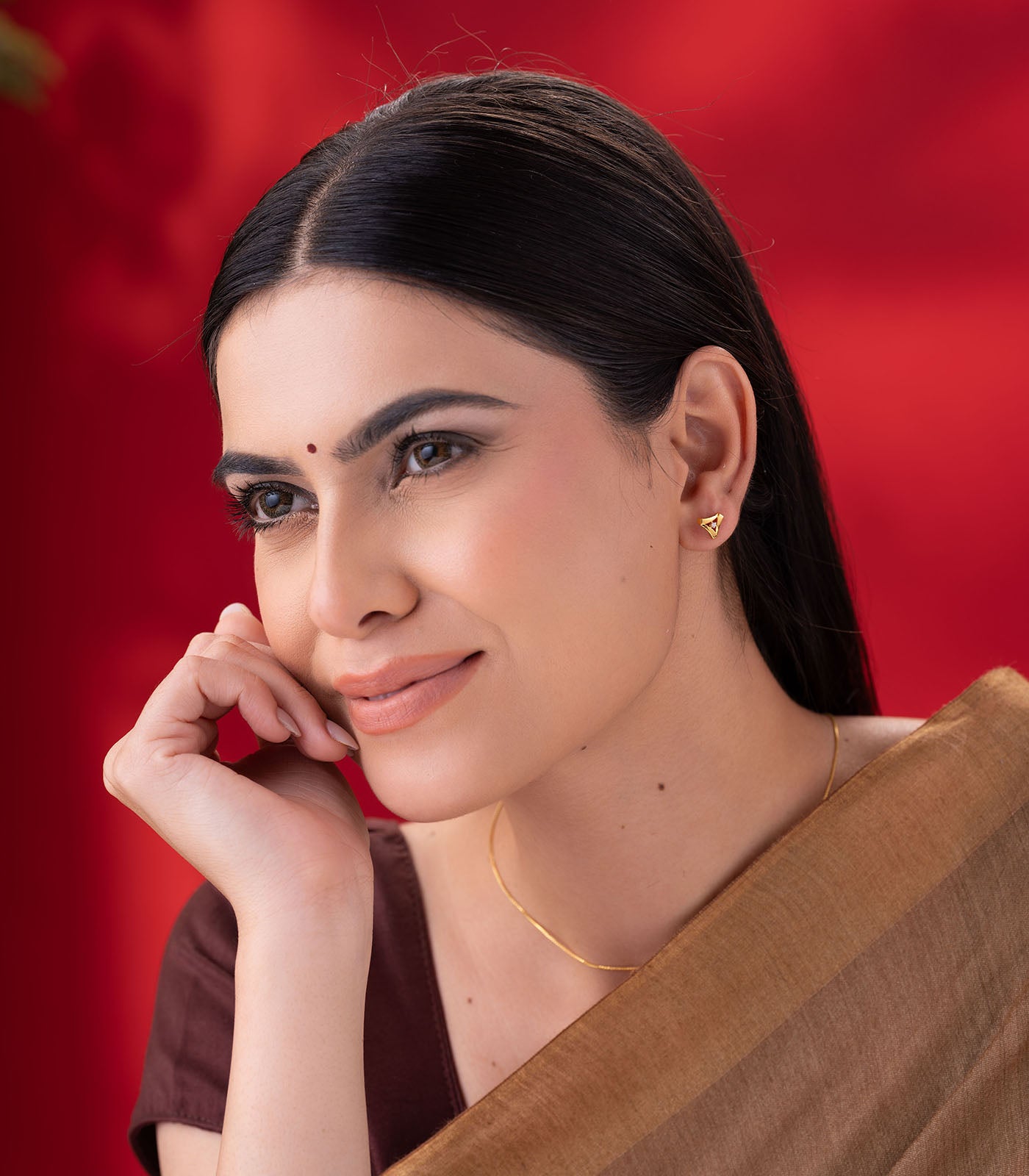 The Trine Glow Gold Earrings celebrate the power of simplicity through form and balance. Crafted in a soft triangular silhouette, each earring holds a single radiant precious stone at its core — symbolizing harmony and focus.