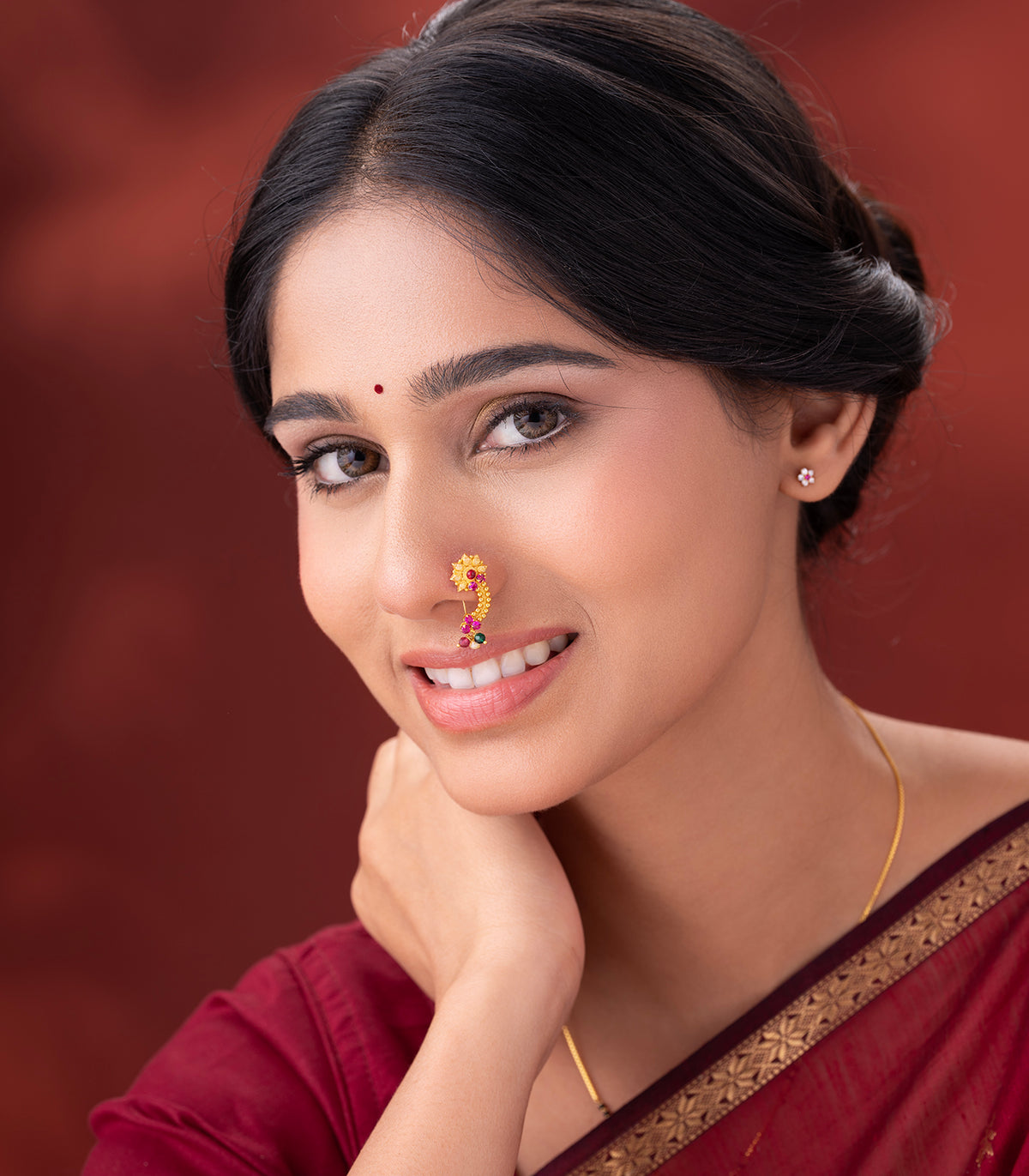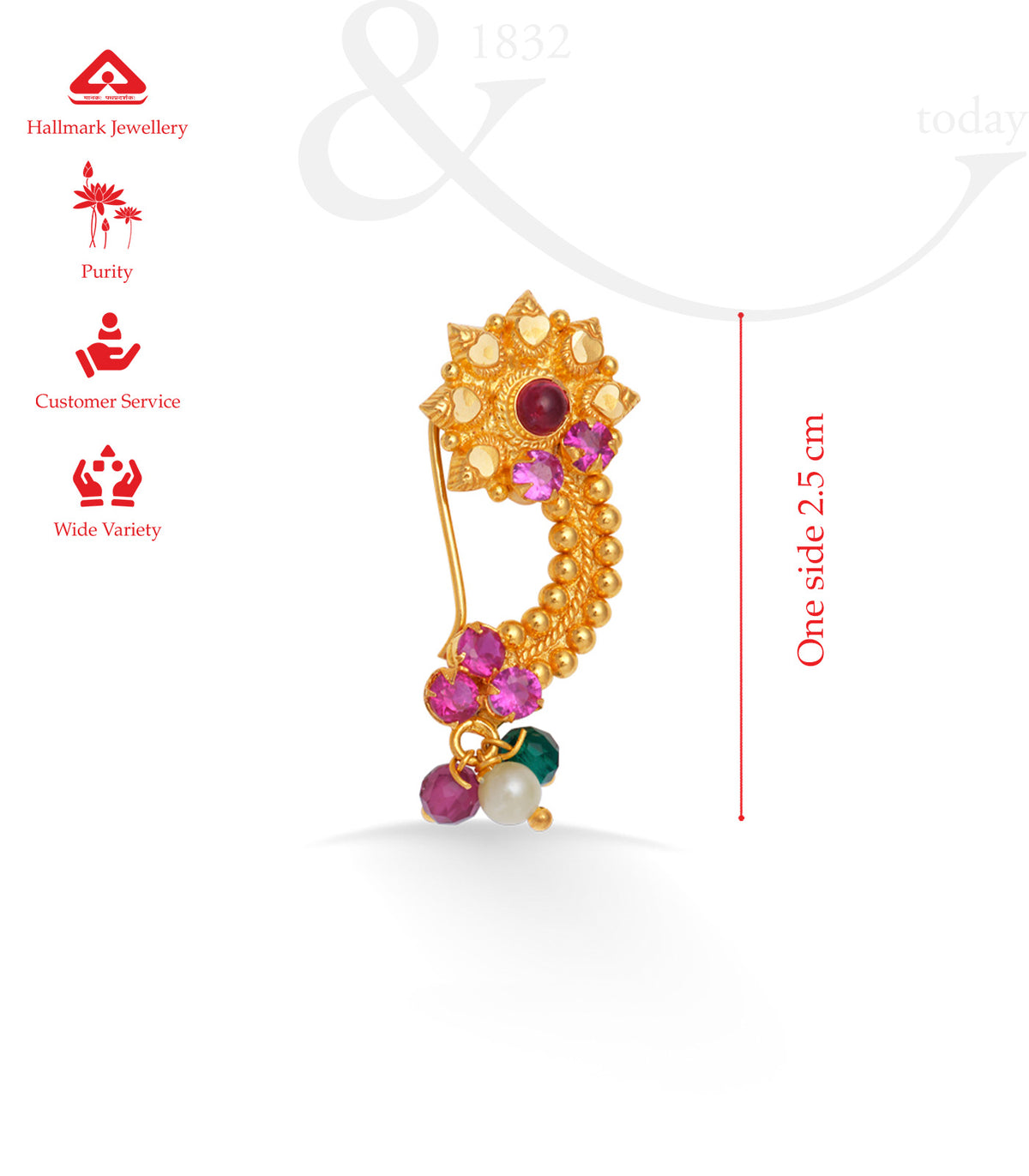 - Design: Traditional Maharashtrian Nath with intricate detailing