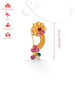 Celebrate tradition with the Classic Blossom Gold Nath (Pierced) by P.N. Gadgil & Sons — a masterpiece that embodies grace, culture, and timeless beauty. Intricately handcrafted, this iconic nose ornament reflects the rich Maharashtrian heritage and is adorned with delicate detailing, making it a perfect choice for weddings, festive occasions, and cultural celebrations.
