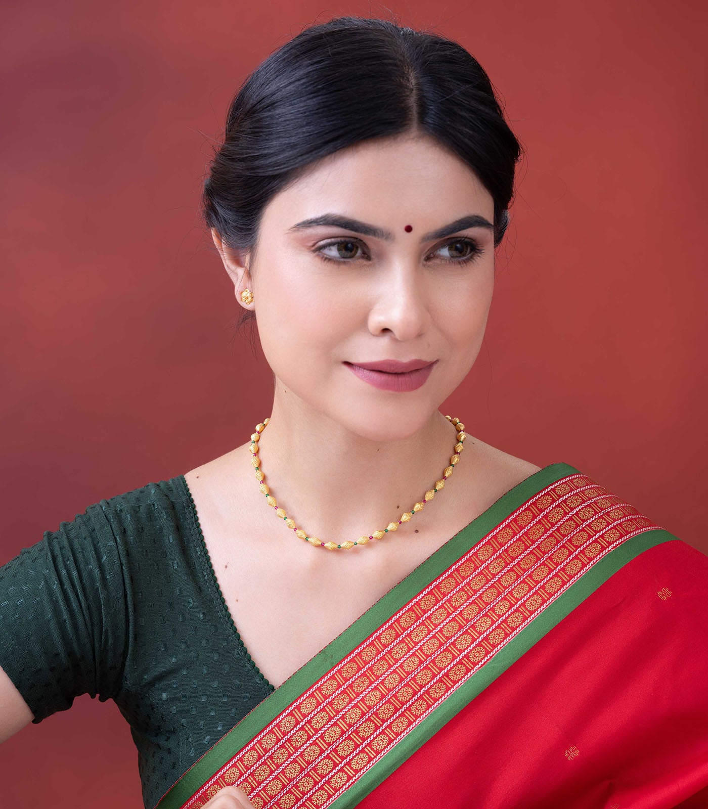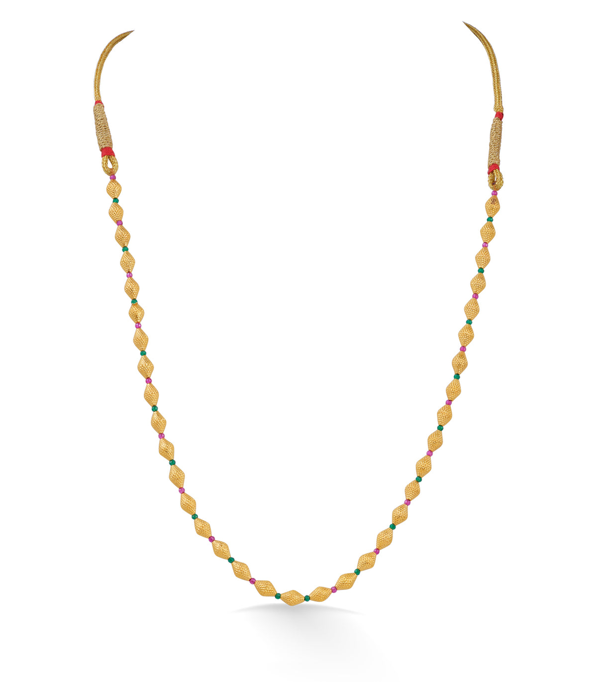 Design: A single-layered gold necklace featuring bold conical beads, showcasing simplicity with a touch of timeless tradition.