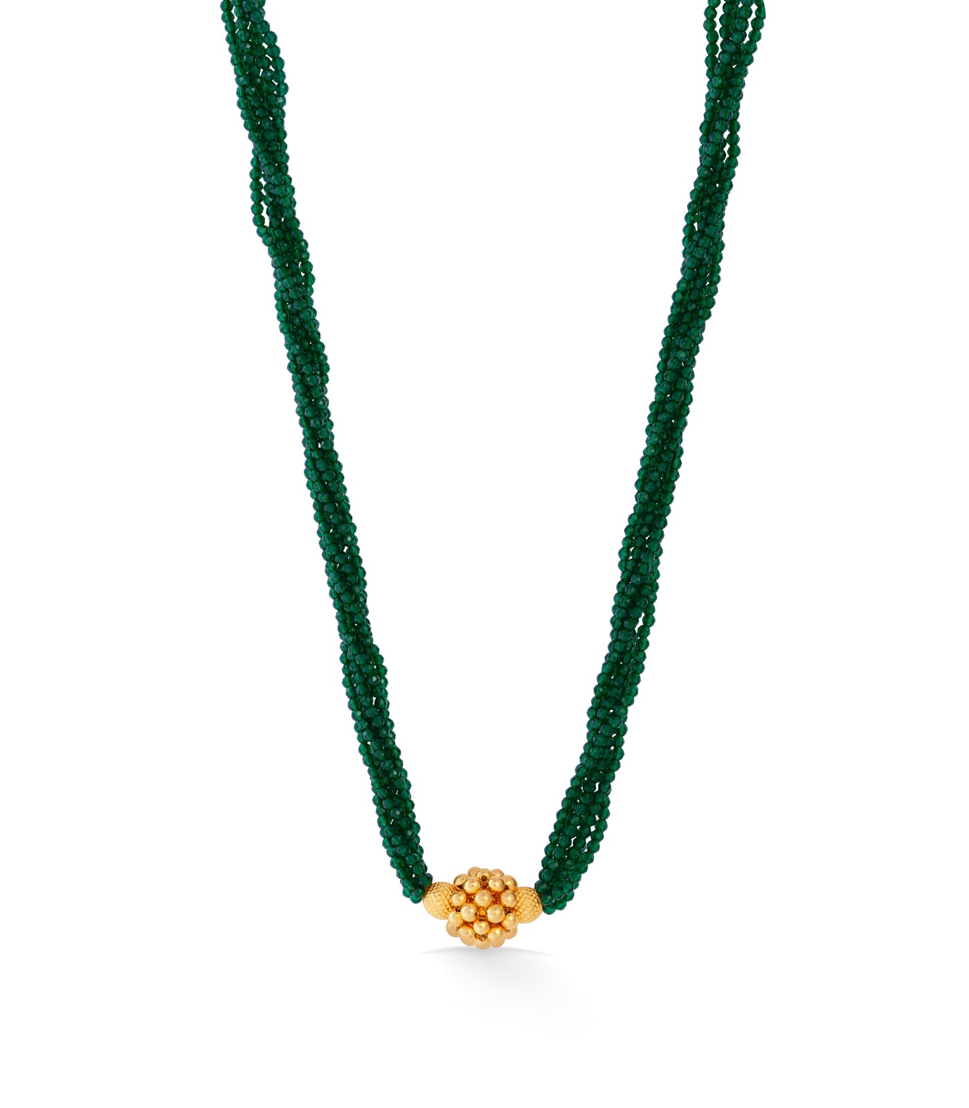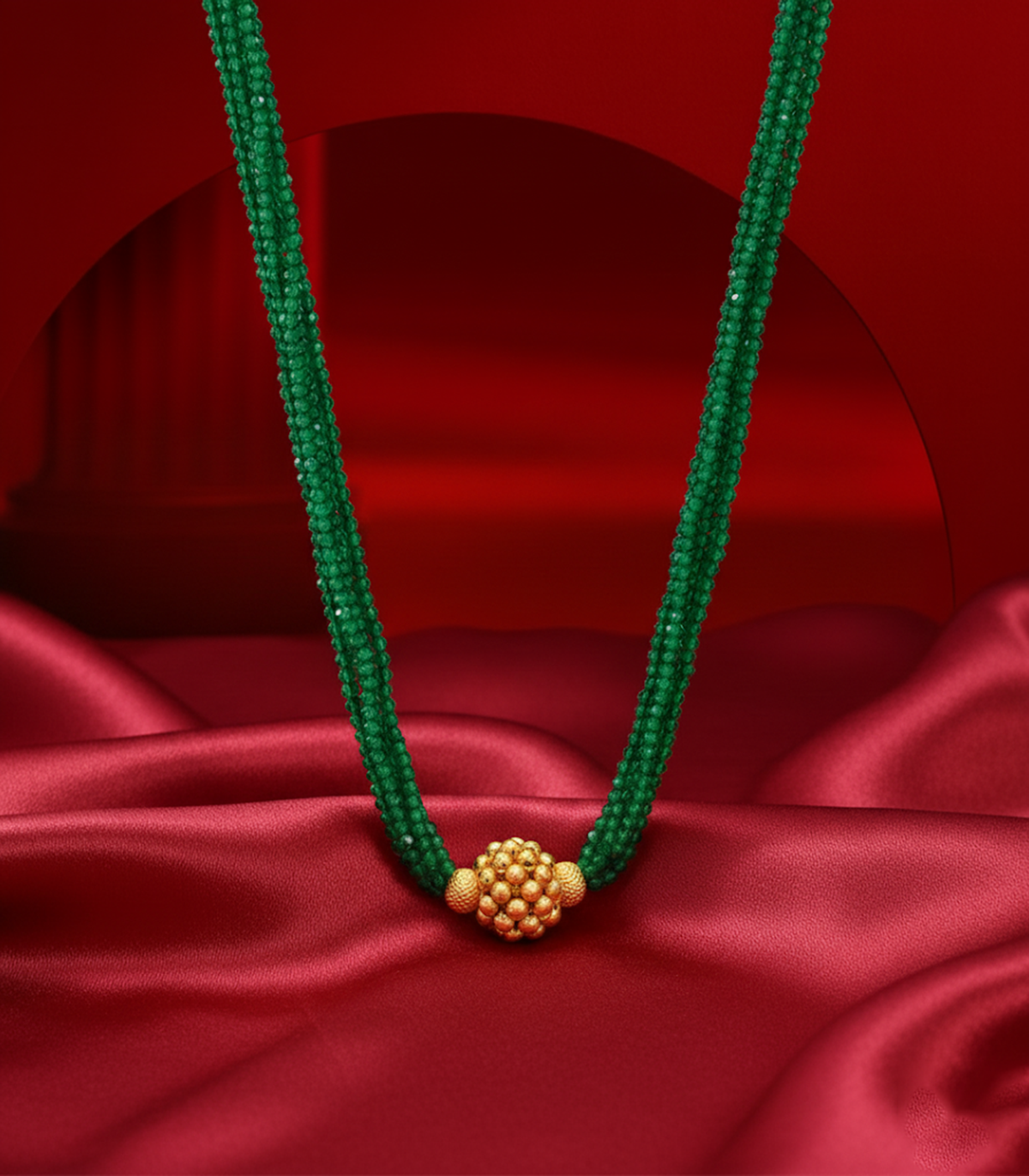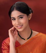 Design: The lively green beads beautifully complement the gleaming gold pendant, creating a necklace that balances traditional charm with contemporary elegance.