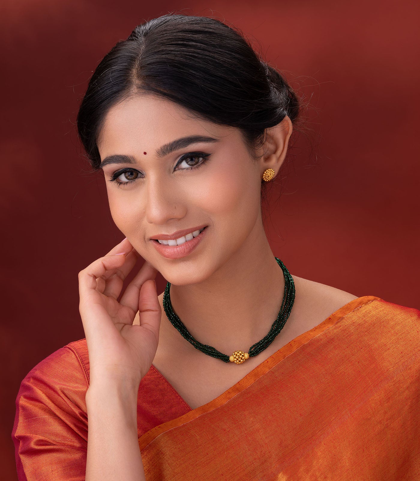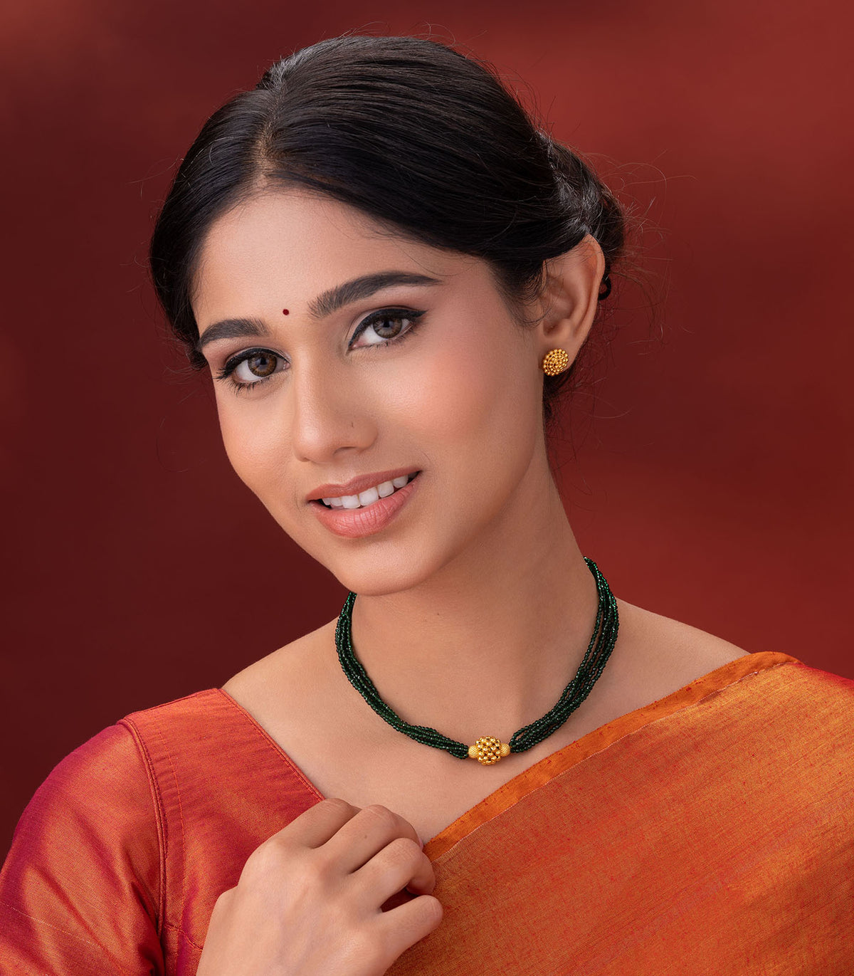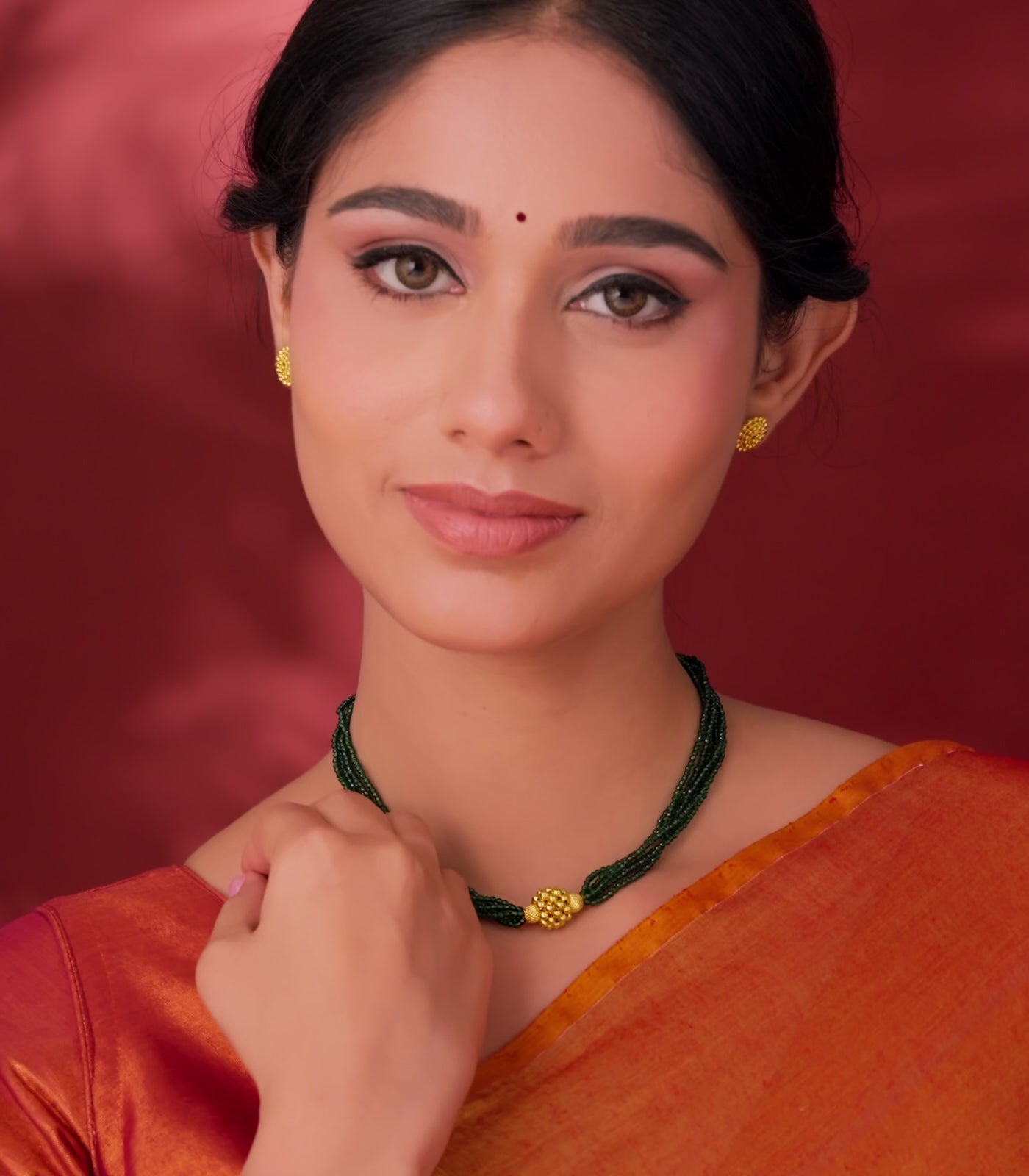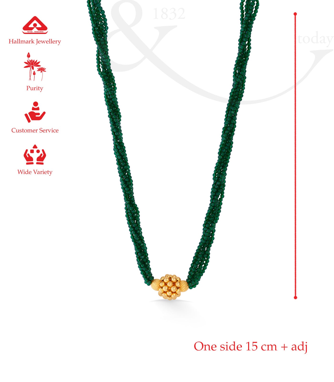 Material: Crafted in pure 22K hallmarked gold, featuring vibrant green beads paired with a radiant gold pendant.