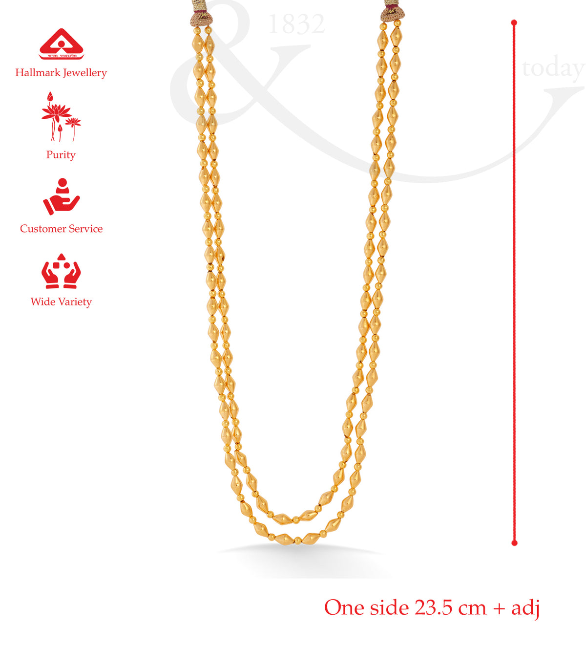 Material: Designed in pure 22K hallmarked gold with delicately strung beads.