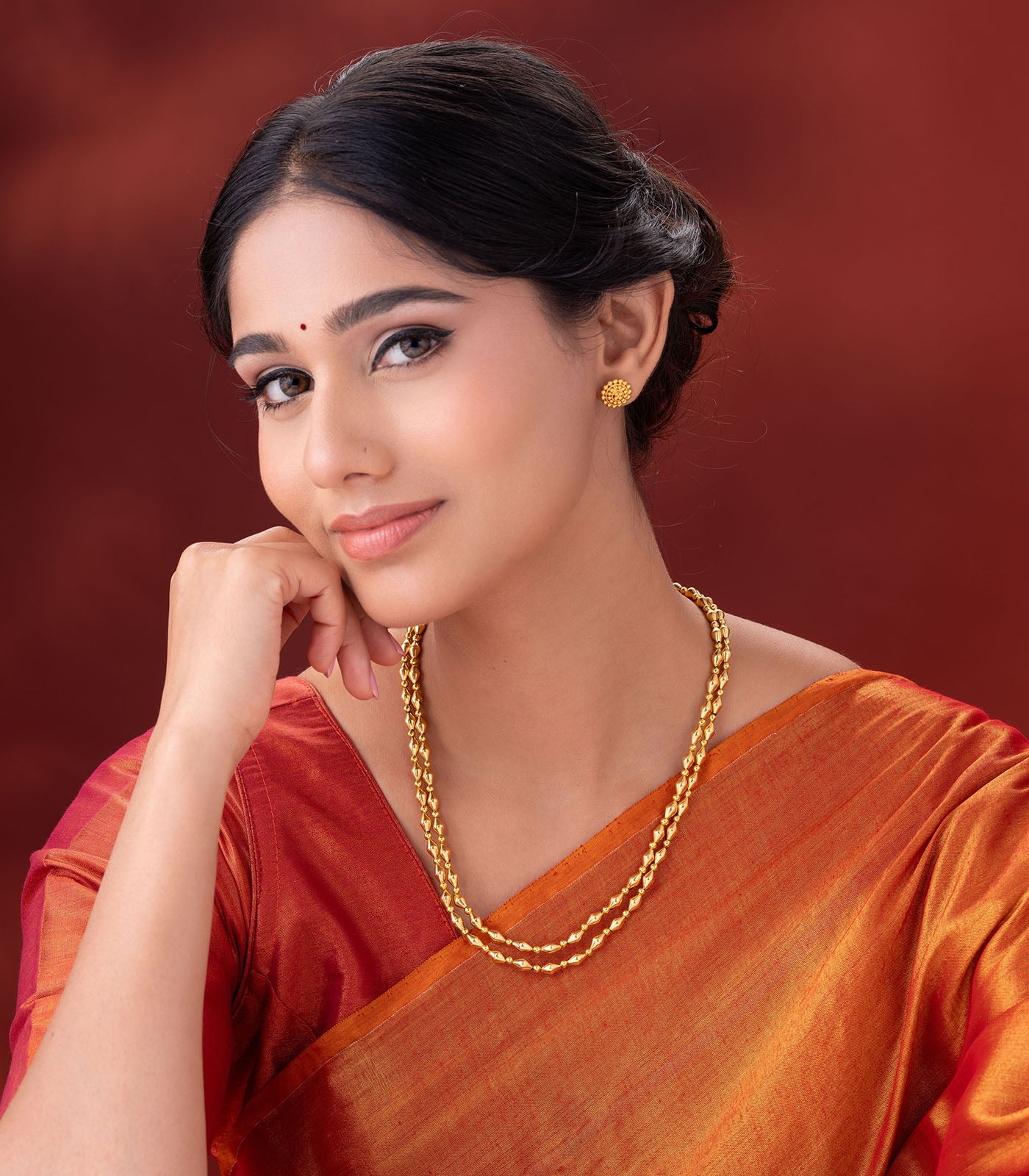 Design: A dual-layered necklace with minimal beaded detailing, offering a graceful balance of tradition and simplicity.