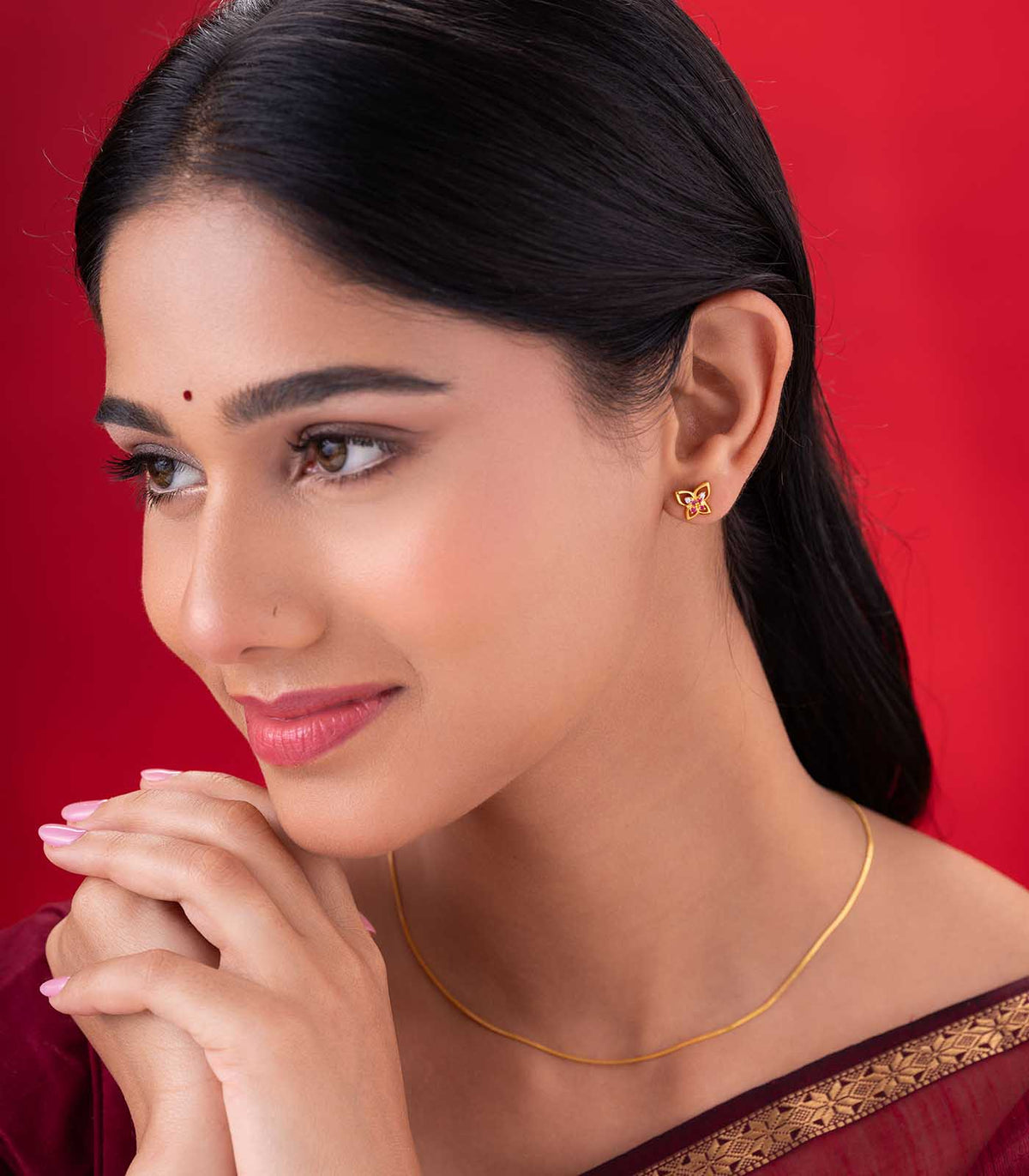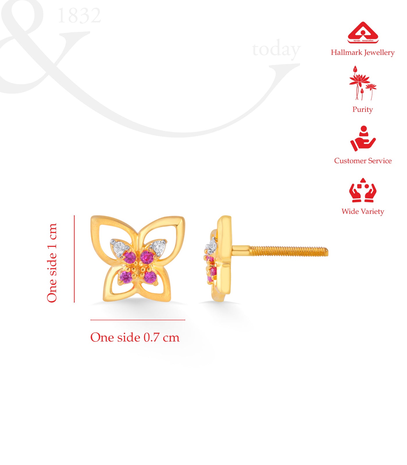 Material: Finely crafted in 22K gold, accented with shimmering white stones and vivid pink stones for a vibrant finish.